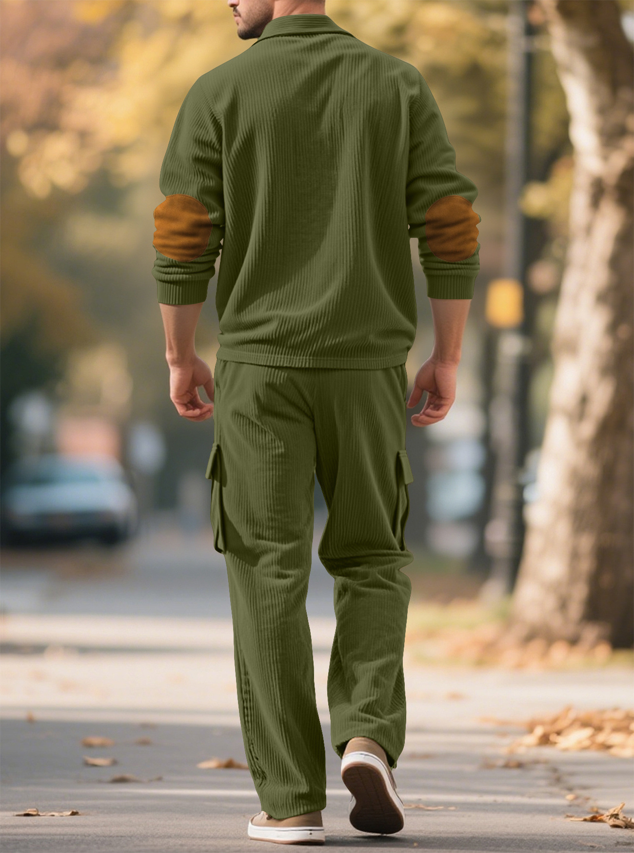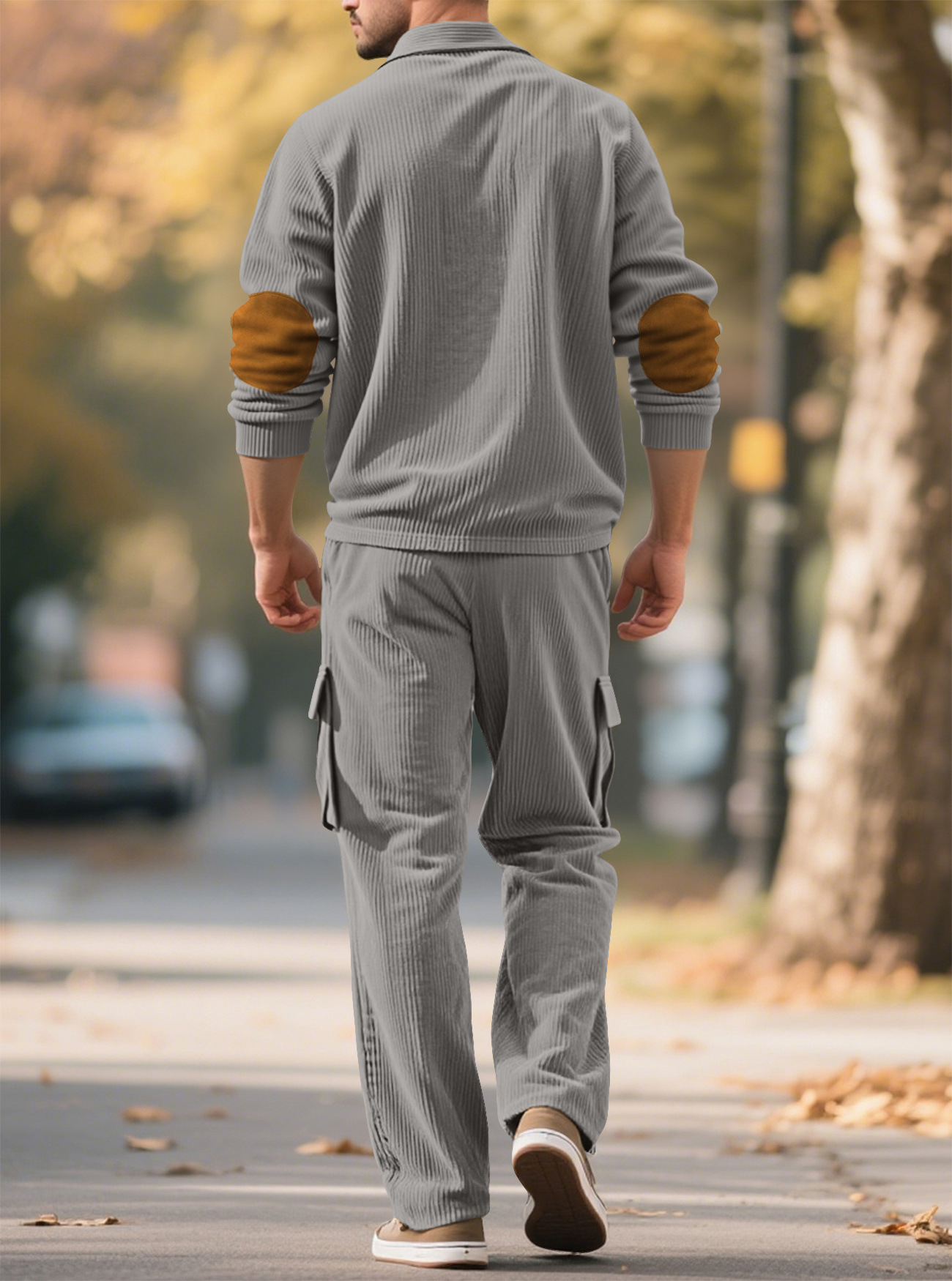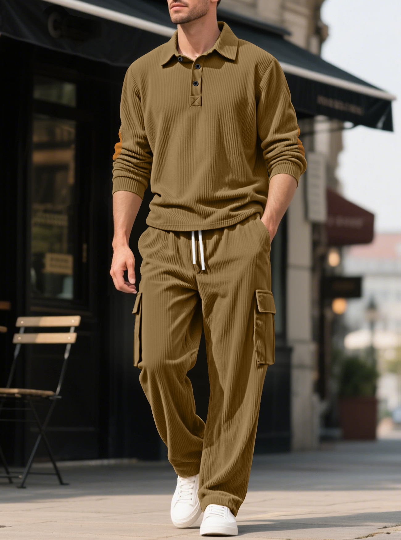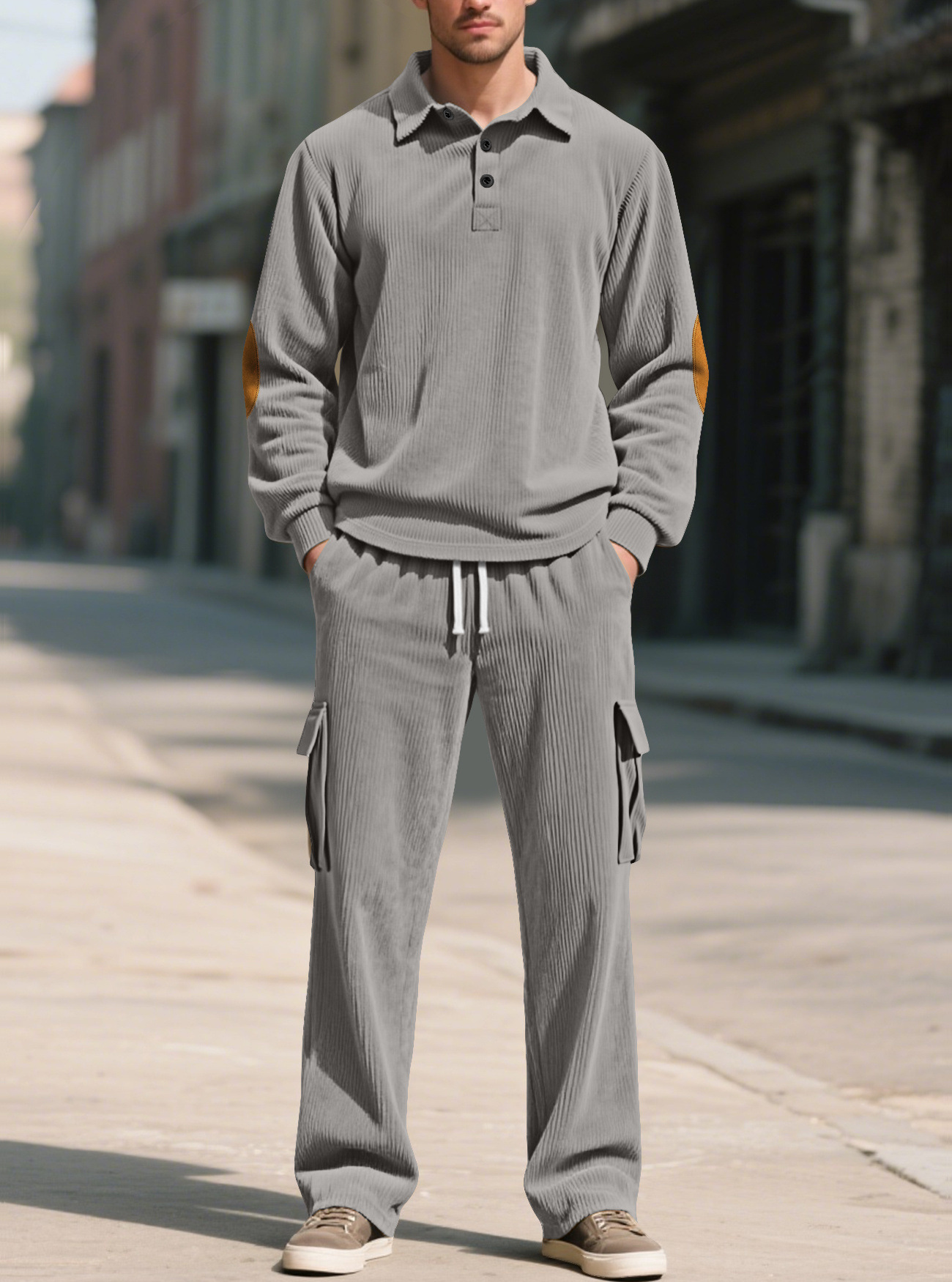 Comercio exterior Amazon transfronterizo Europa y Estados Unidos deportes casuales con solapa de manga larga dos piezas para hombres sueltos set de herramientas de color sólido