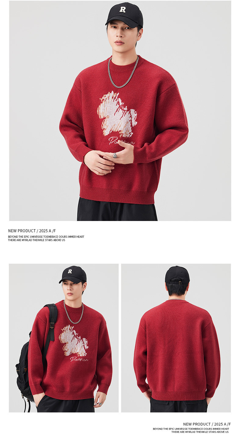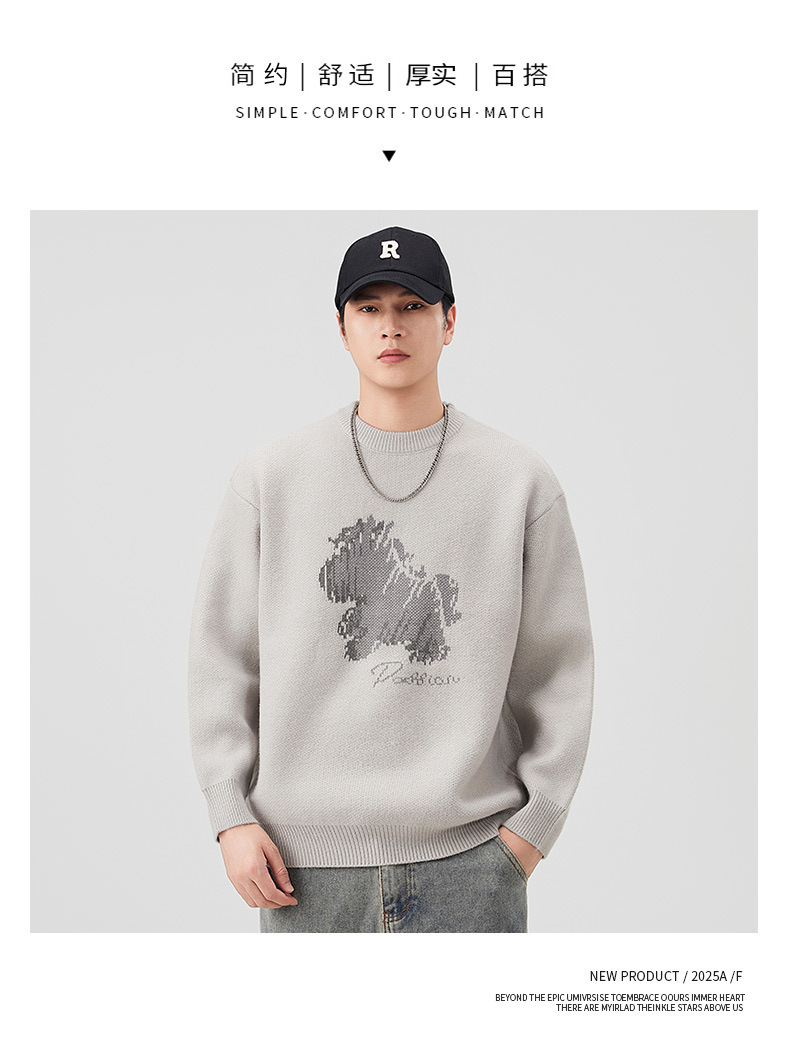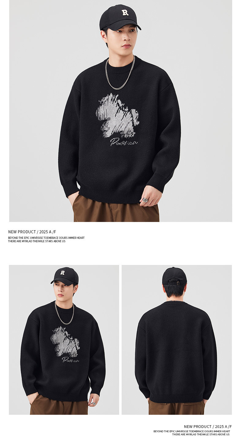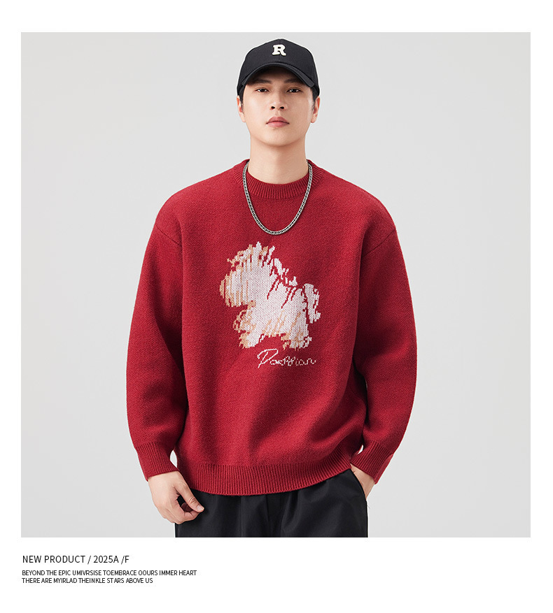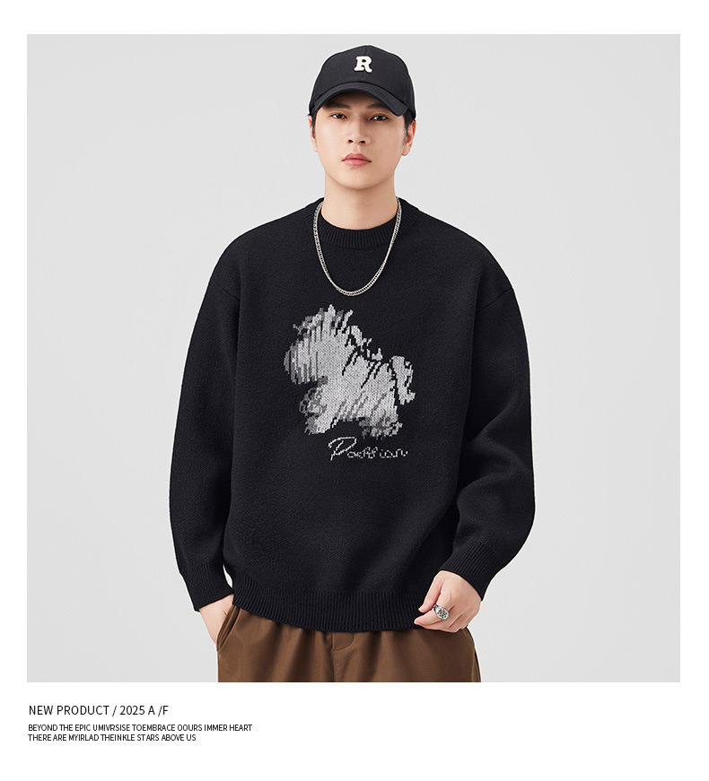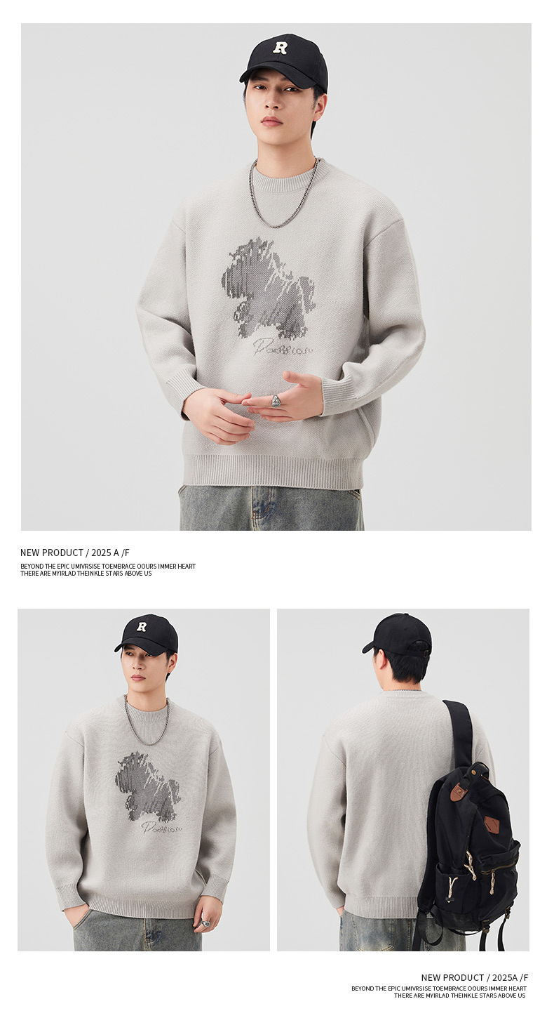 Explosiones transfronterizas de tamaño grande de dibujos animados pony jacquard jersey suéter hombre perecío otoño invierno fábrica al por mayor