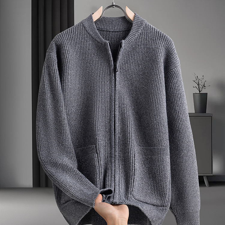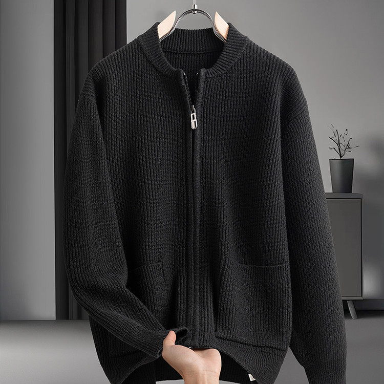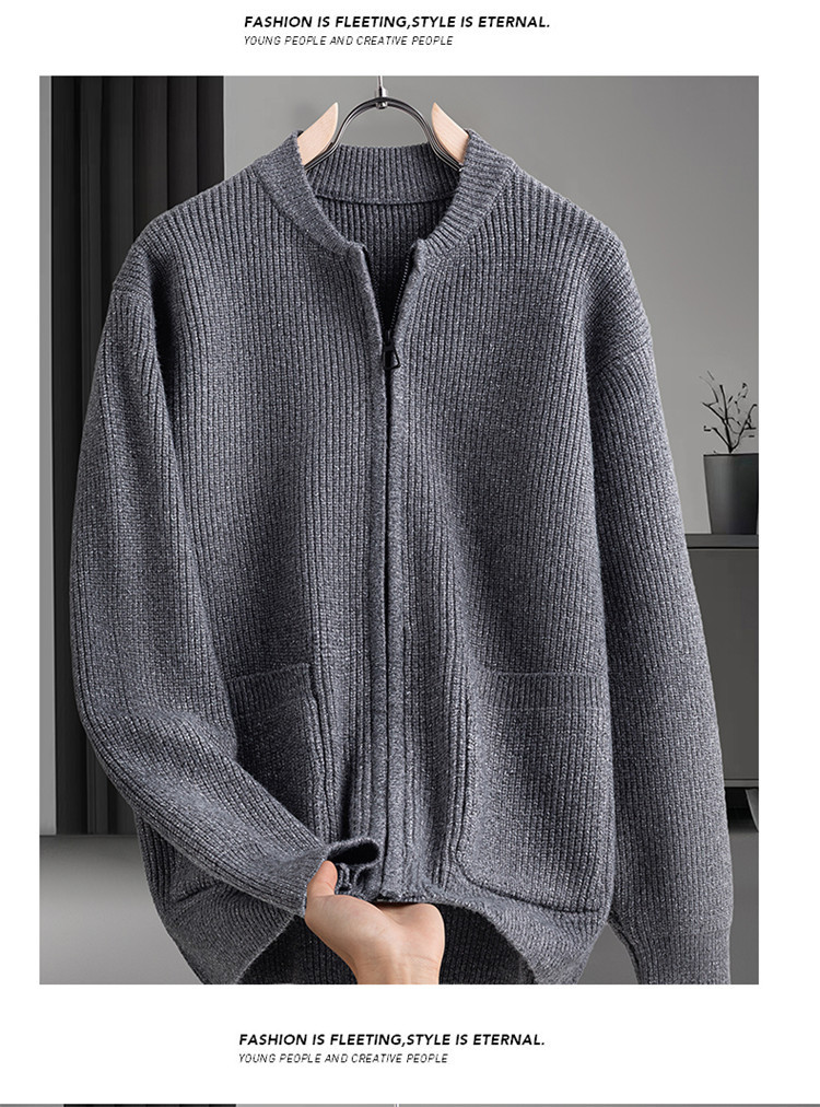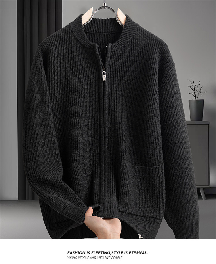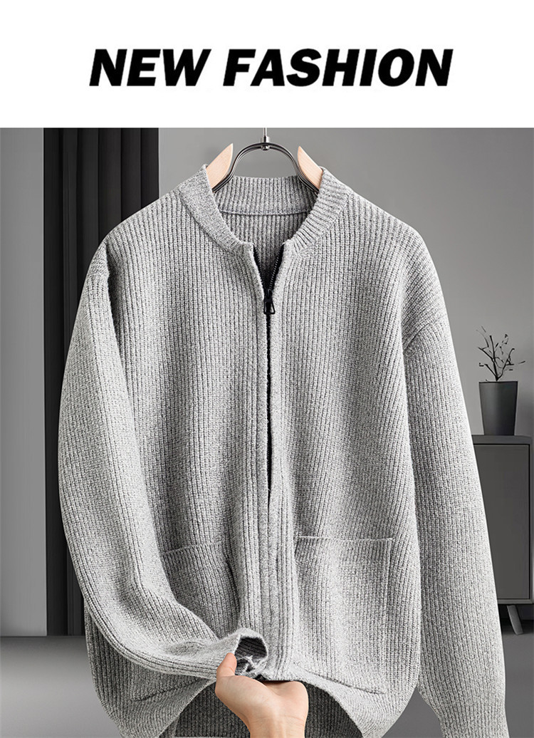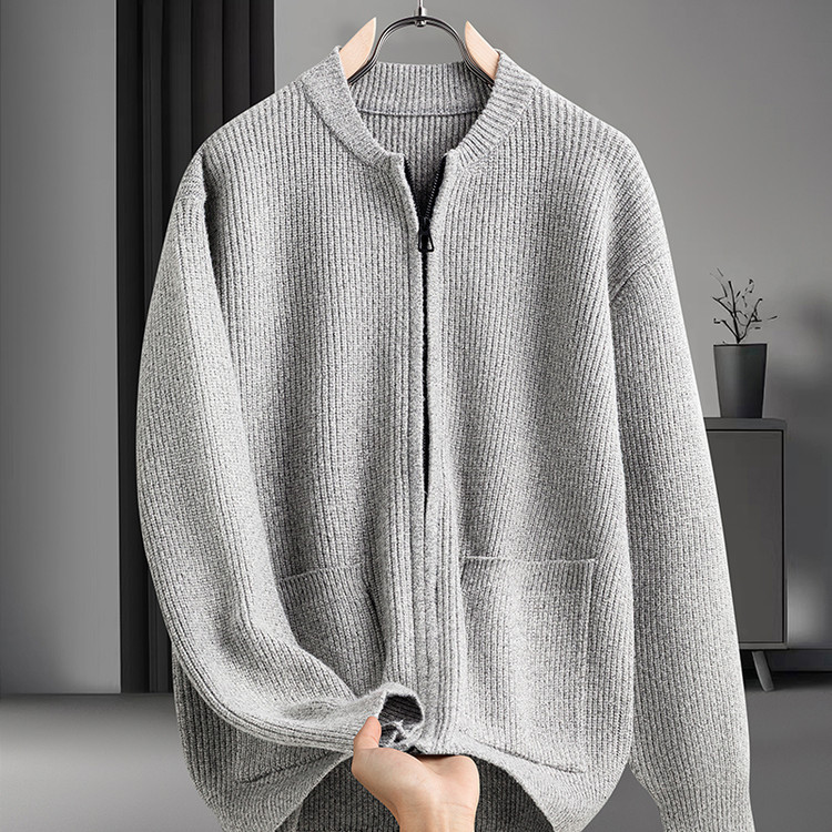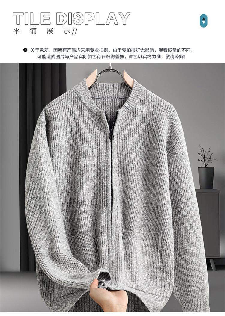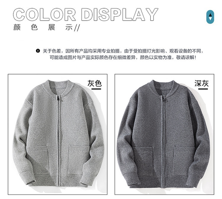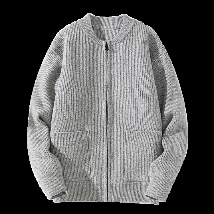 Cardigan de color sólido transfronterizo con cremallera, chaqueta de punto, moda japonesa, suéter casual de color sólido suelto