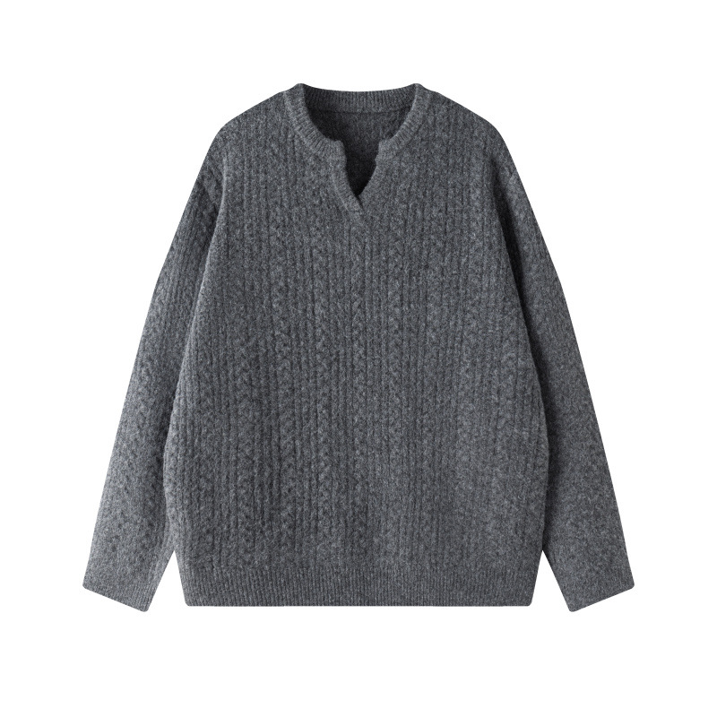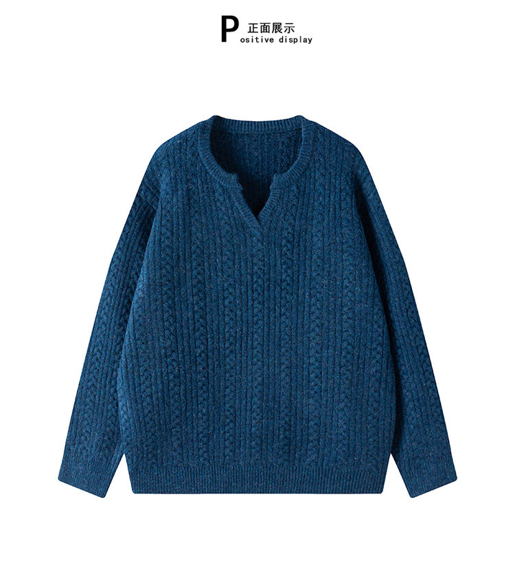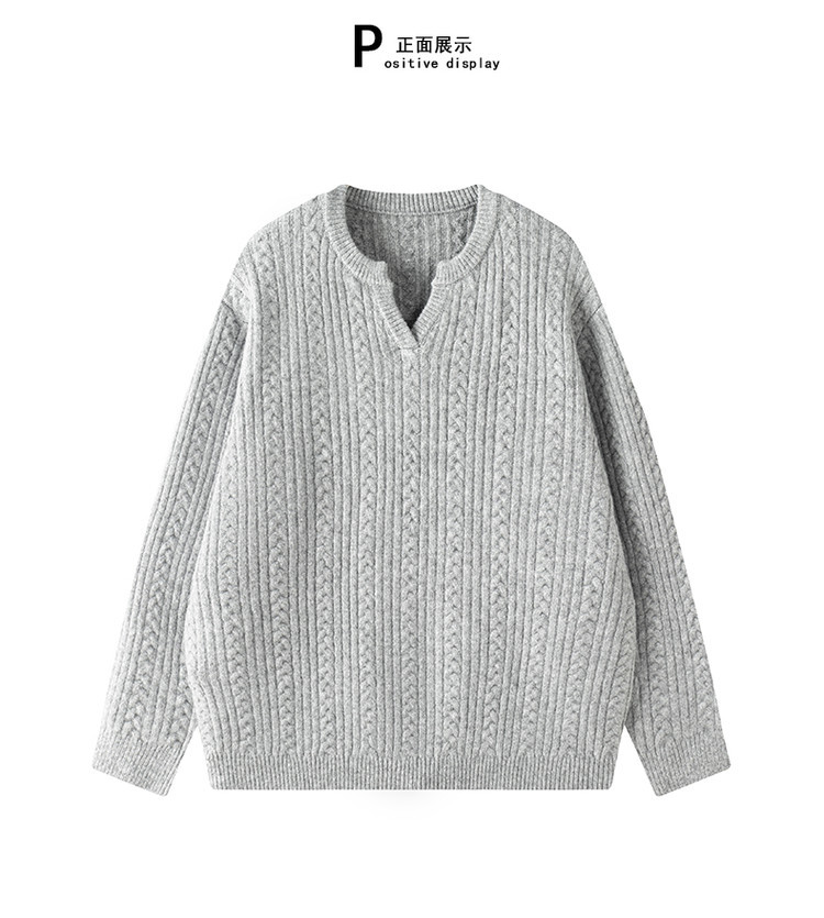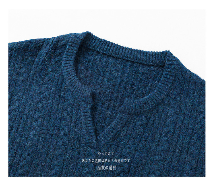 Flor torcida para hombres otoño e invierno pequeño suéter de cuello en V para hombres japoneses color sólido simple suéter de punto casual suelto