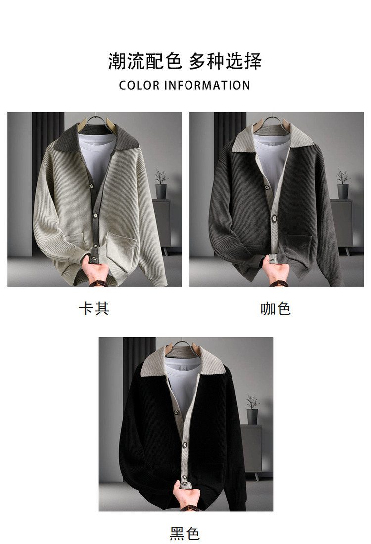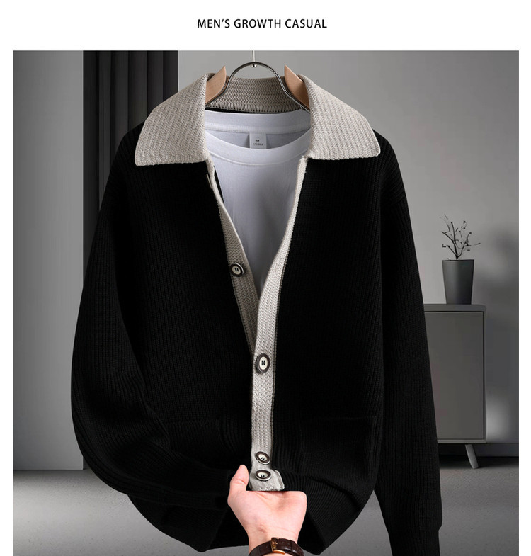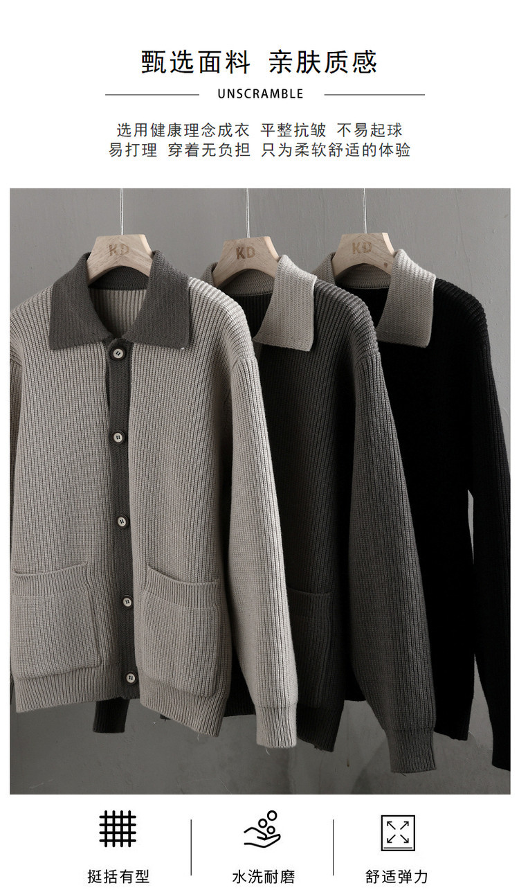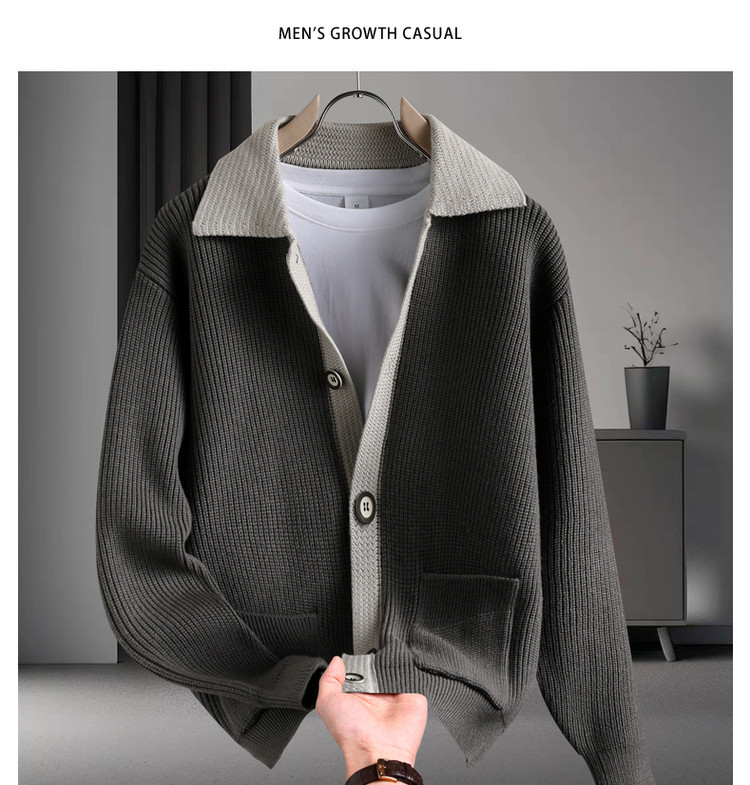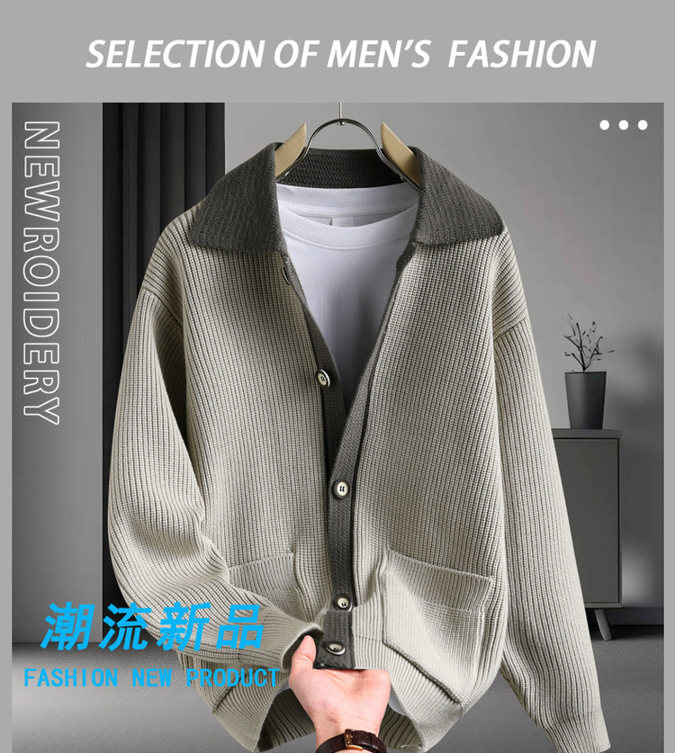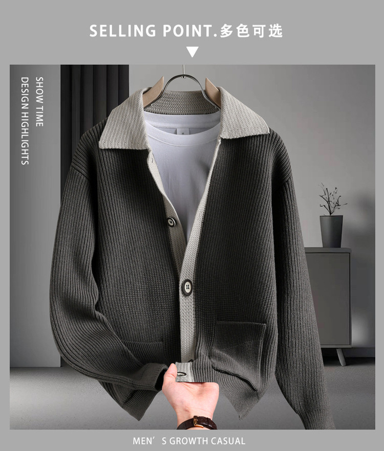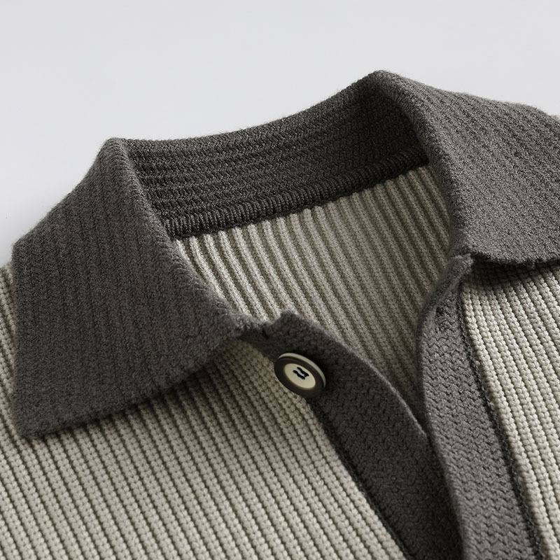 Color contrastante camiseta de punto hombre otoño invierno cardigan suelto marca de moda de hombre alta sensación casual abrigo con solapa suéter