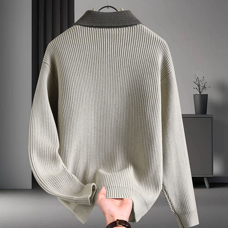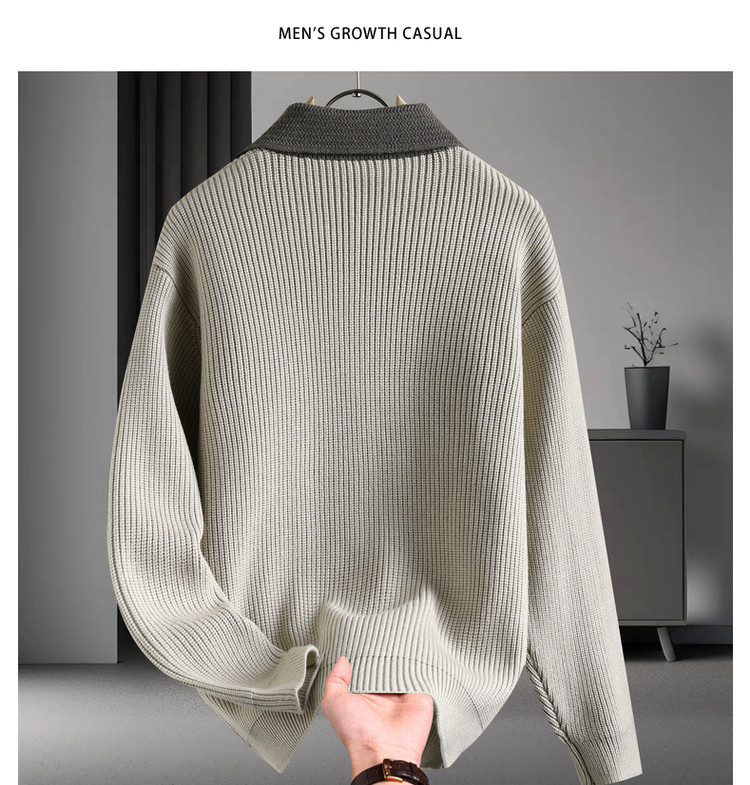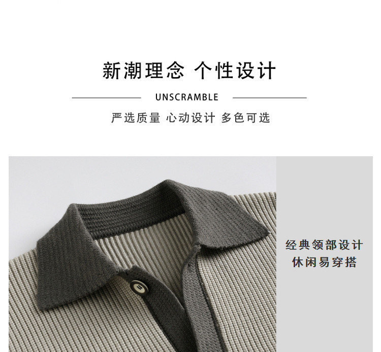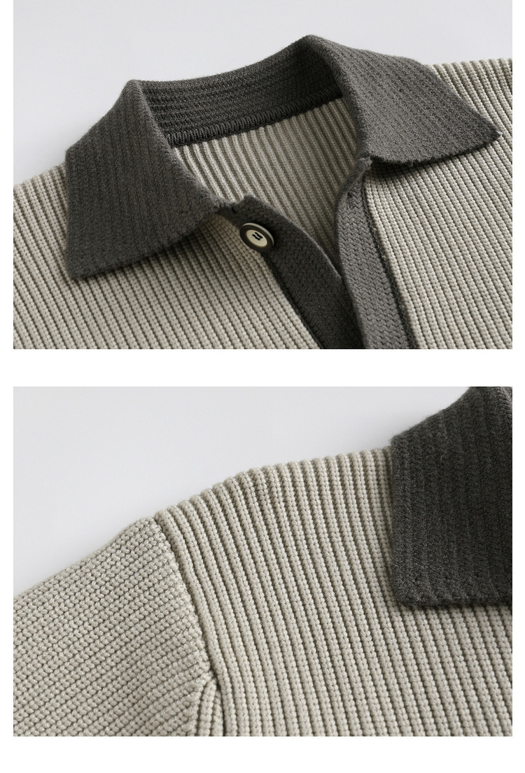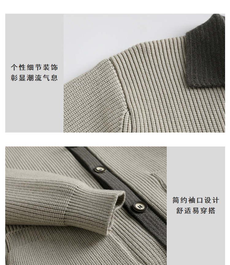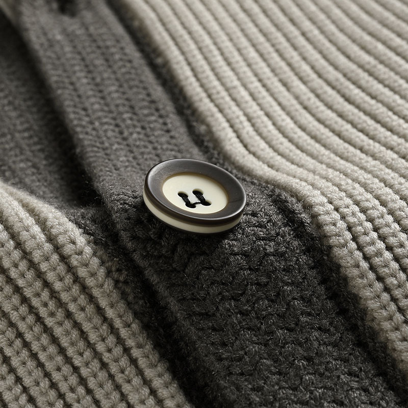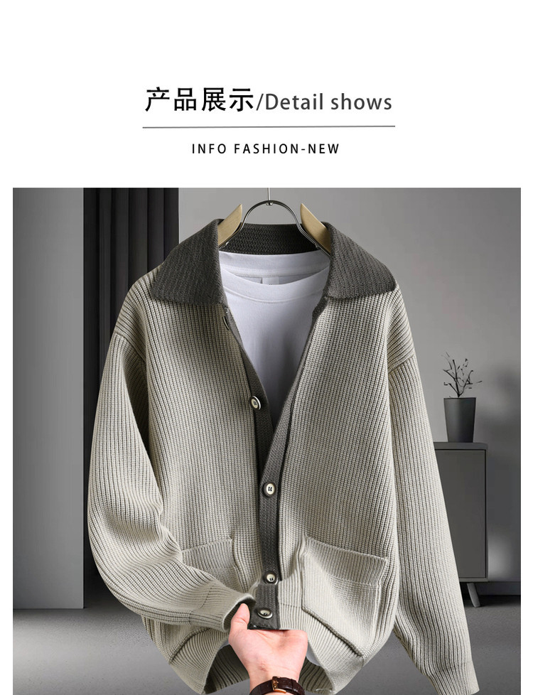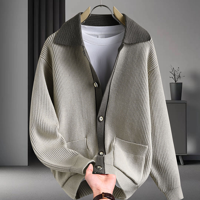 Color contrastante camiseta de punto hombre otoño invierno cardigan suelto marca de moda de hombre alta sensación casual abrigo con solapa suéter