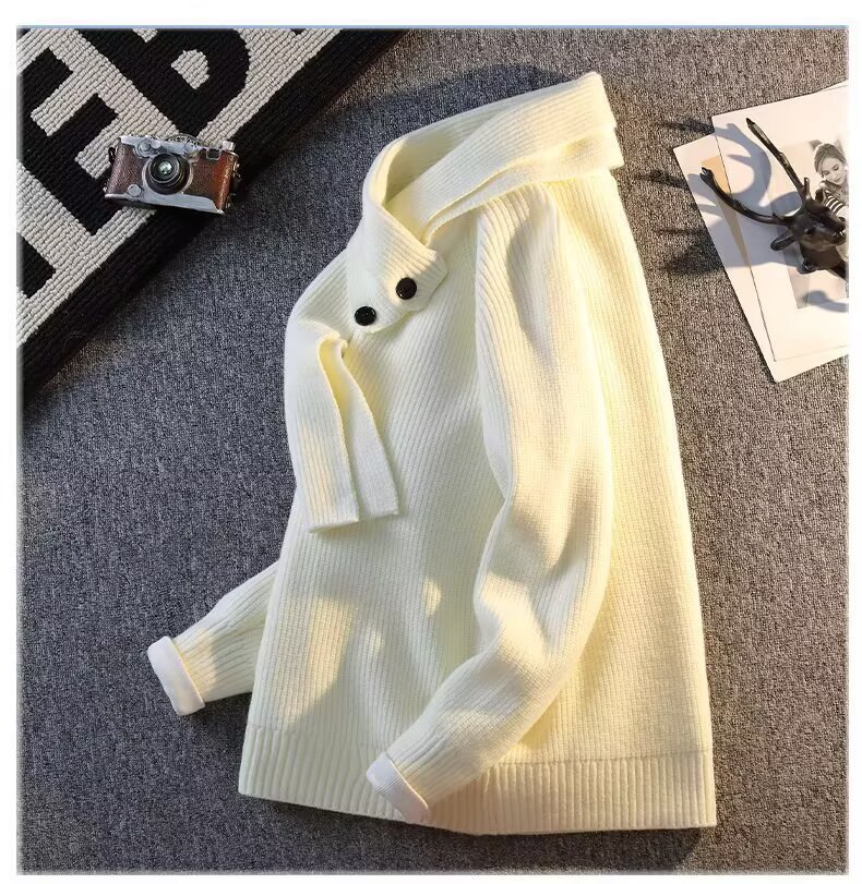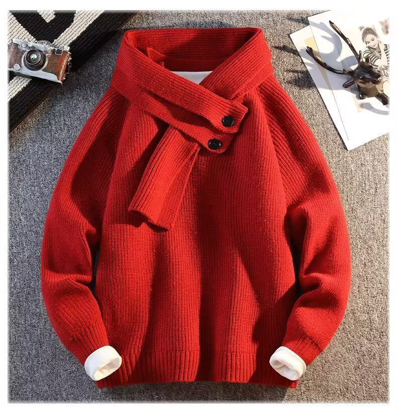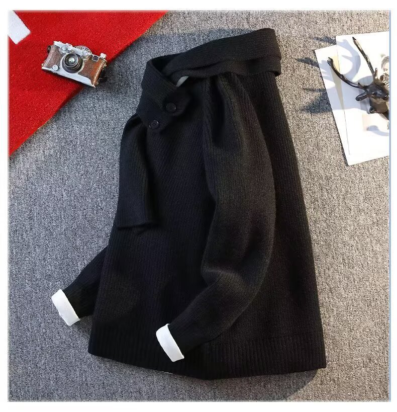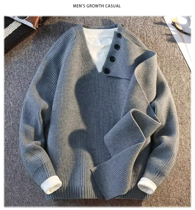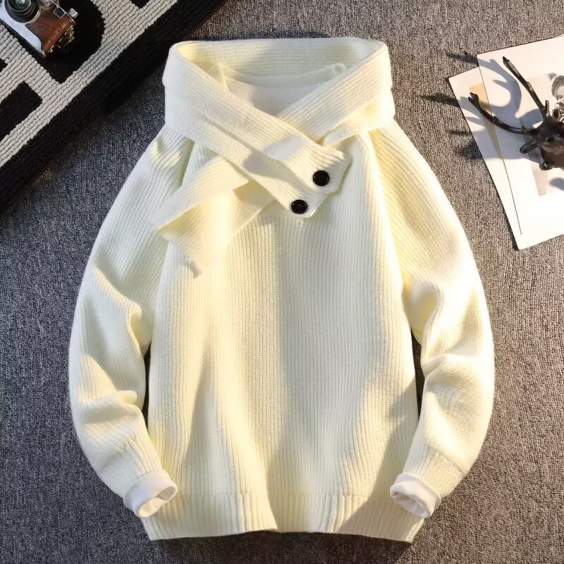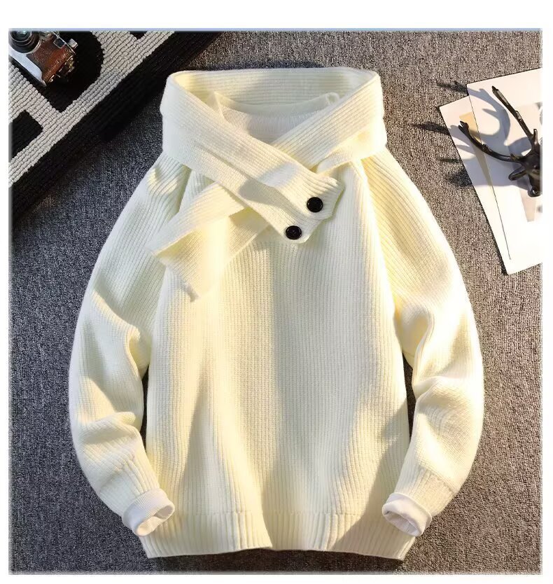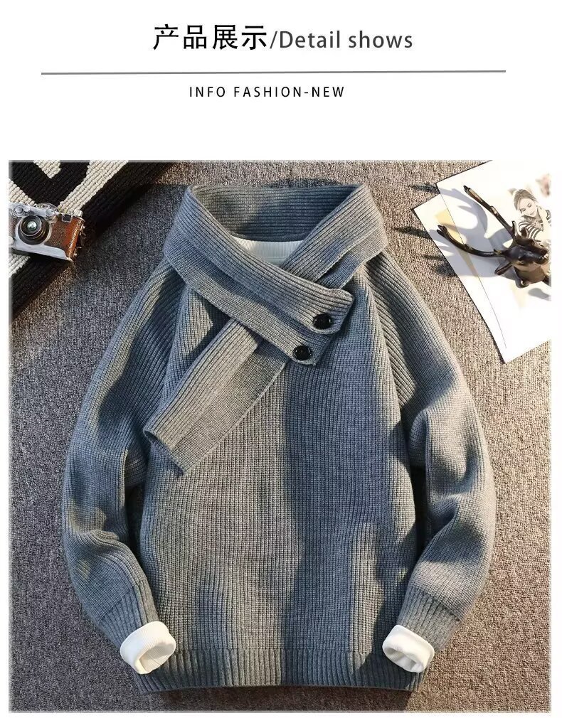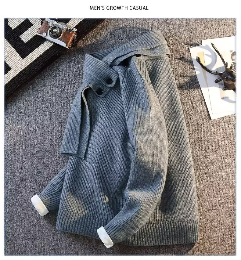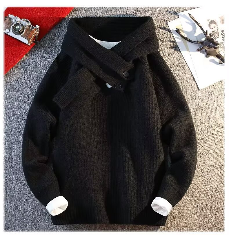 Explosiones transfronterizas de tamaño grande turban desmontable camisa de punto suéter masculino botón de sentido superior otoño invierno fábrica al por mayor