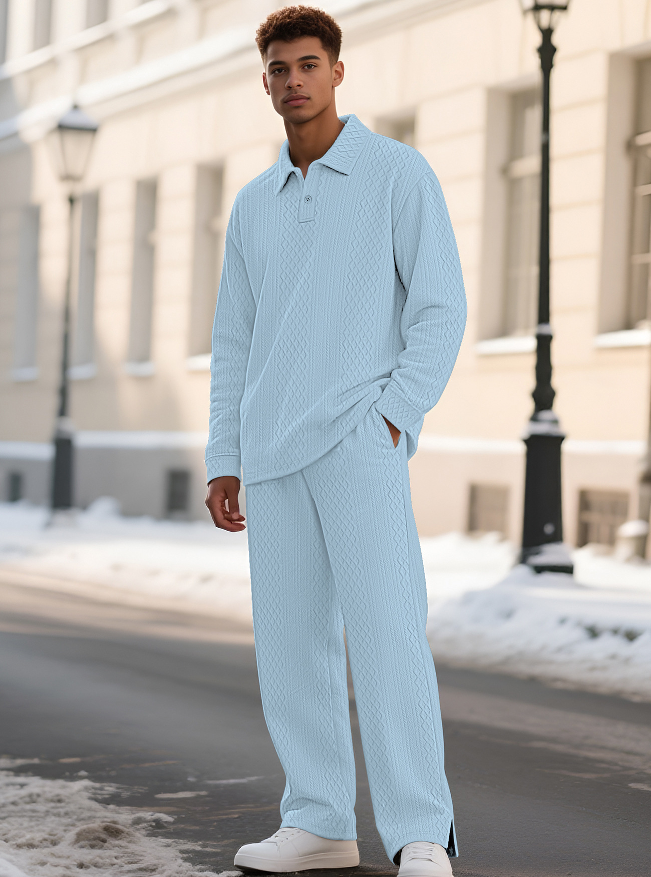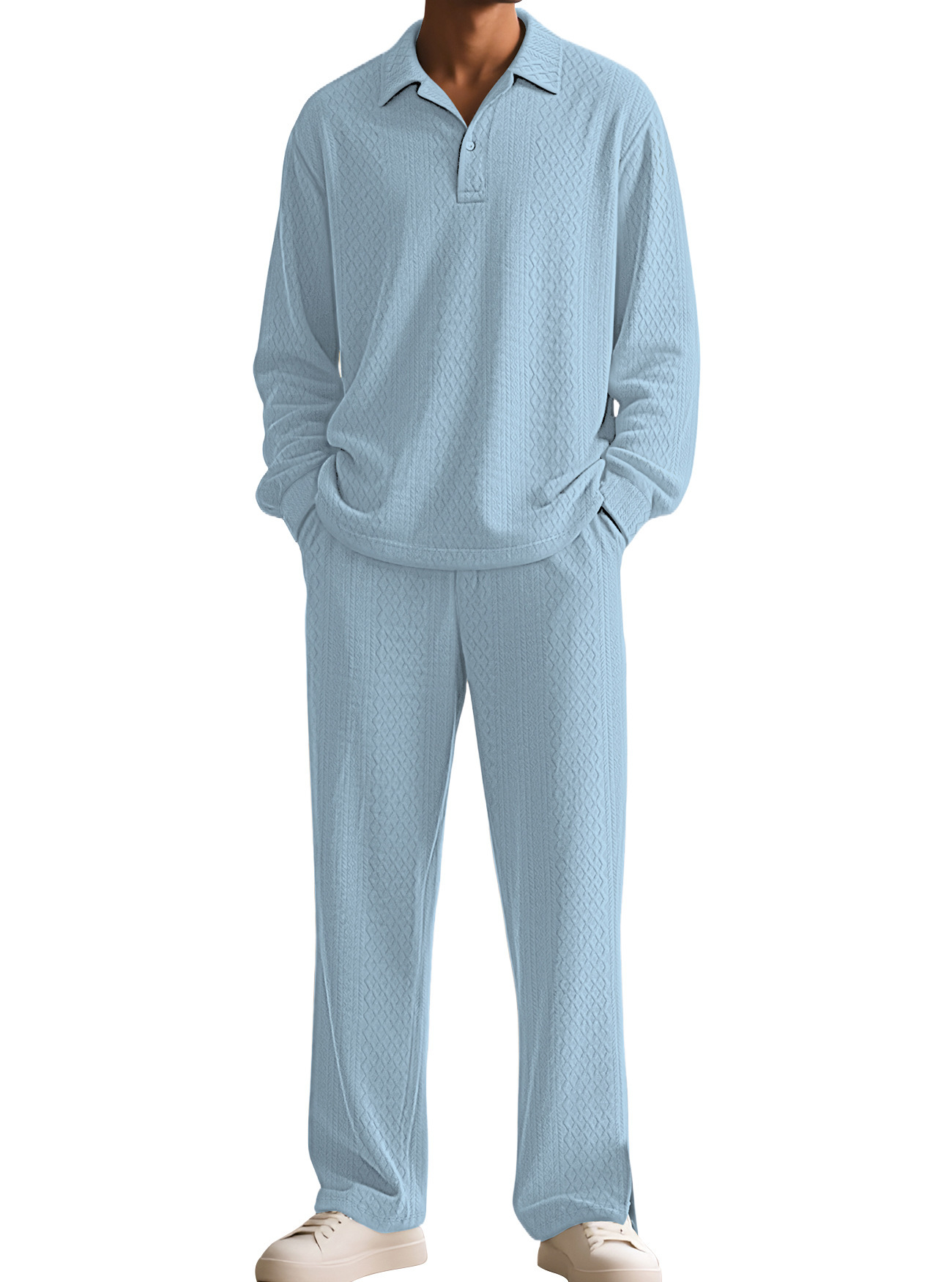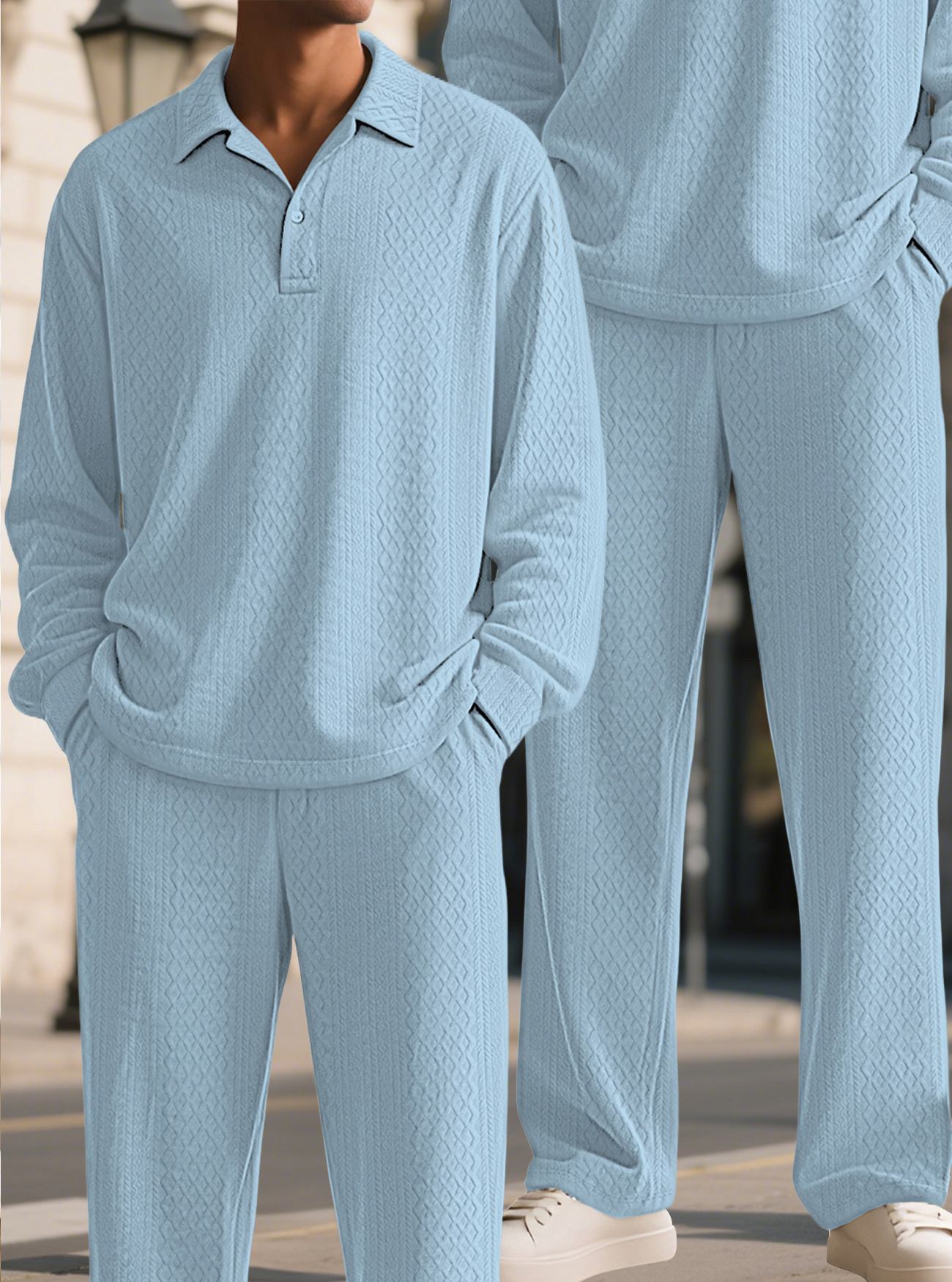 Europa y América Amazon transfronterizos Jacquard textura casual collar chaqueta pantalones deportivos de manga larga hombre polo set