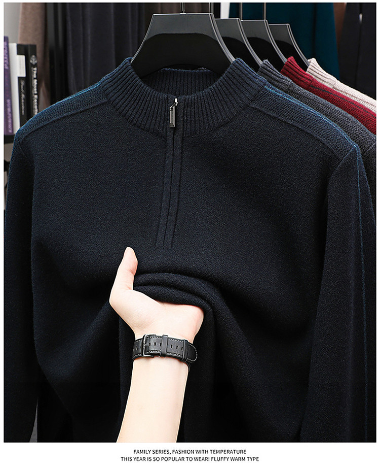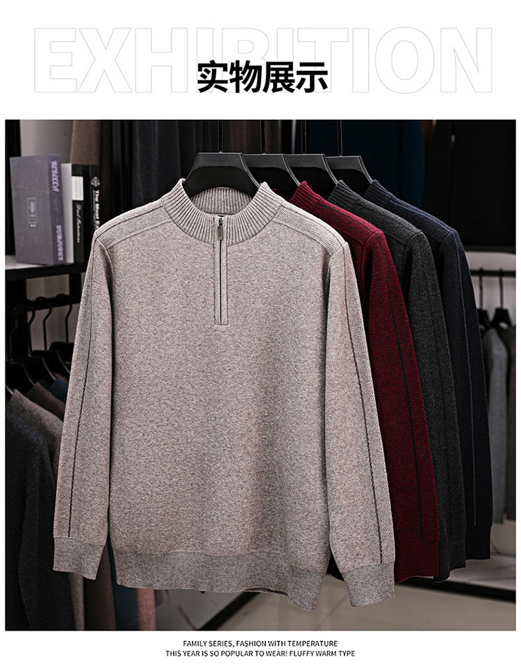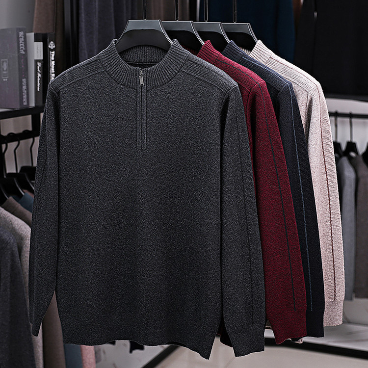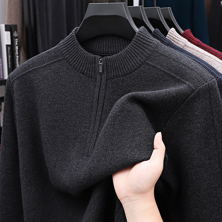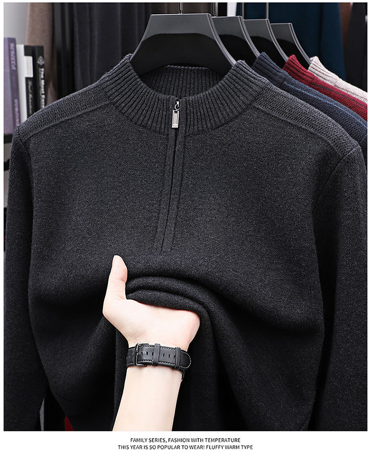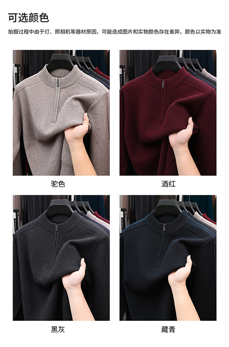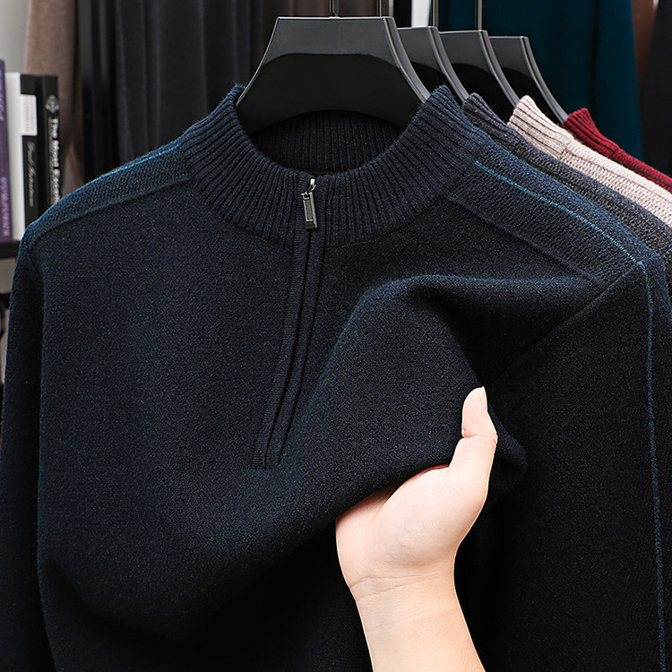Hombres nuevos cuello vertical manga larga semiacremallera suéter delgado casual punto base transfronterizo suéter simple para hombres