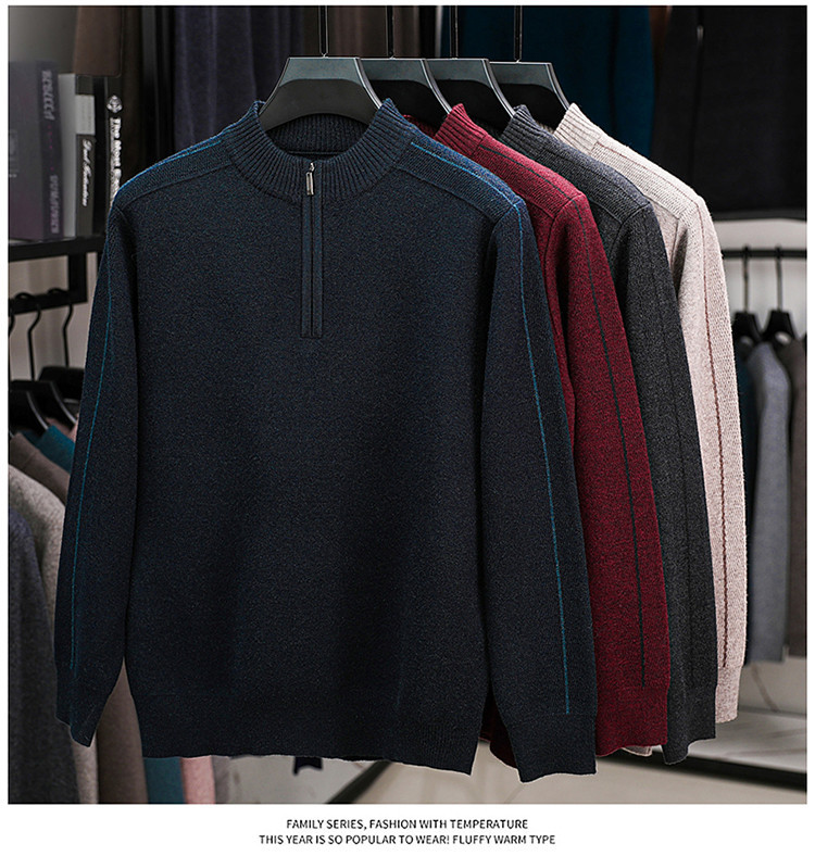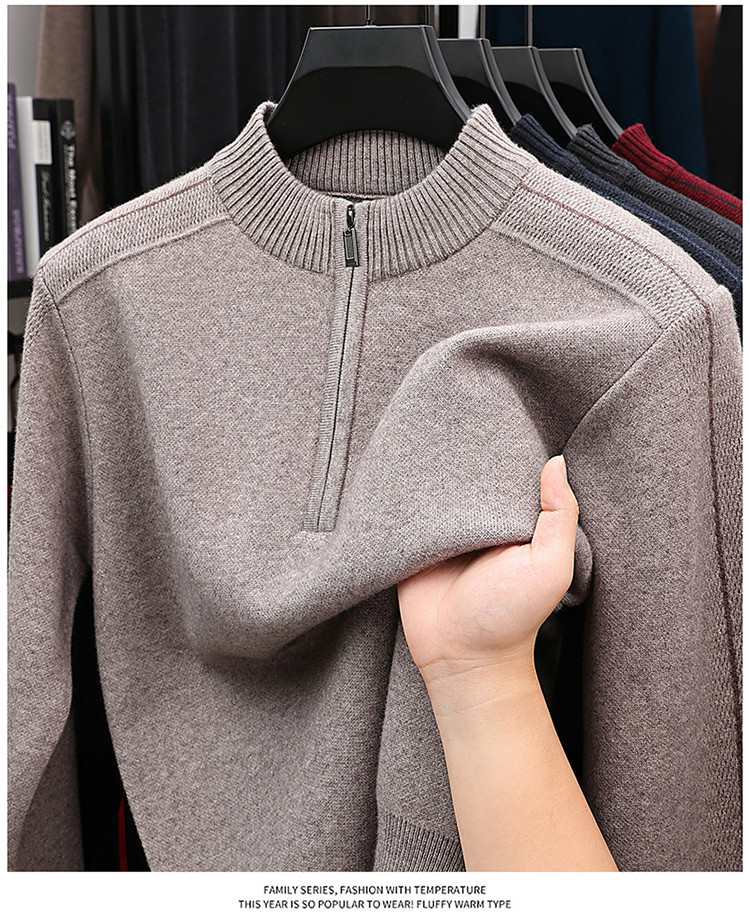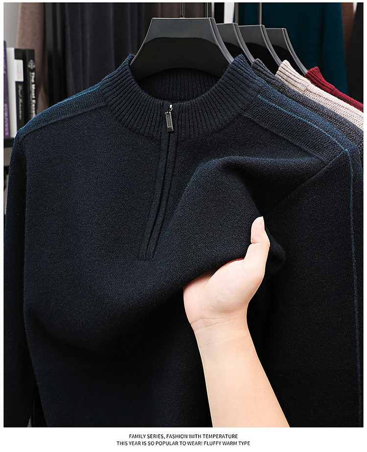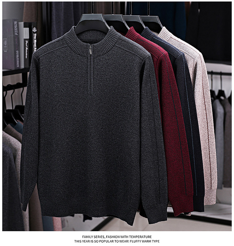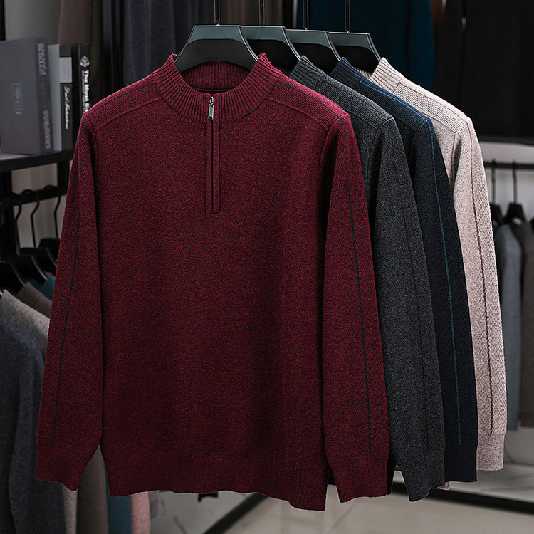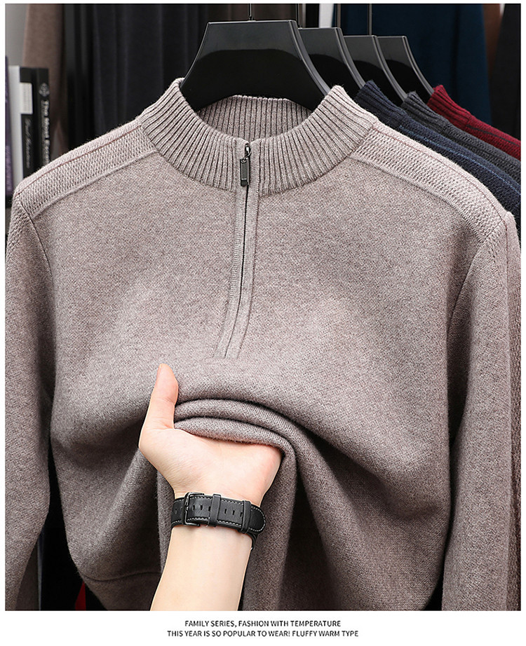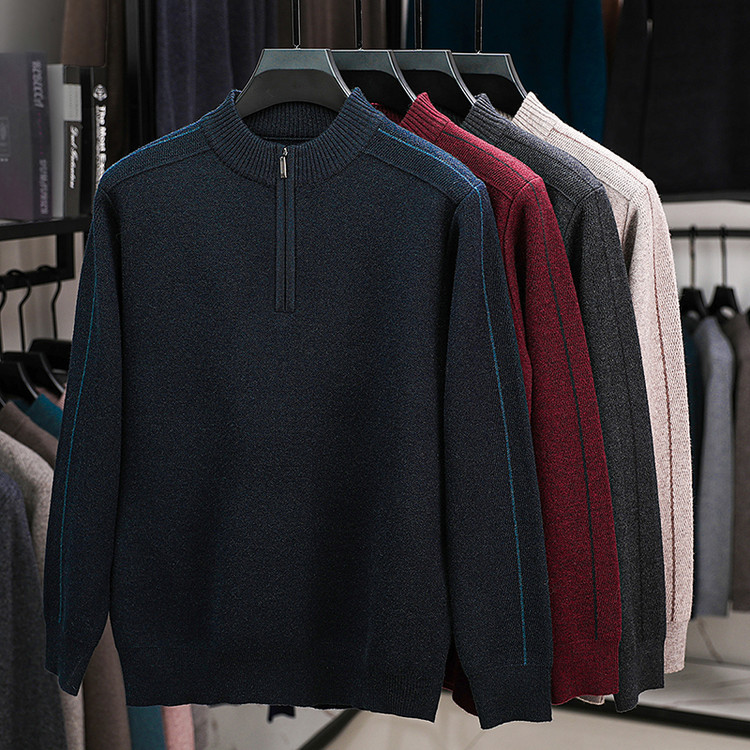 Hombres nuevos cuello vertical manga larga semiacremallera suéter delgado casual punto base transfronterizo suéter simple para hombres
