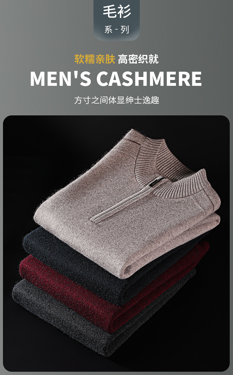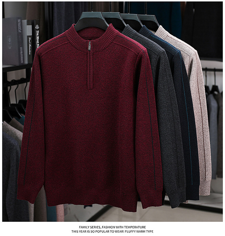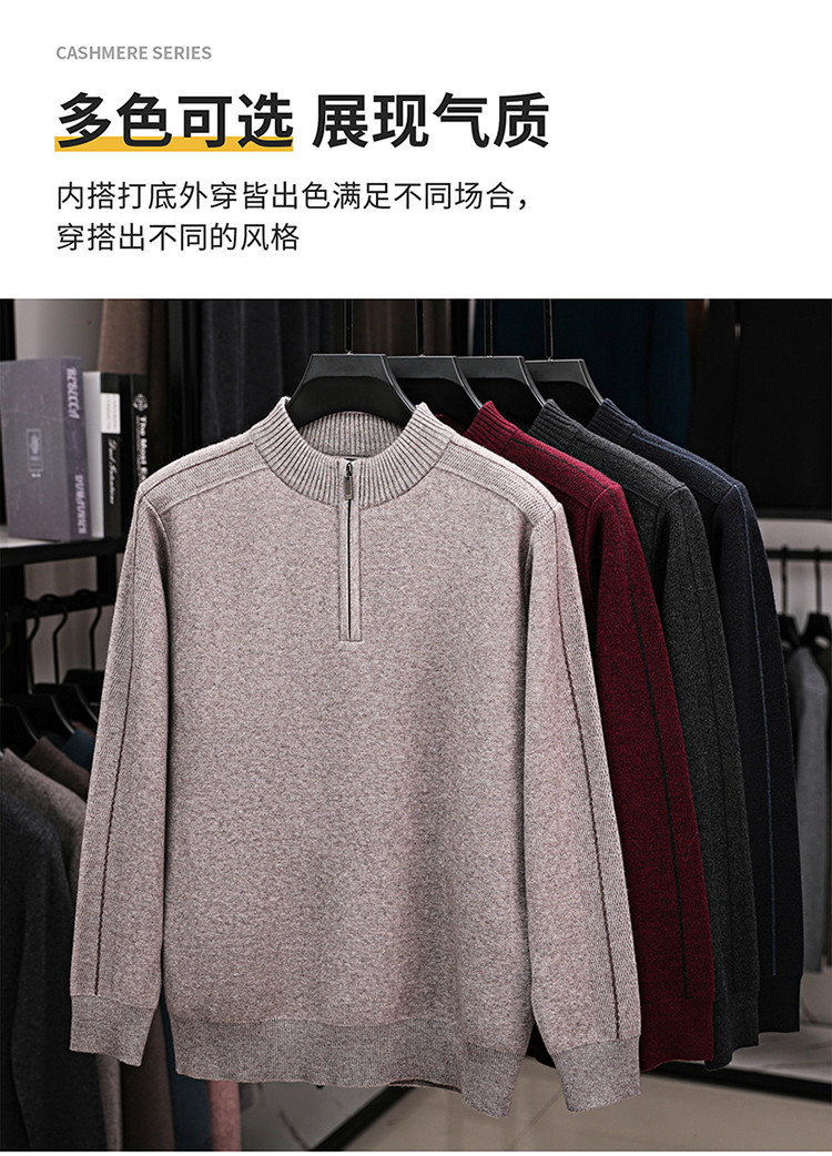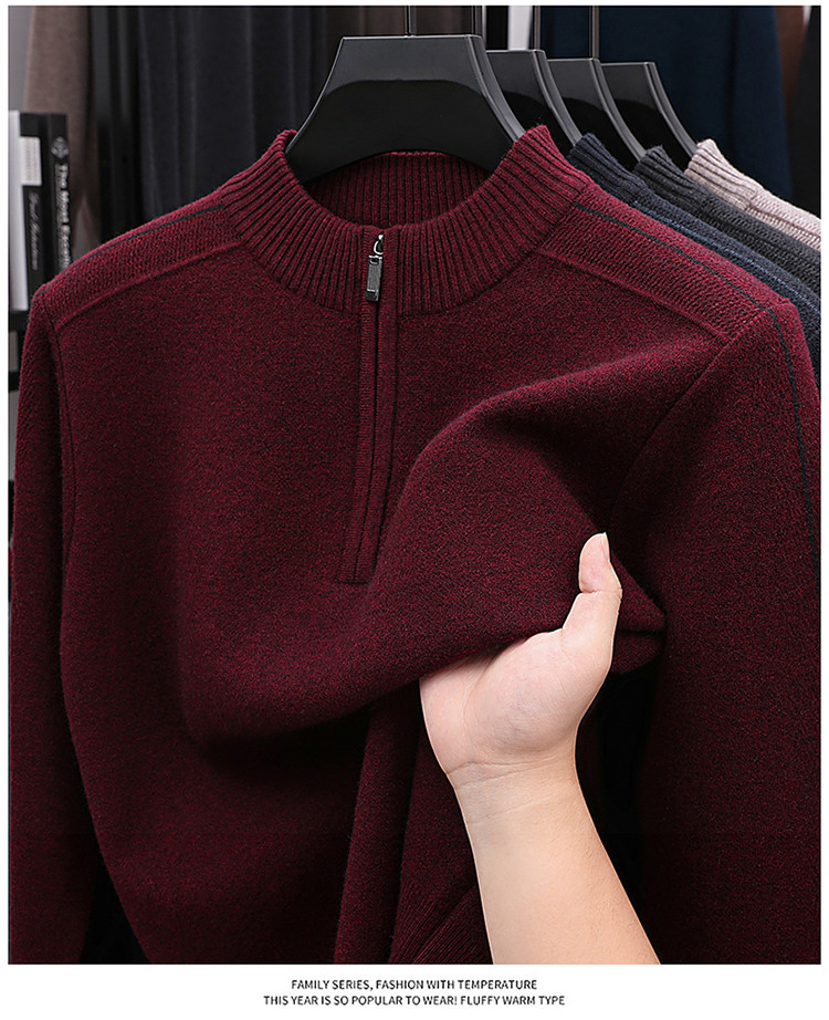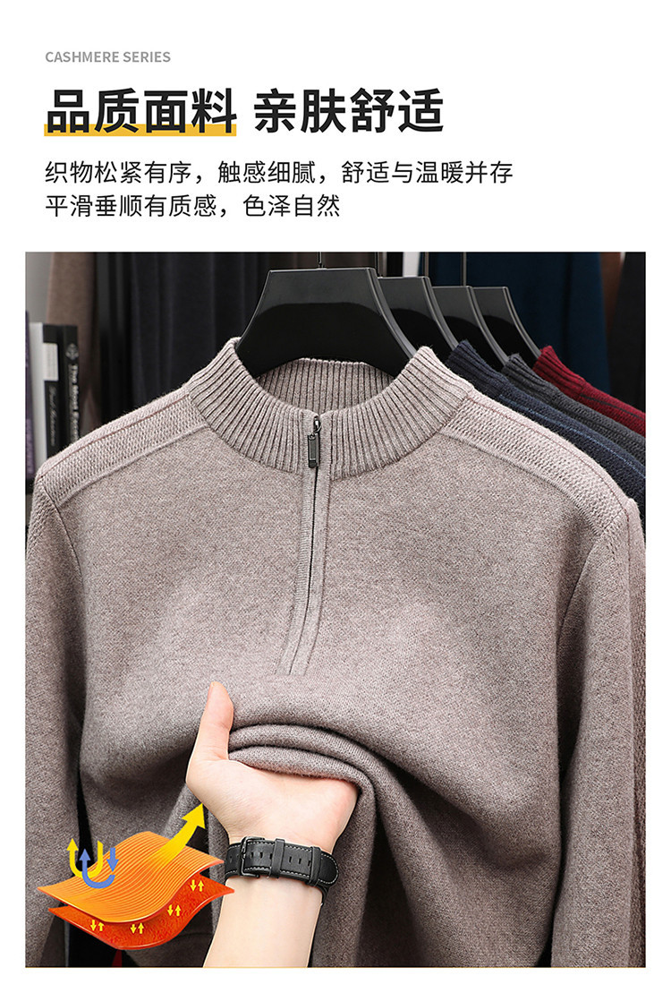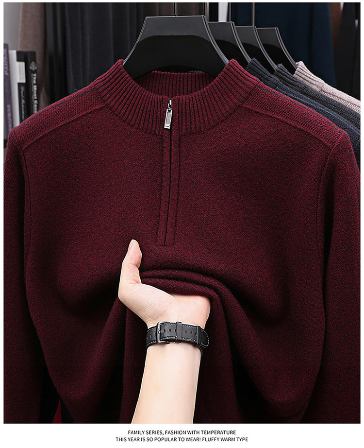 Hombres nuevos cuello vertical manga larga semiacremallera suéter delgado casual punto base transfronterizo suéter simple para hombres