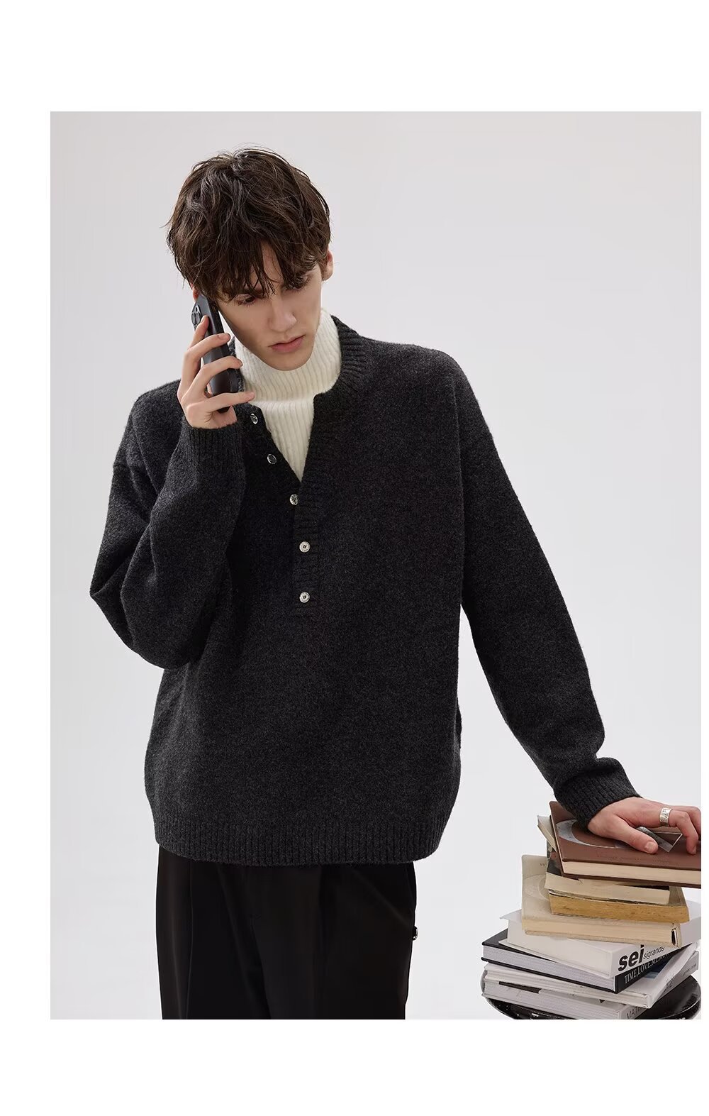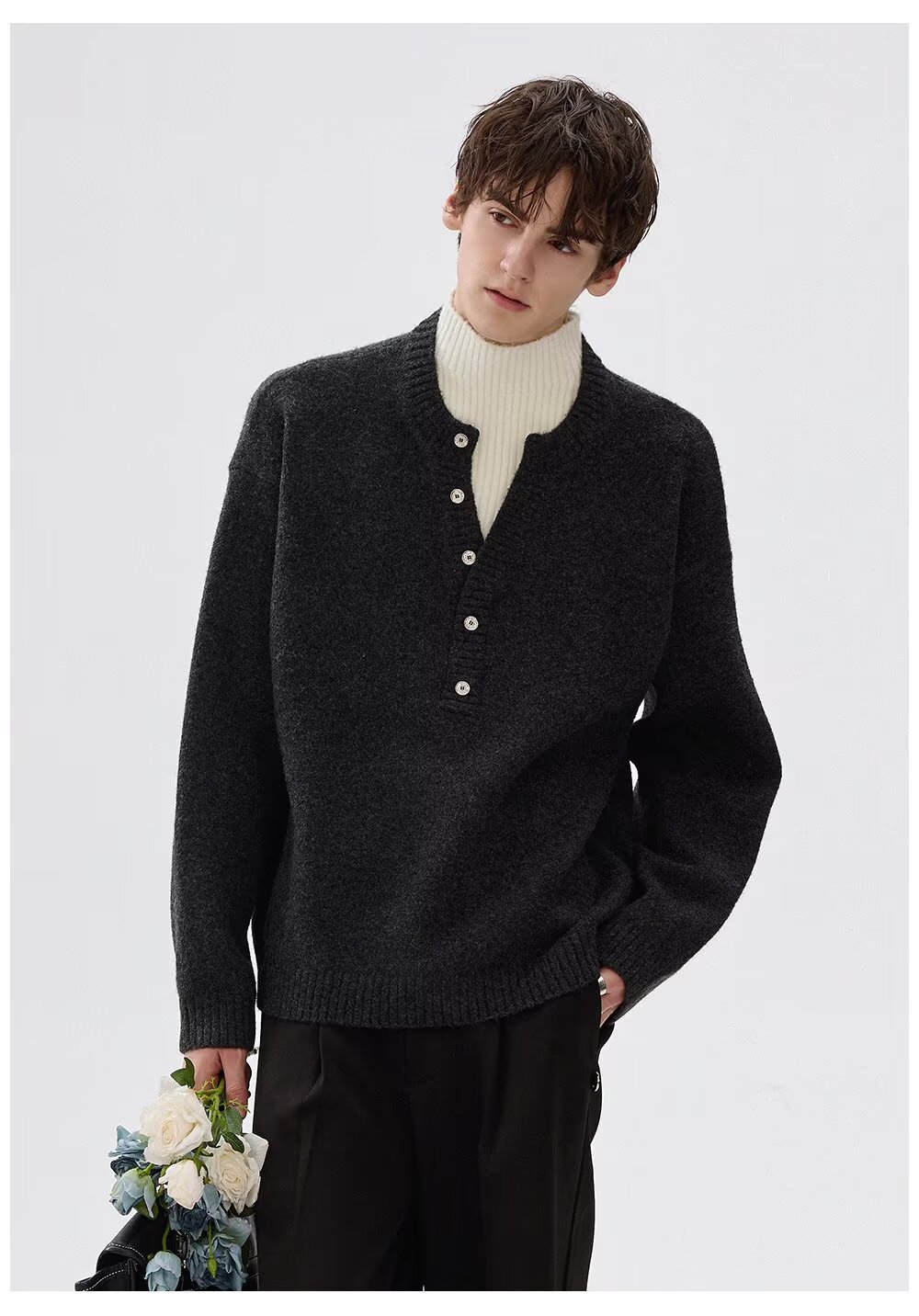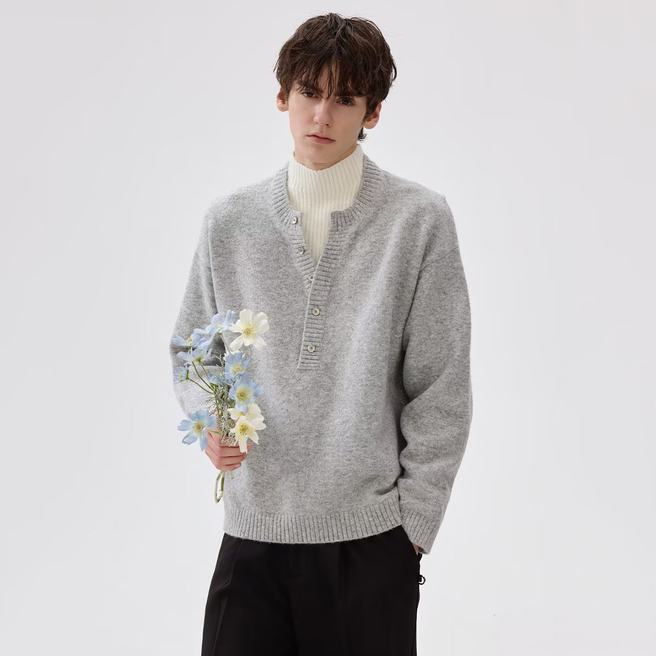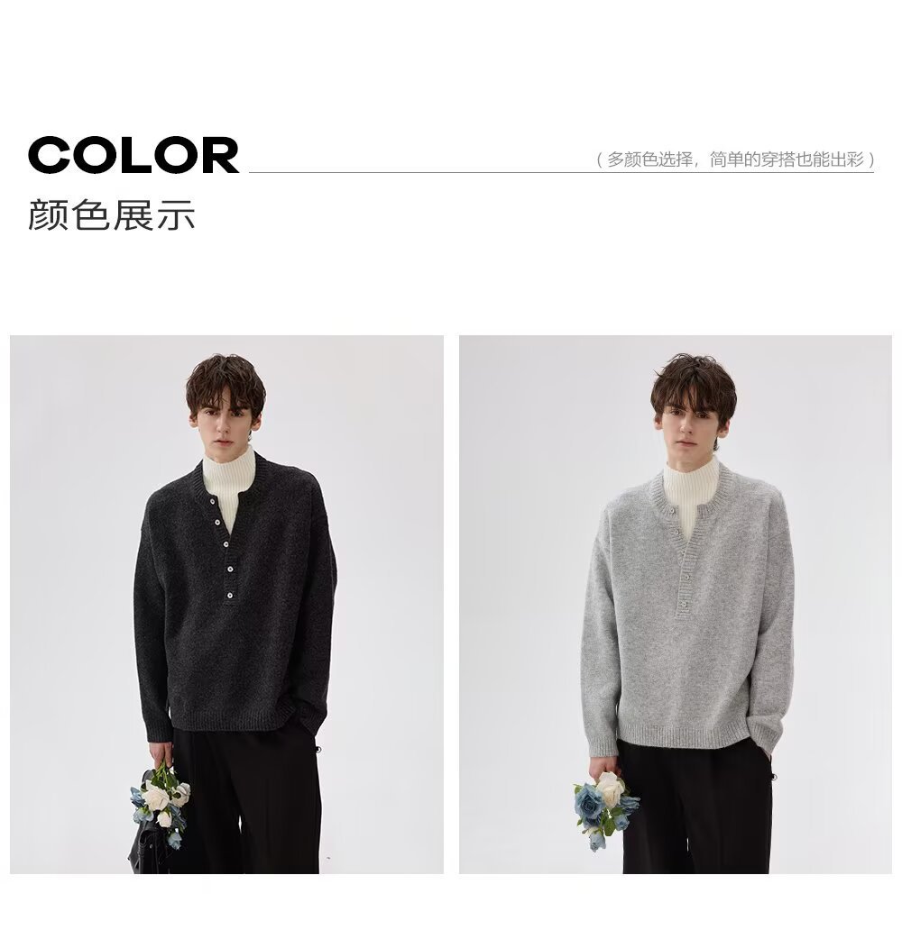 Explosiones transfronterizas de tamaño grande falso de tamaño europeo dos piezas de camisetas de punto de cuello medio alto suéter hombre viejo dinero de la fábrica de botón de moda al por mayor