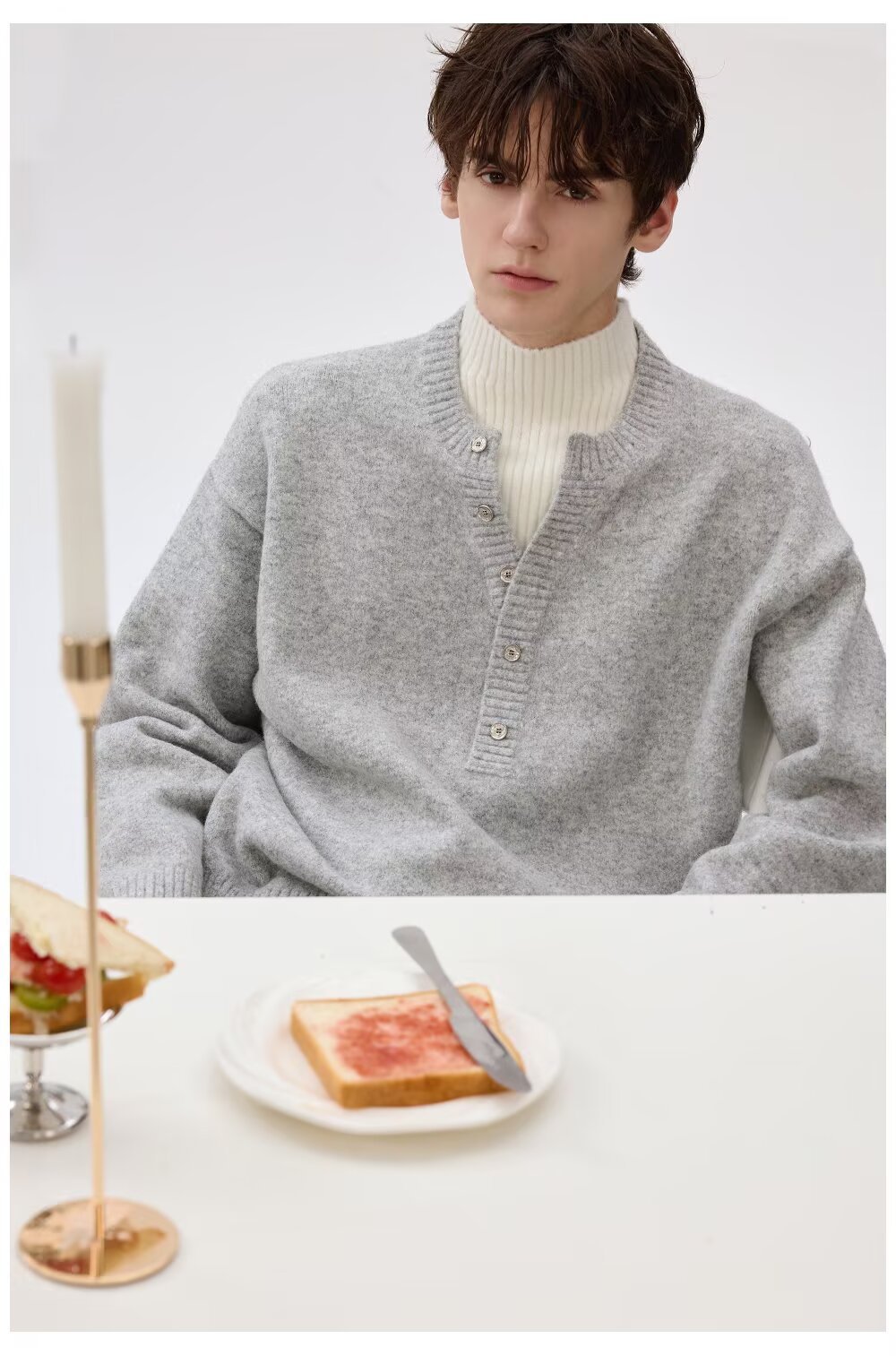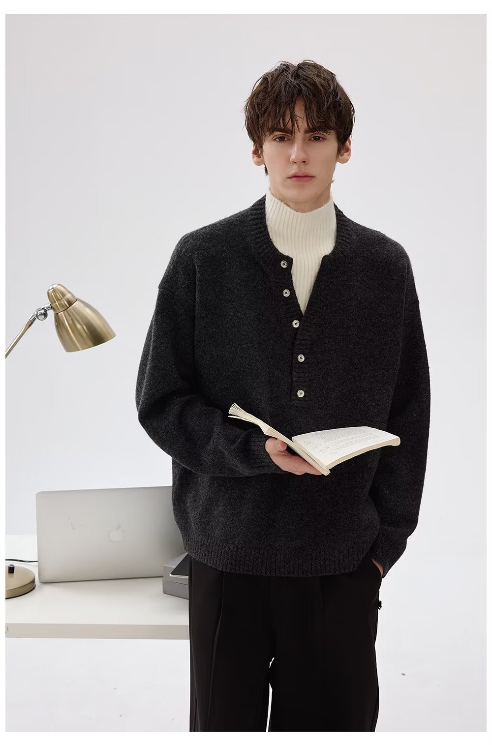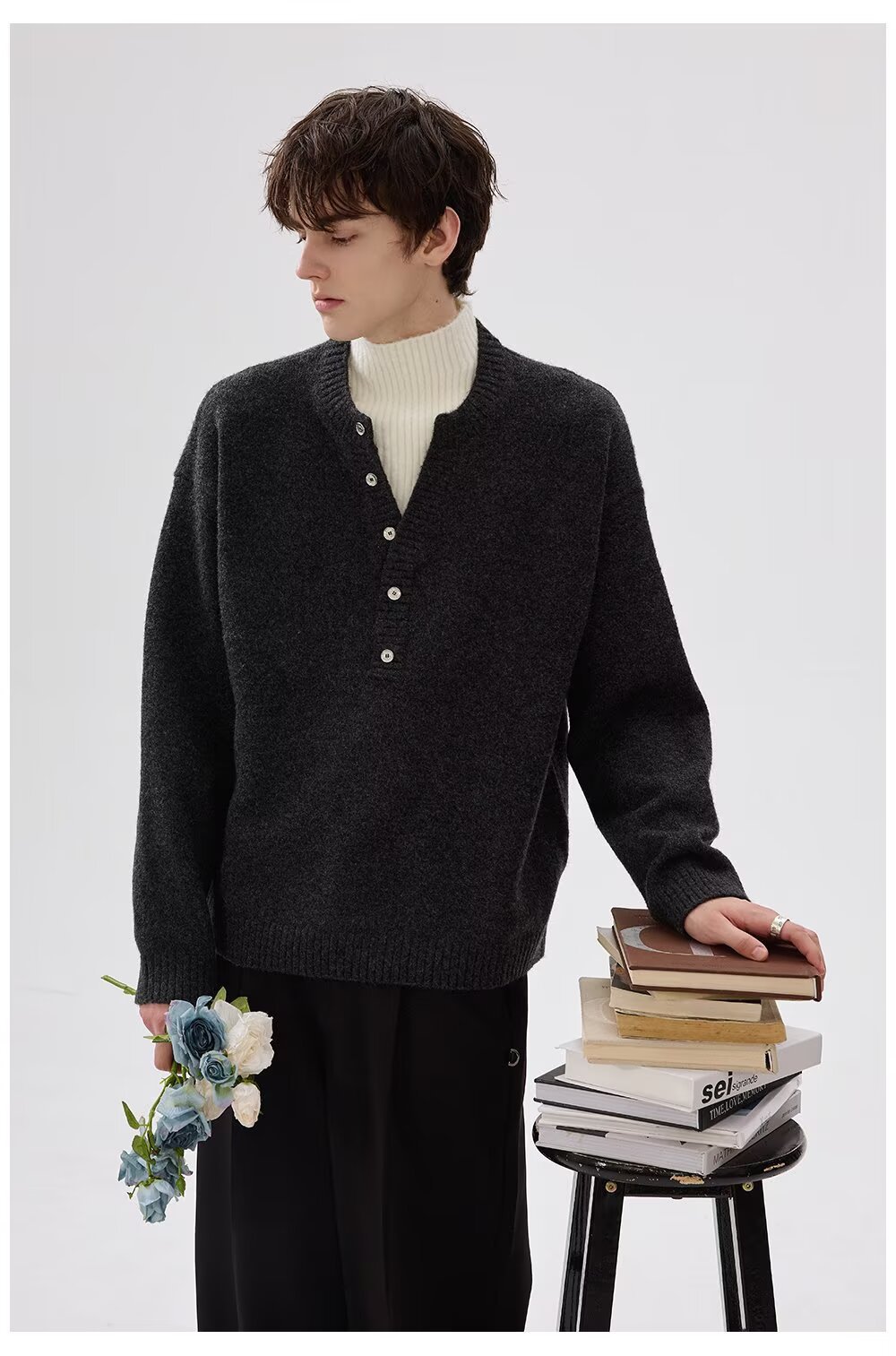 Explosiones transfronterizas de tamaño grande falso de tamaño europeo dos piezas de camisetas de punto de cuello medio alto suéter hombre viejo dinero de la fábrica de botón de moda al por mayor