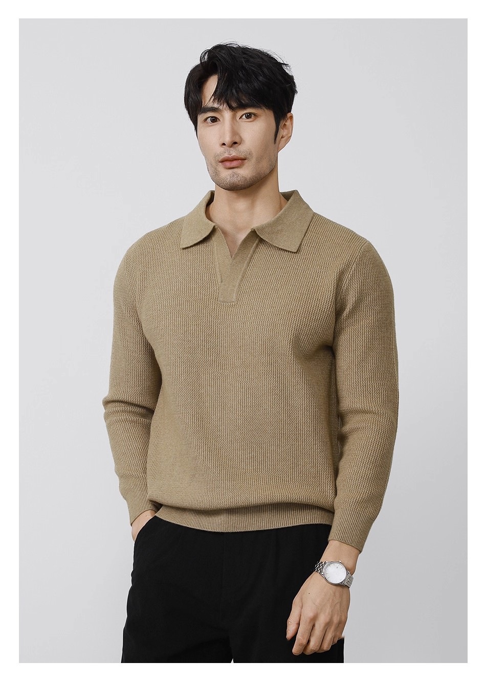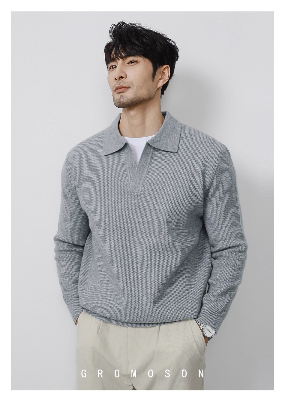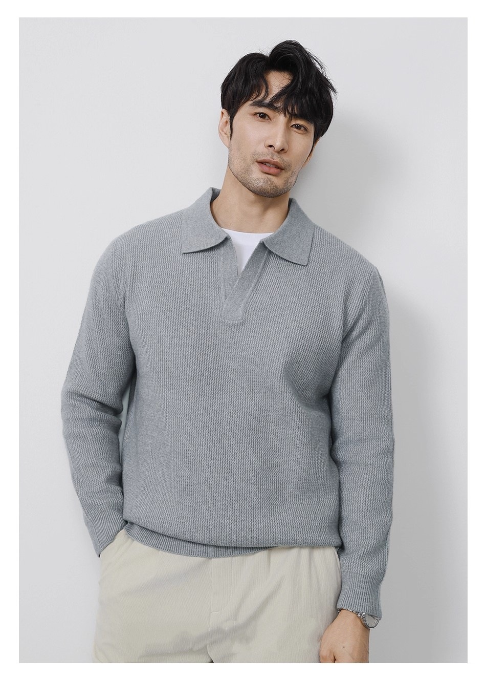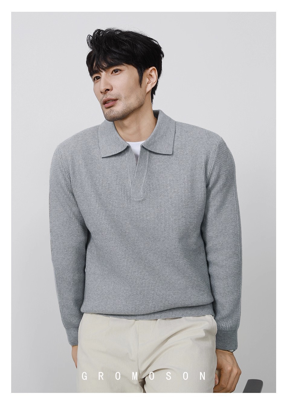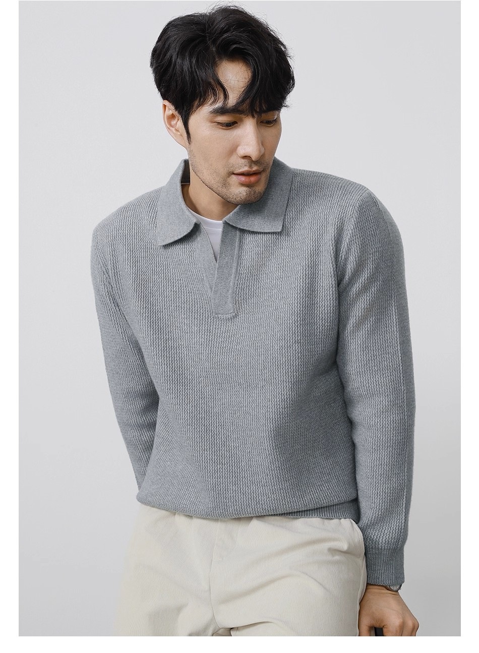 Explosiones transfronterizas de tamaño europeo tamaño grande polo collar V camiseta de punto suéter hombre viejo dinero viento gaviota fábrica de collar al por mayor