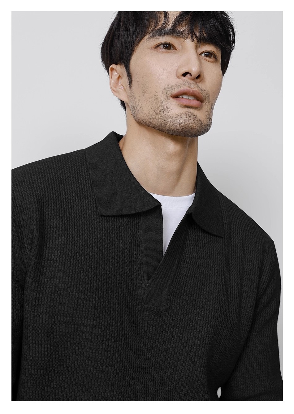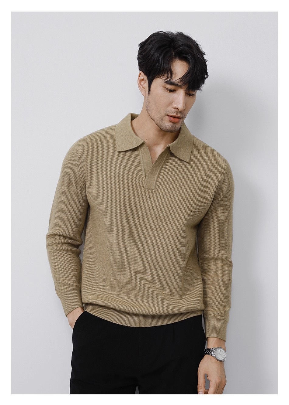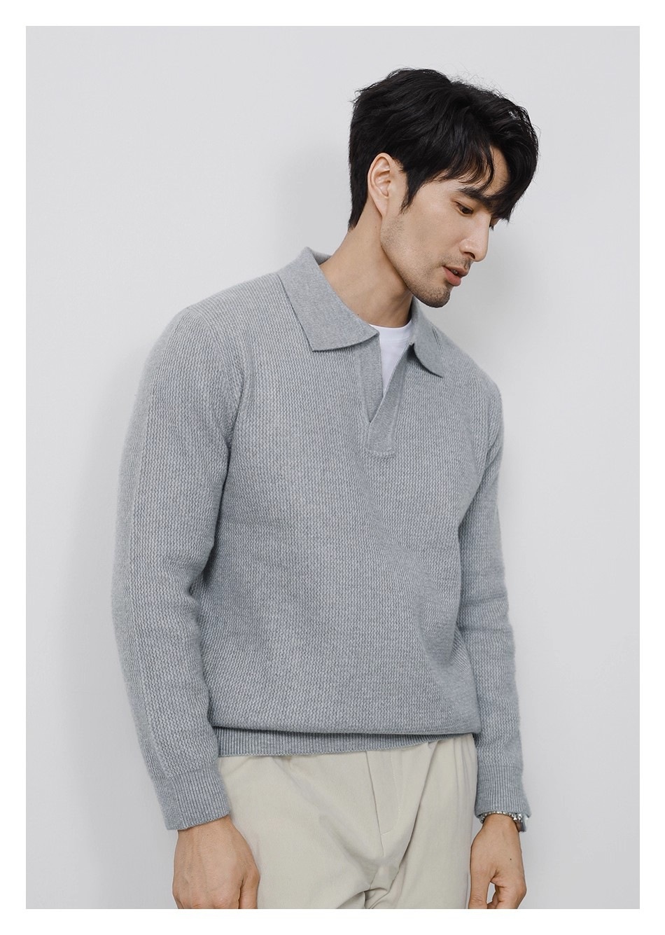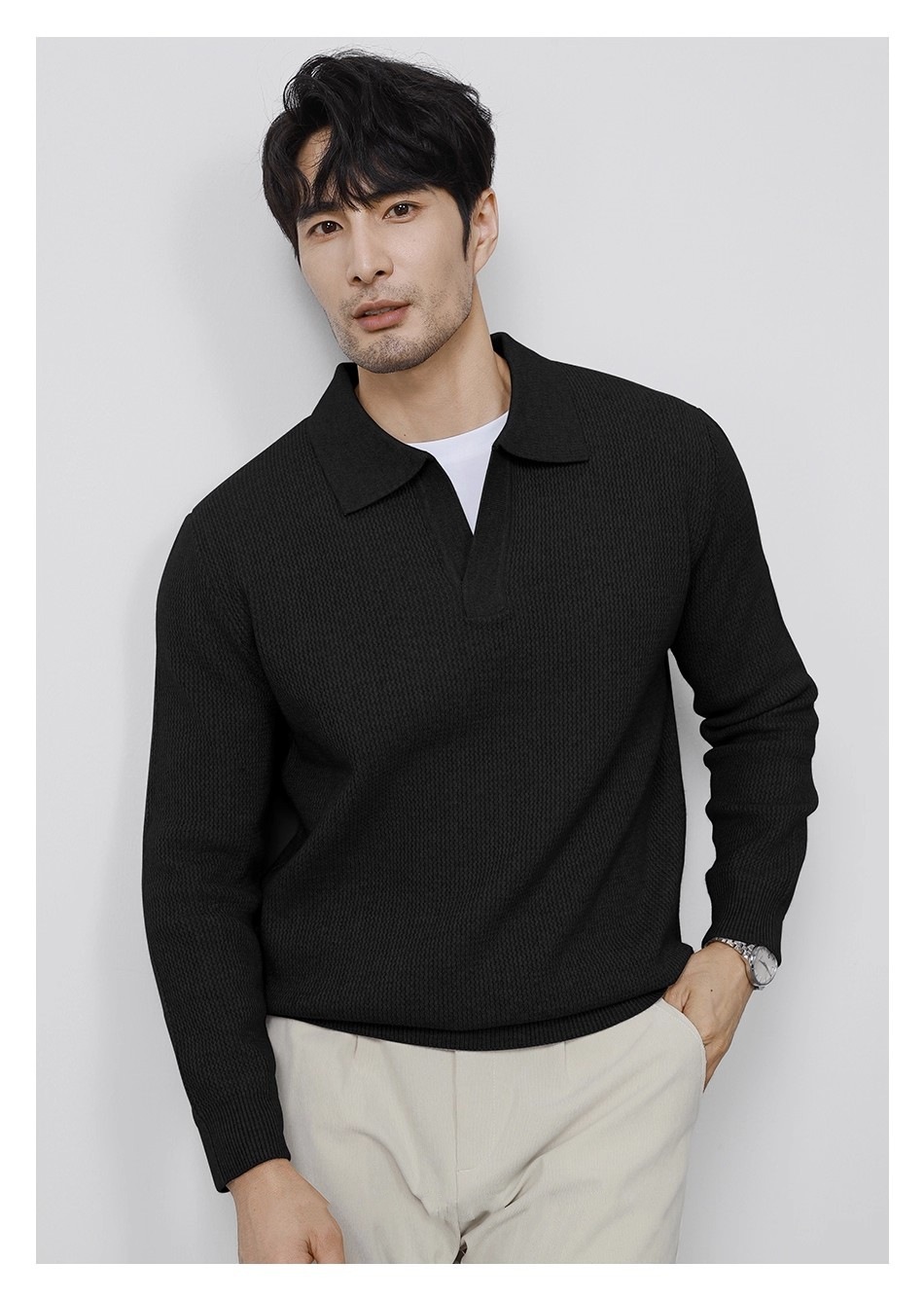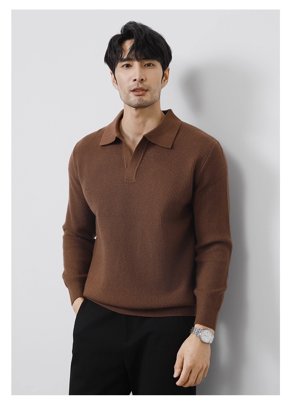 Explosiones transfronterizas de tamaño europeo tamaño grande polo collar V camiseta de punto suéter hombre viejo dinero viento gaviota fábrica de collar al por mayor