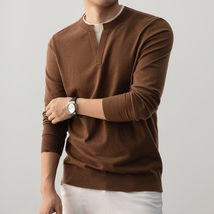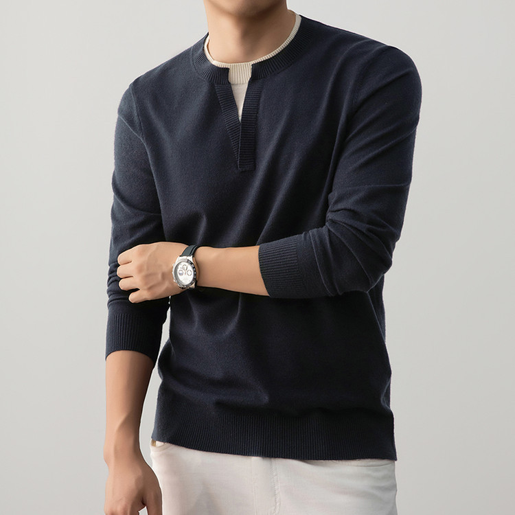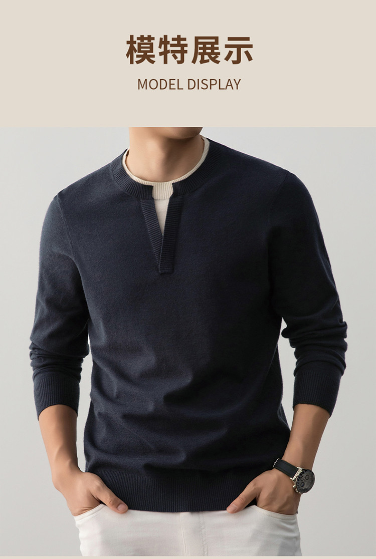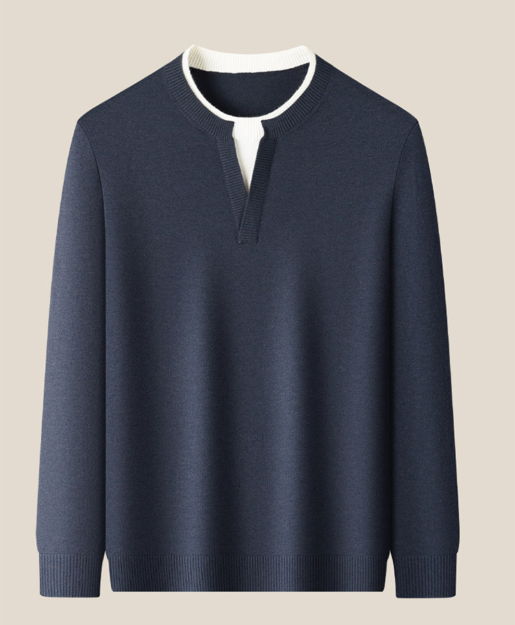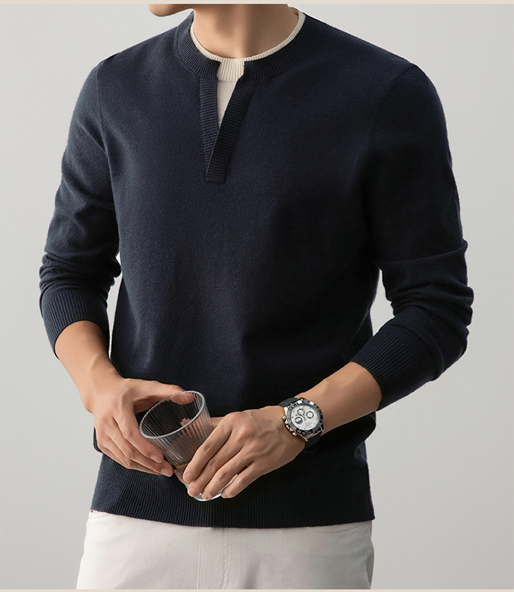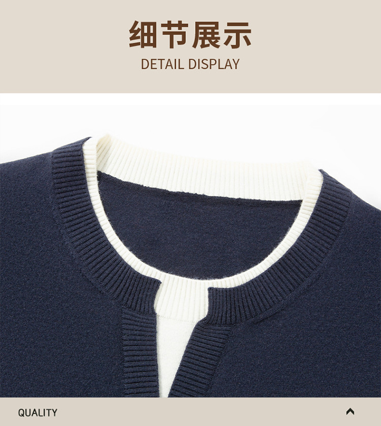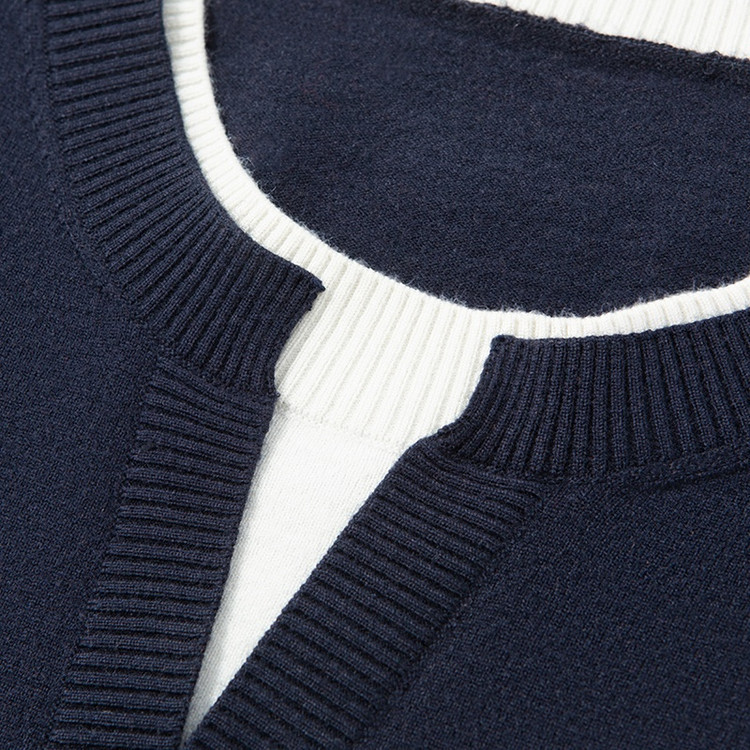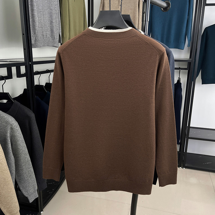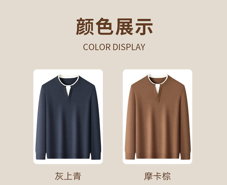 Camiseta de punto de otoño para hombres nuevo empalme falso dos piezas de moda universal suéter de cuello redondo de color sólido relajado