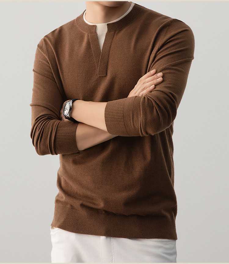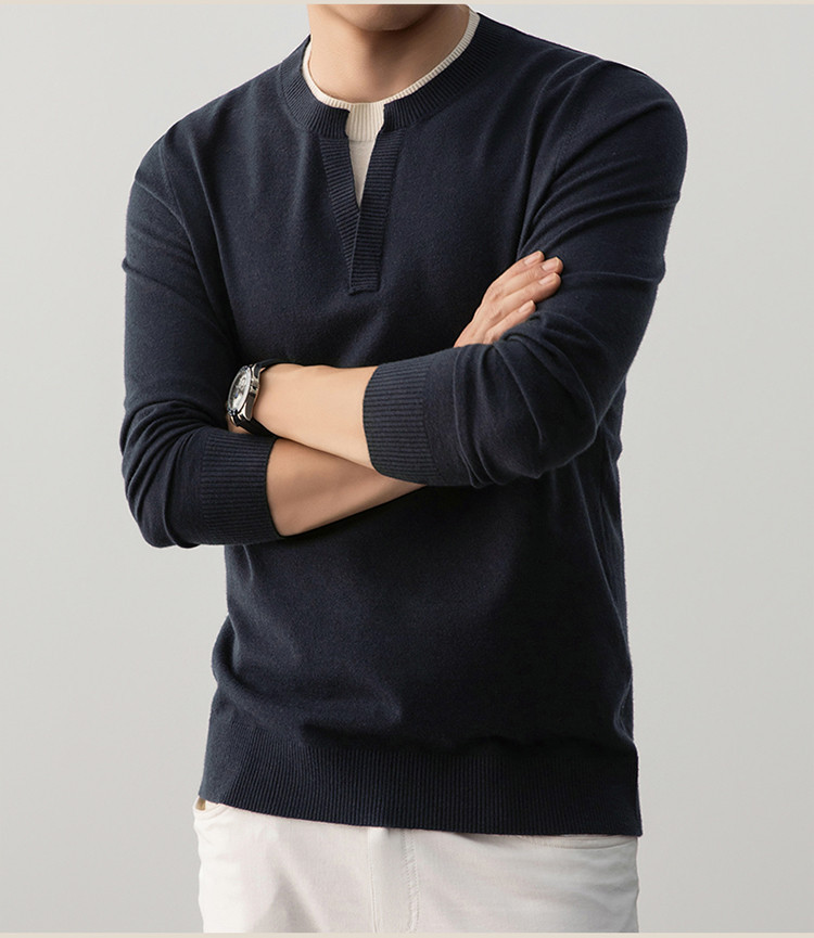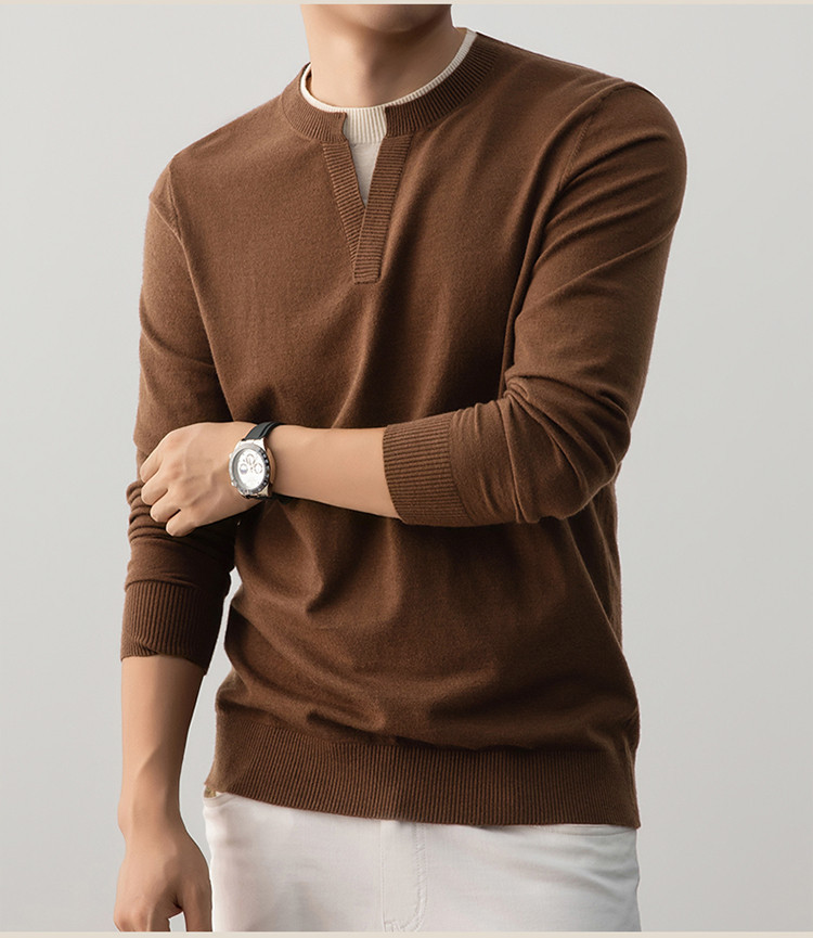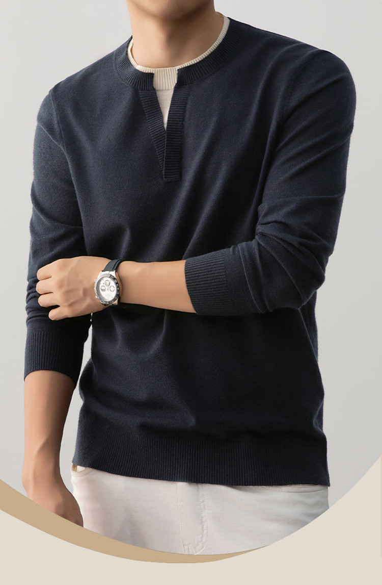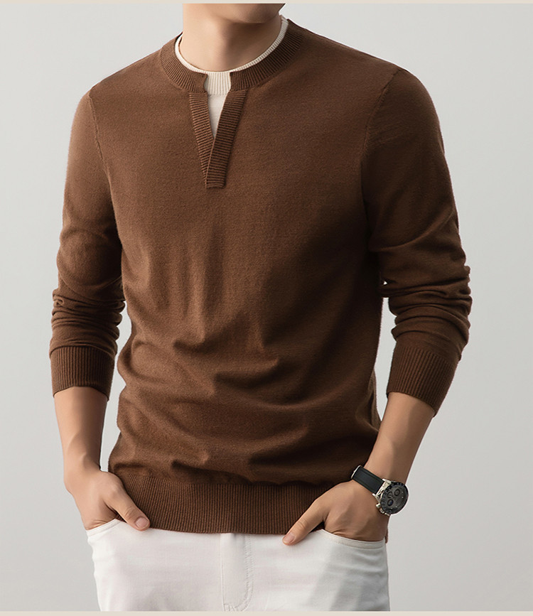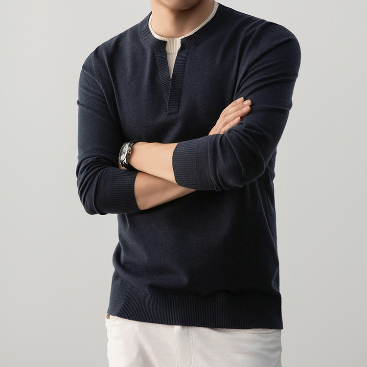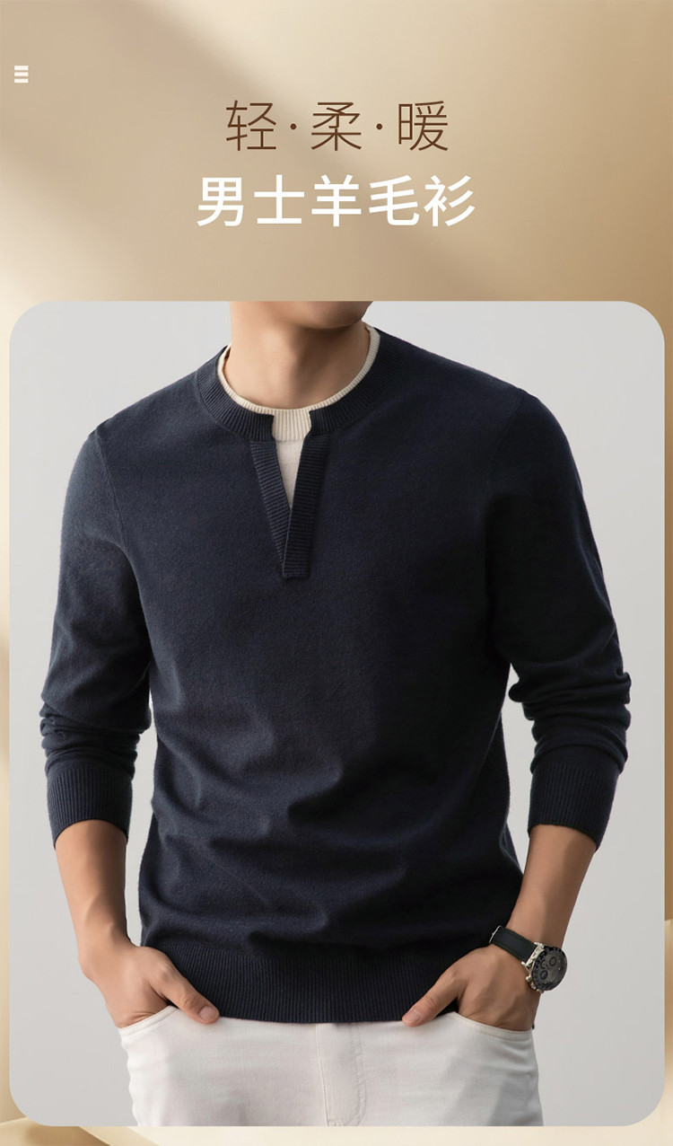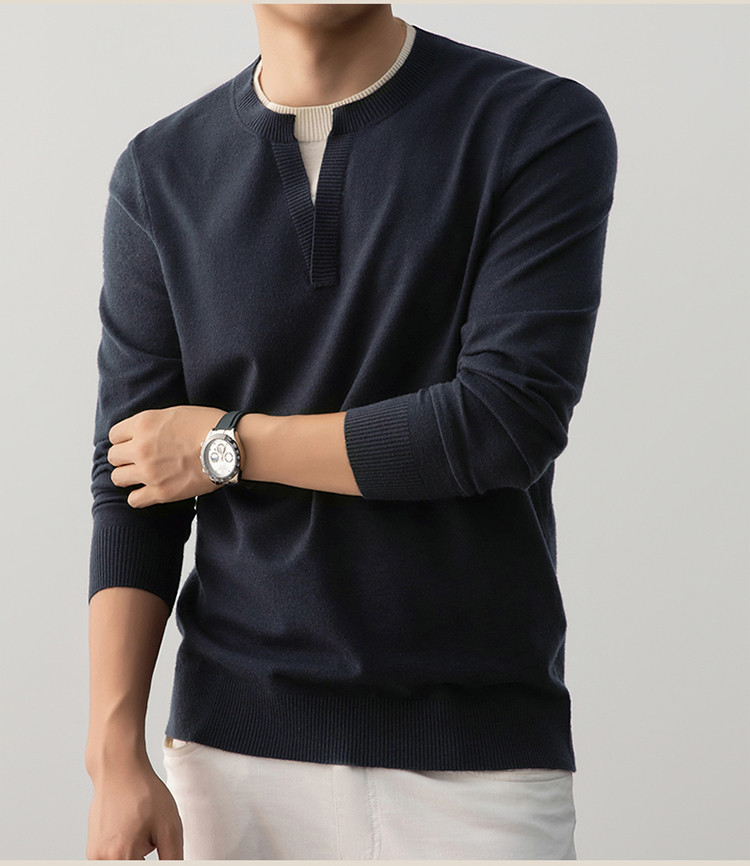 Camiseta de punto de otoño para hombres nuevo empalme falso dos piezas de moda universal suéter de cuello redondo de color sólido relajado