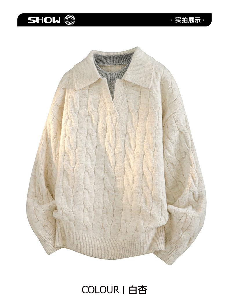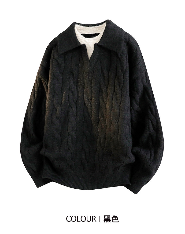 Explosiones transfronterizas de tamaño grande falso de dos piezas de polo camisa de punto de torsión suéter hombre viejo dinero fábrica de moda al por mayor
