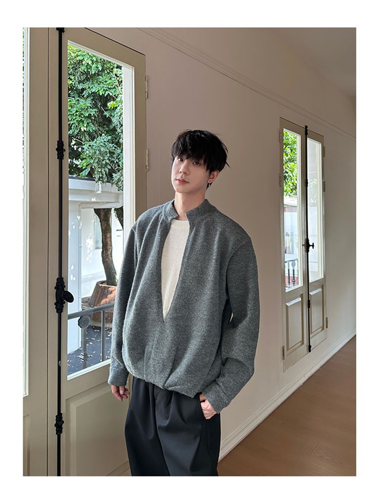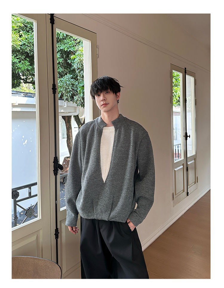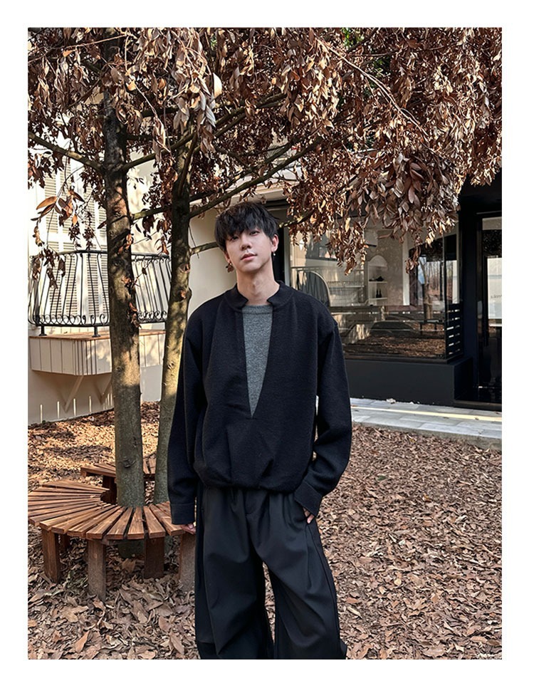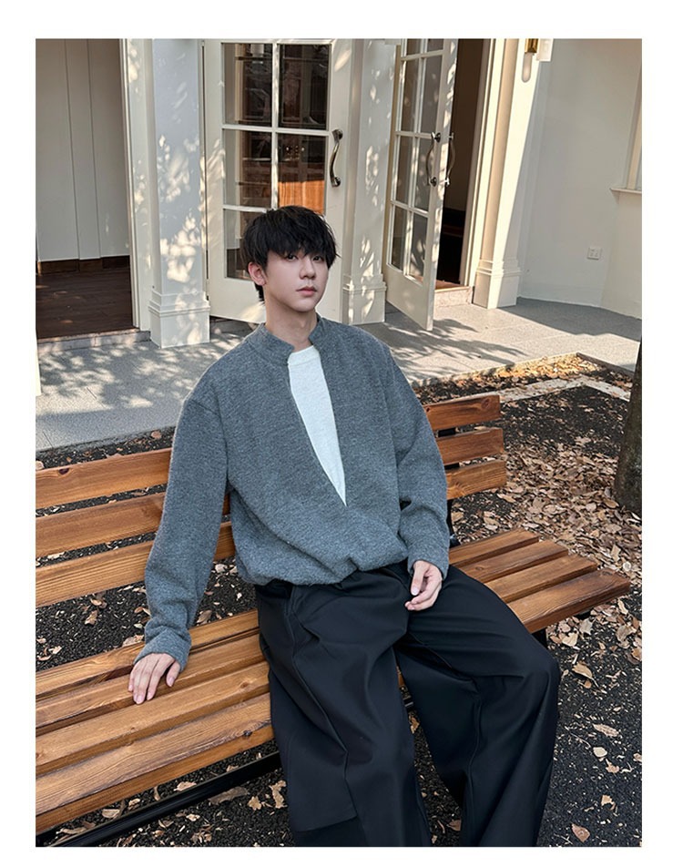 Explosiones transfronterizas de tamaño grande falso de tamaño europeo dos piezas de camisetas de punto de cuello en V suéter hombre viejo viento de invierno y otoño fábrica al por mayor
