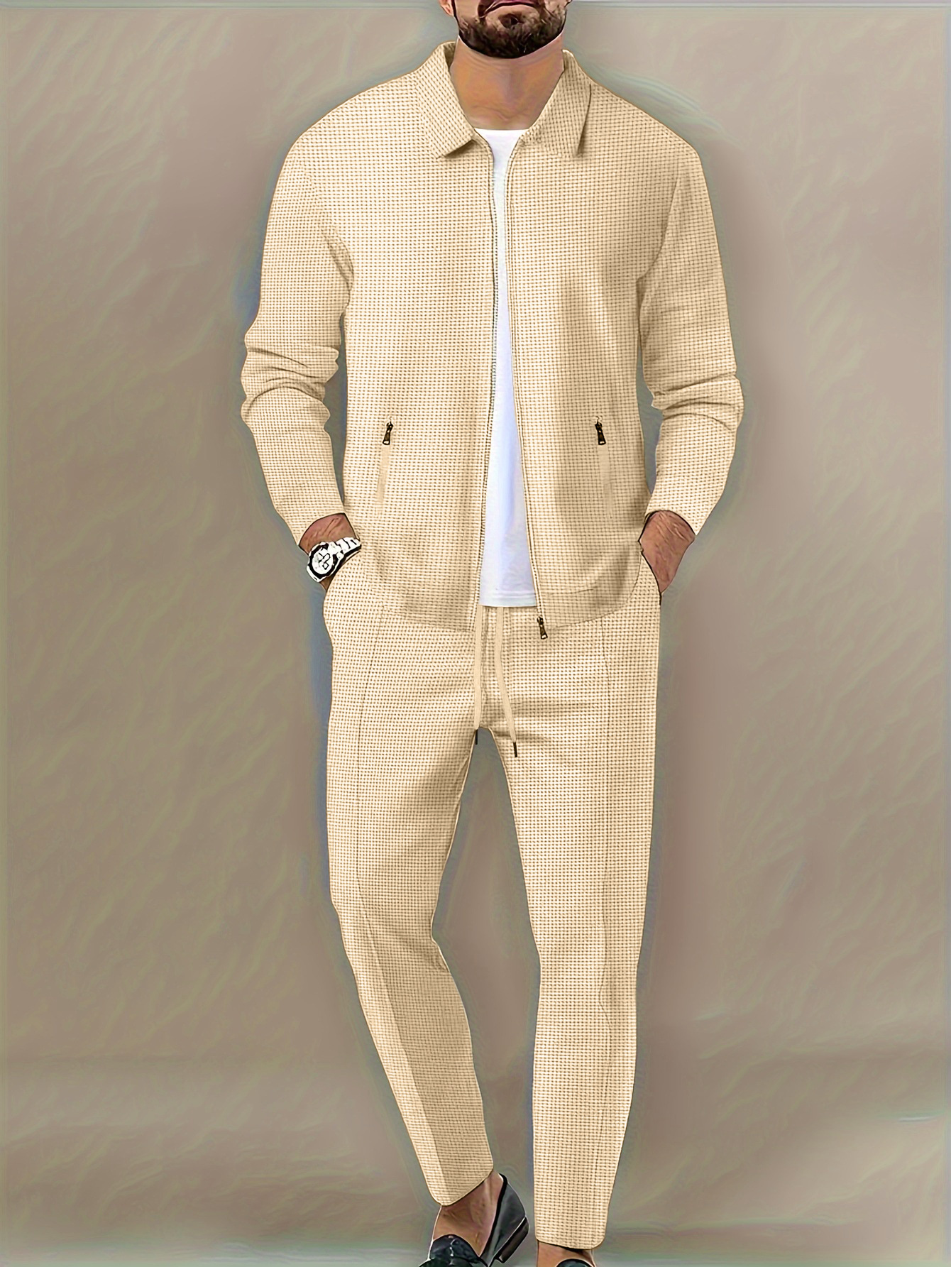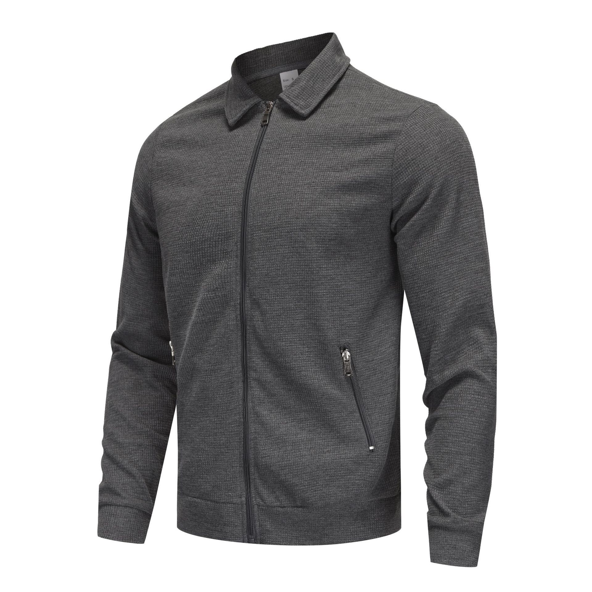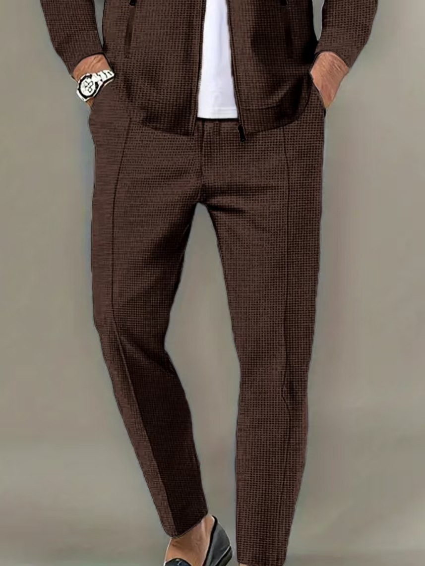 Europa y Estados Unidos hombres transfronterizos Amazon waffle zipper chaqueta deportiva casual manga larga pantalones largos set de solapa