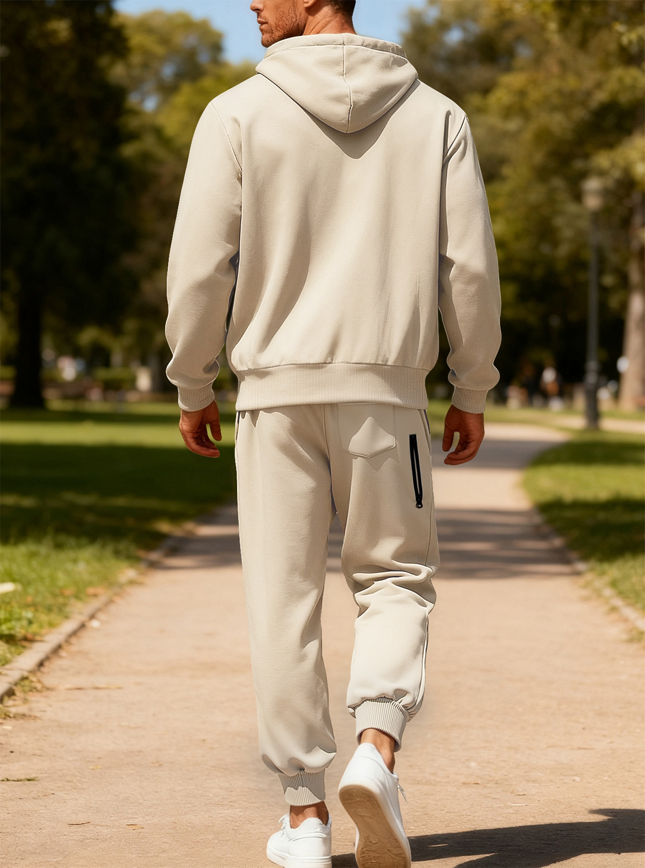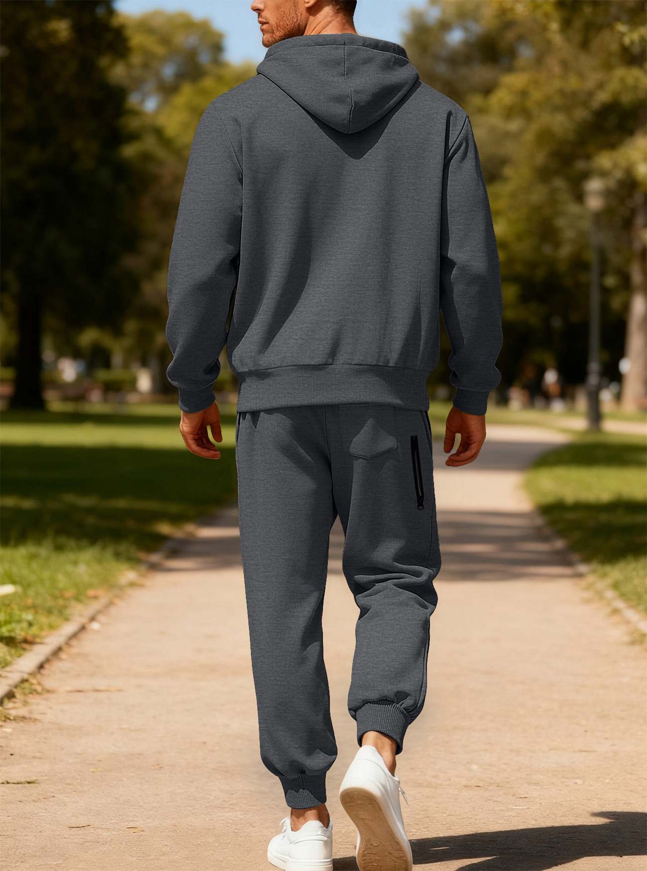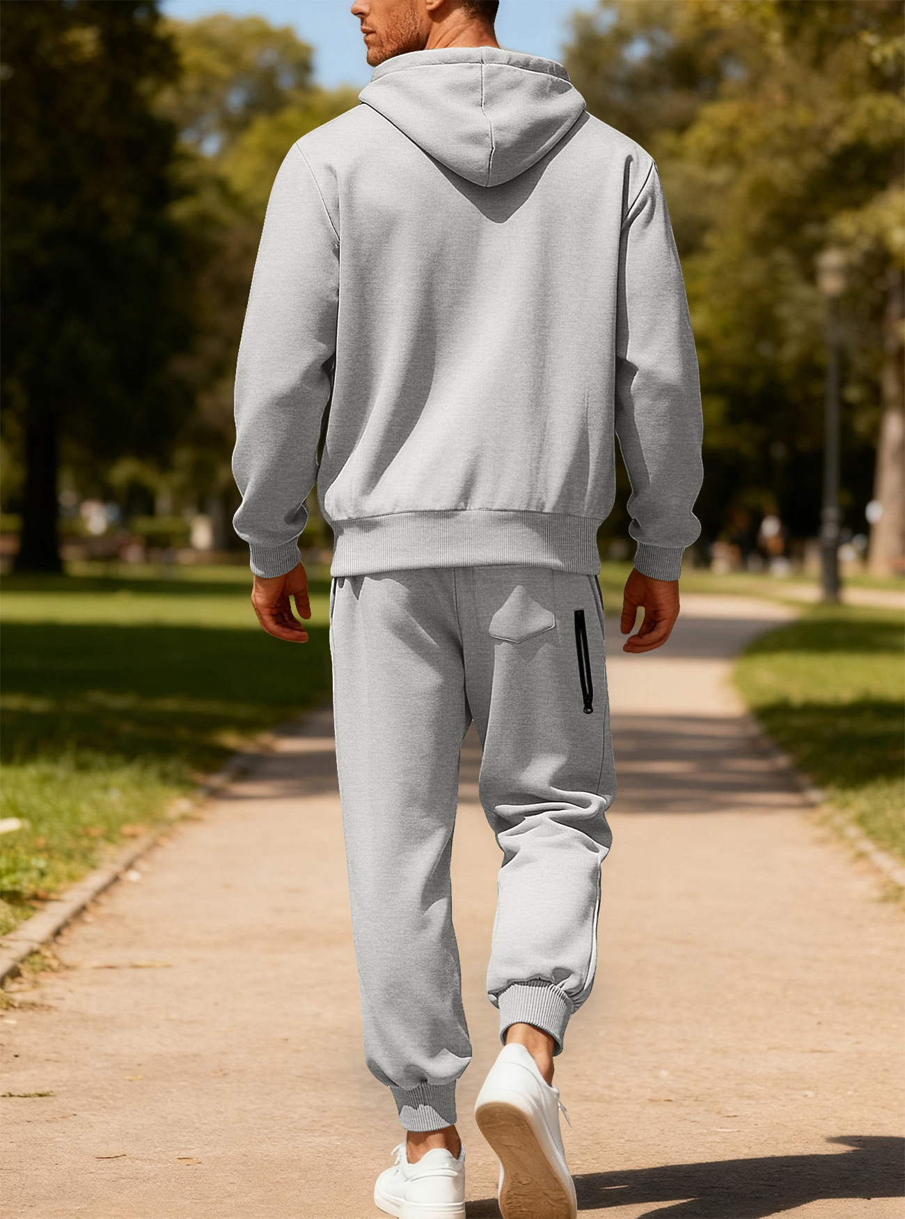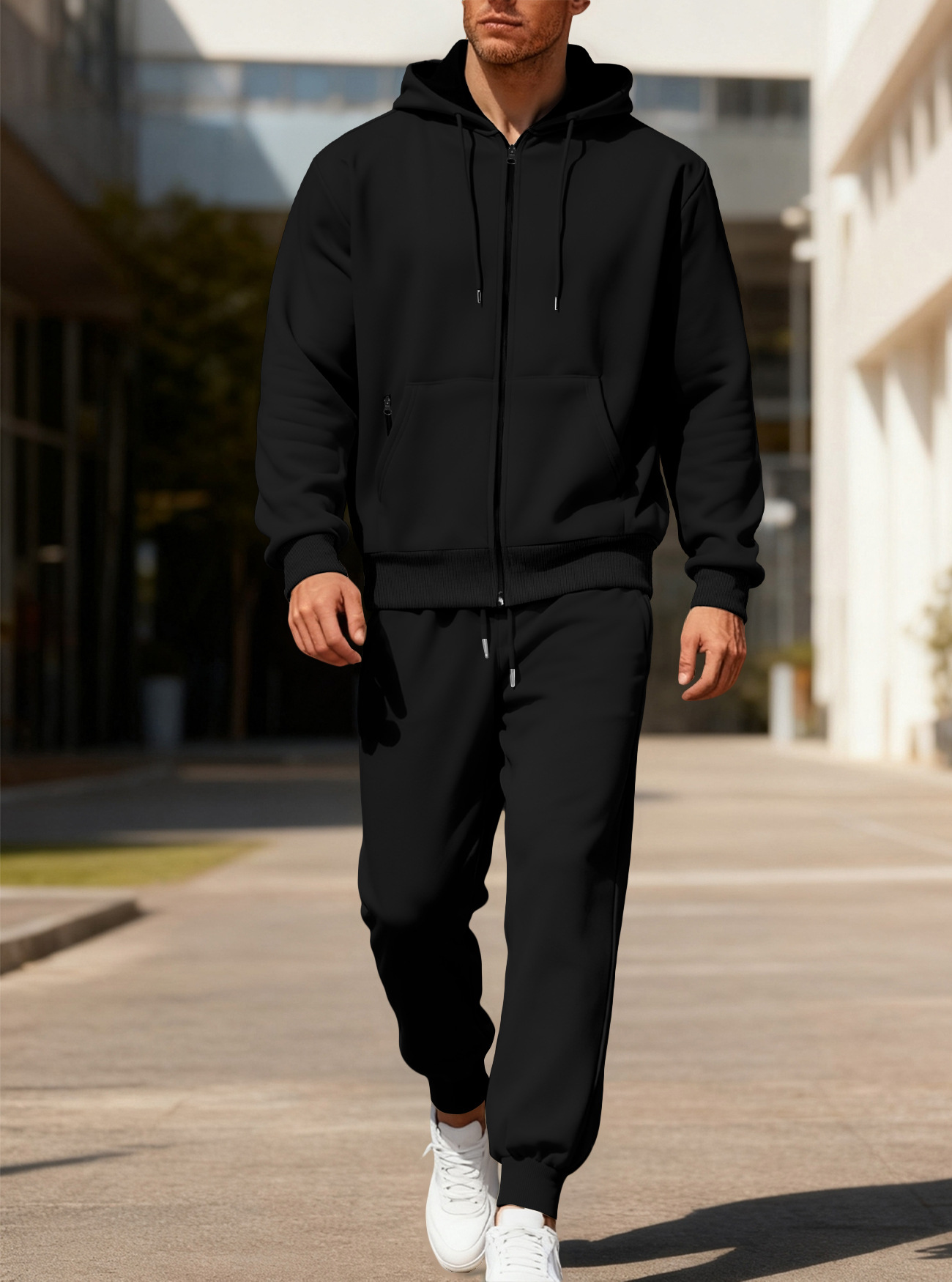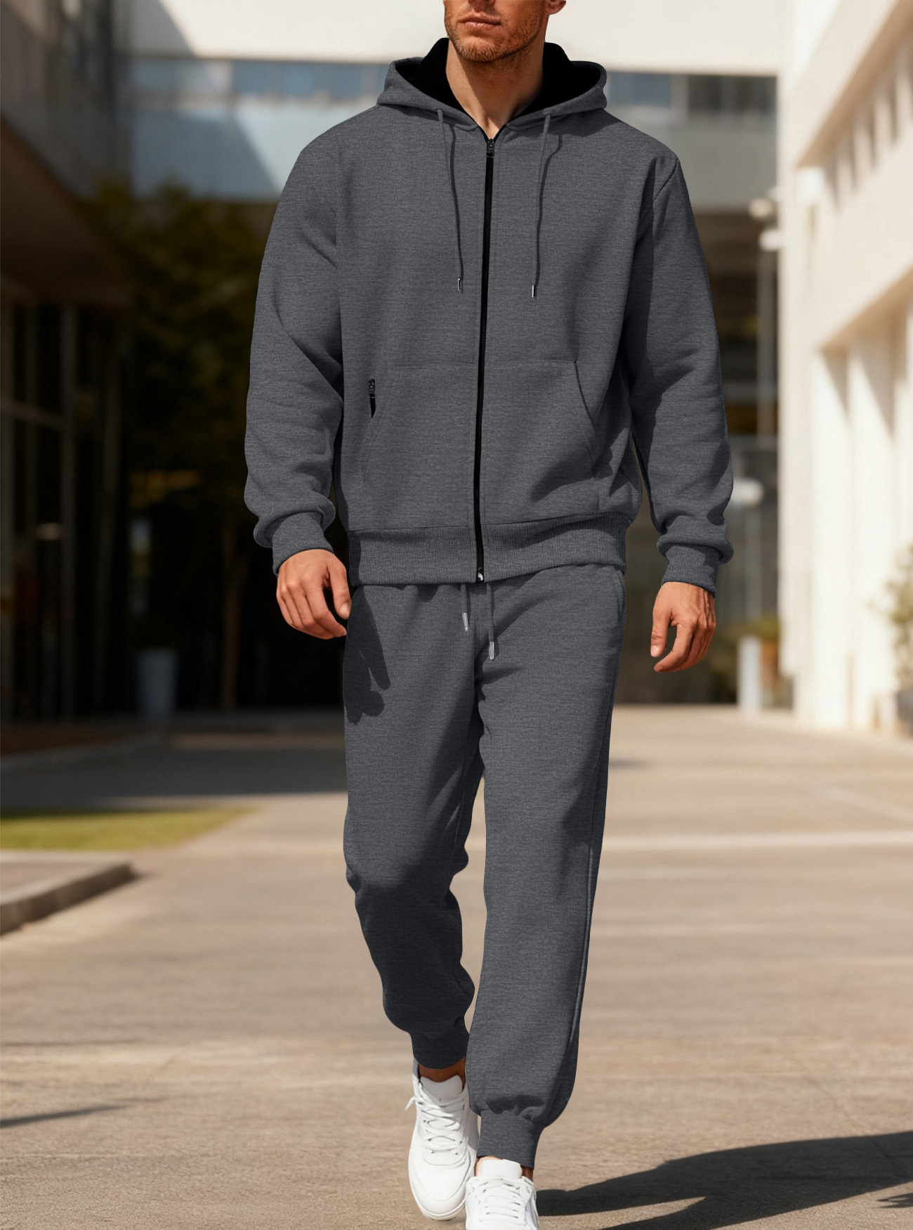 Transfronterizos Amazon otoño y invierno de color sólido para hombres pantalones de manga larga con capuzas de vello caliente y cómodo juego de ocio deportivo para hombres