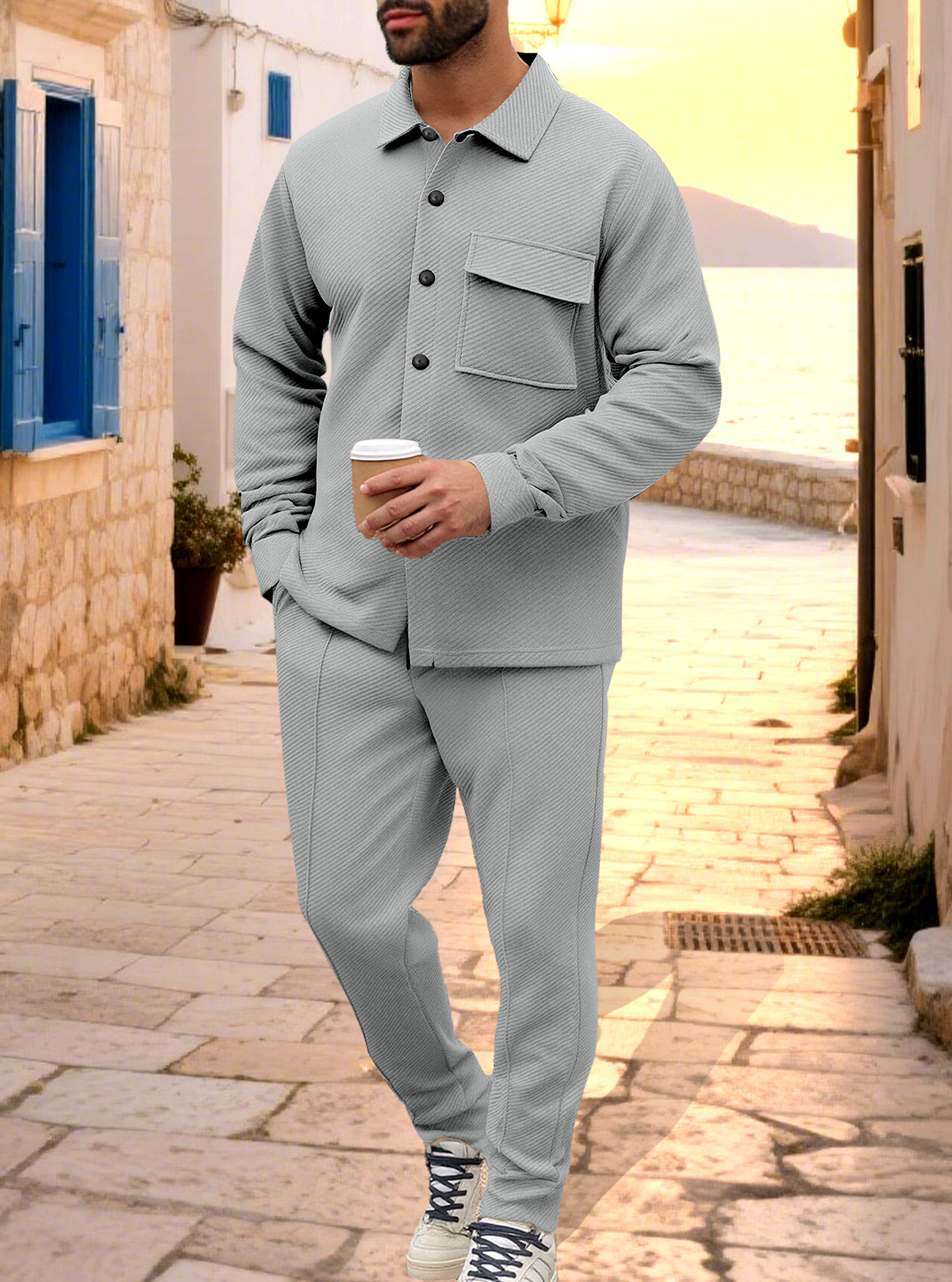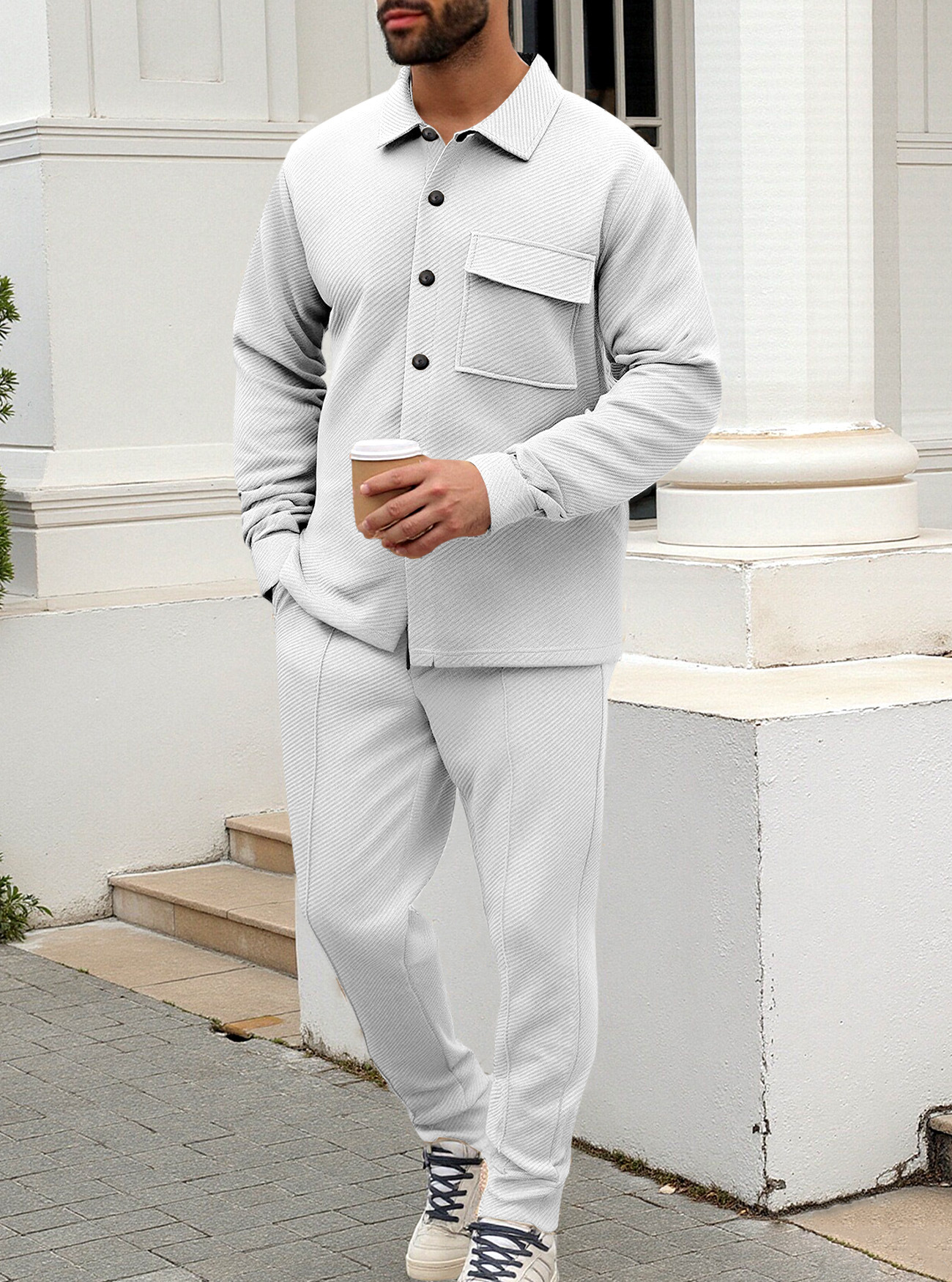 Nuevo otoño y invierno comercio exterior transfronterizo estilo americano pesado ropa de hombre retro casual jacquard con solapa hombre chaqueta delgada set