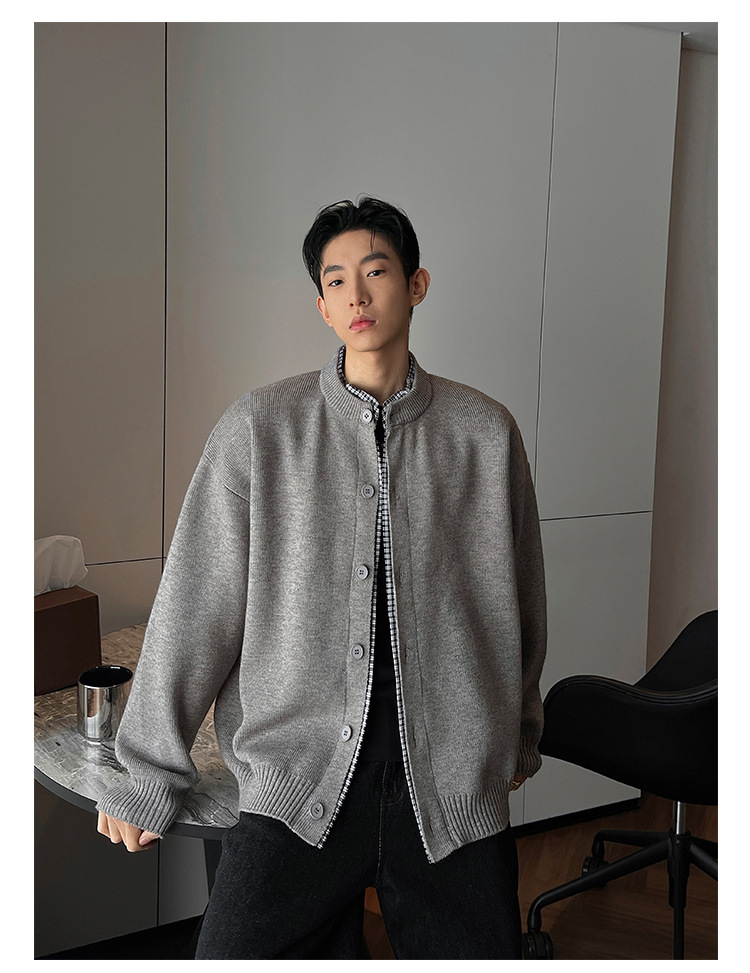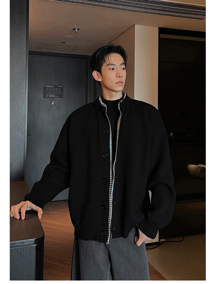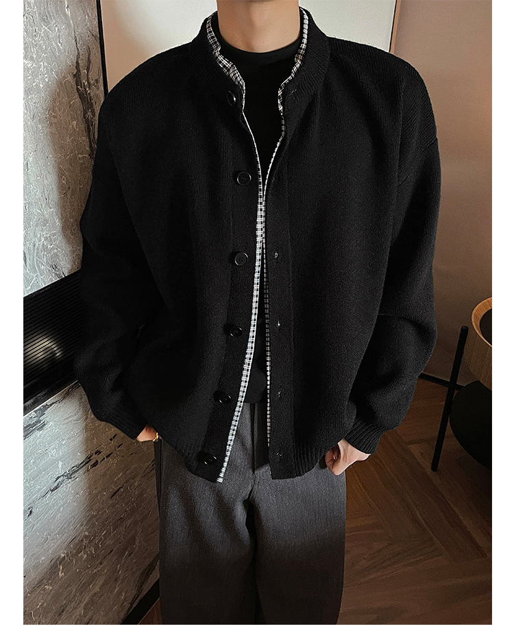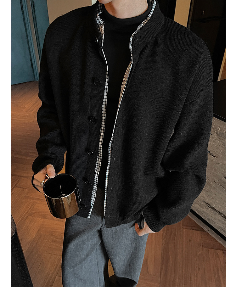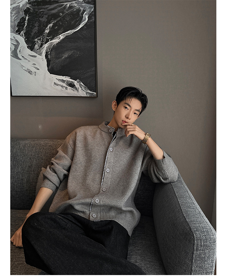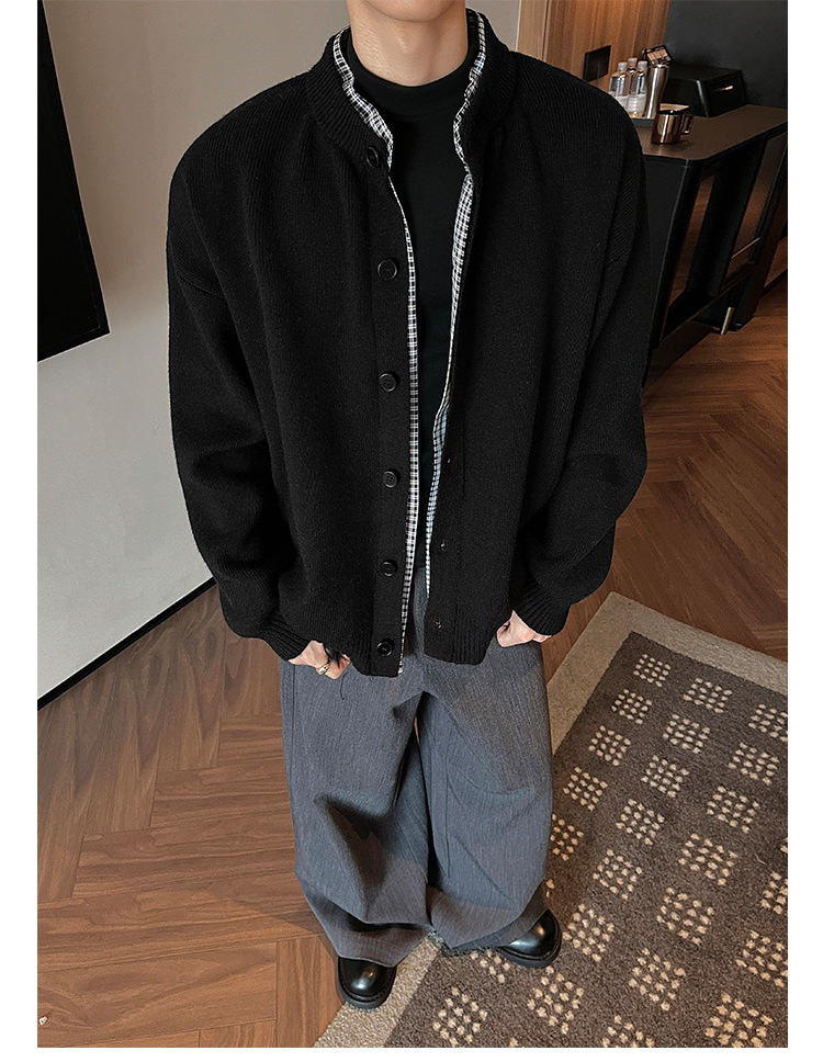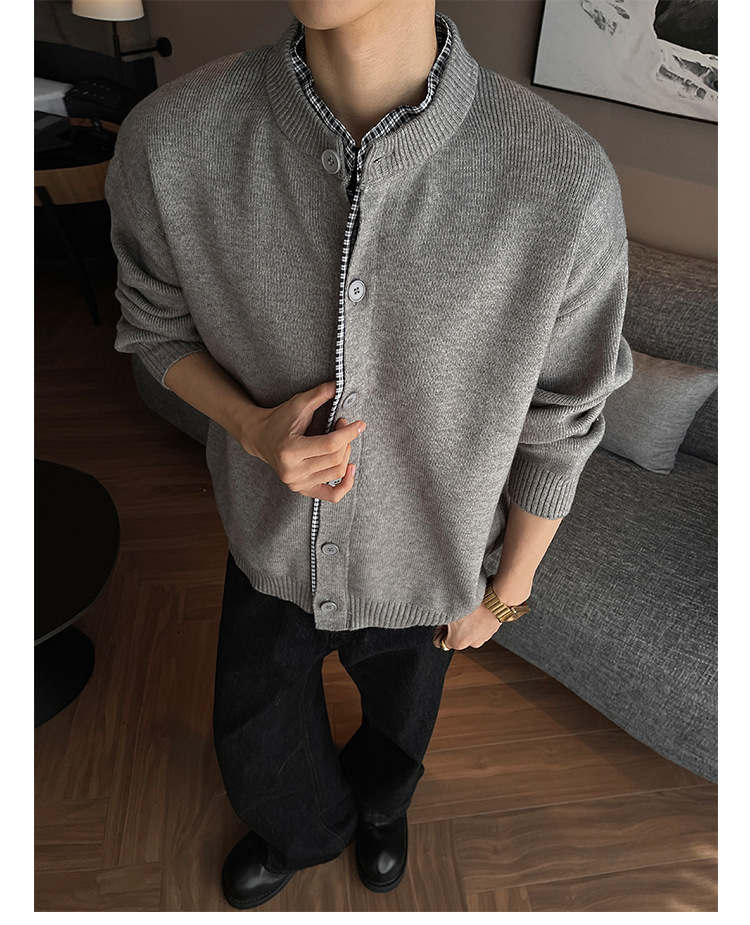 Explosiones transfronterizas camisas a cuadros de tamaño grande europeo falsas dos piezas camisas de punto suéter cardigan chaqueta de moda fábrica al por mayor