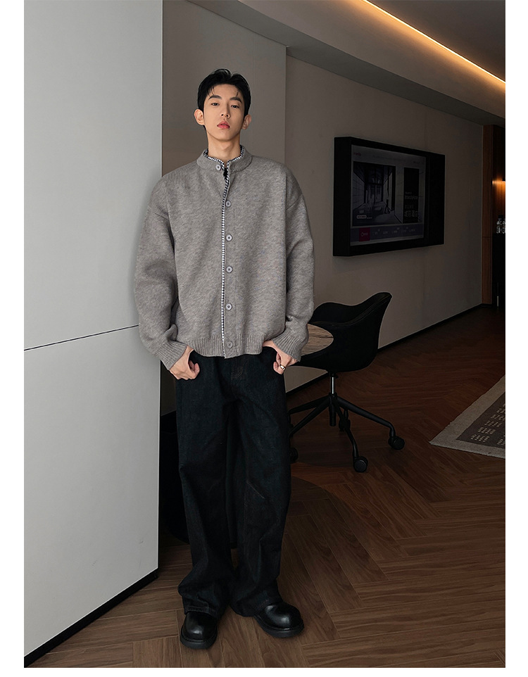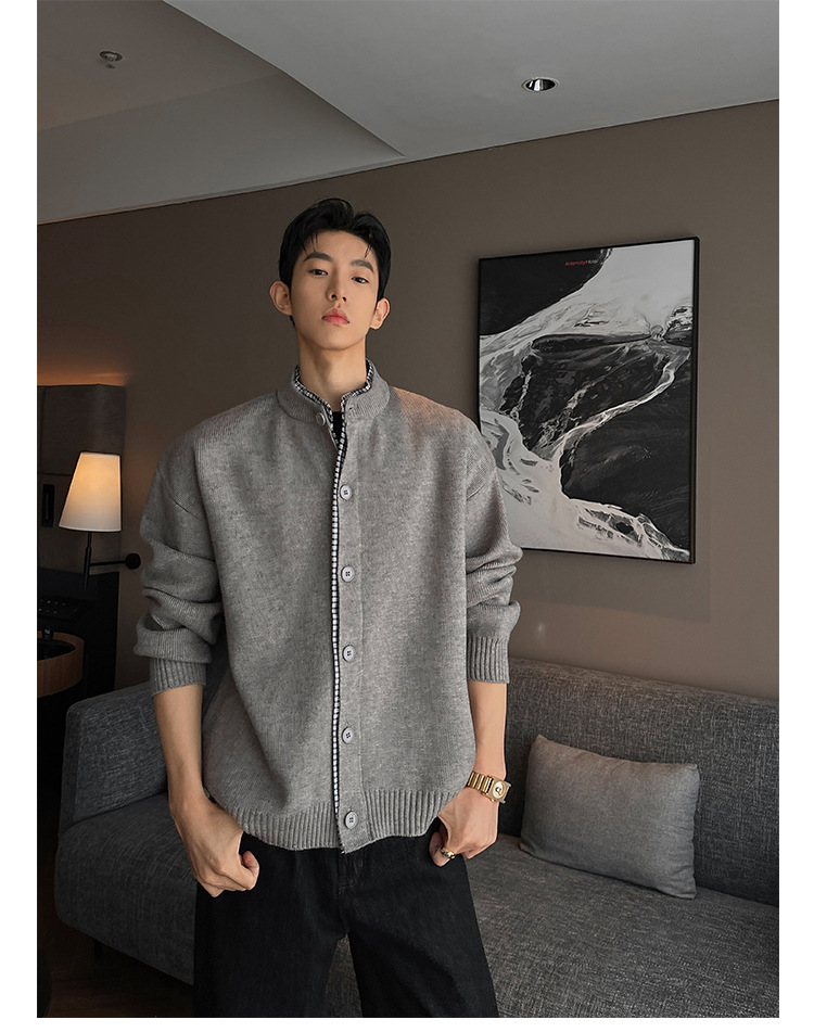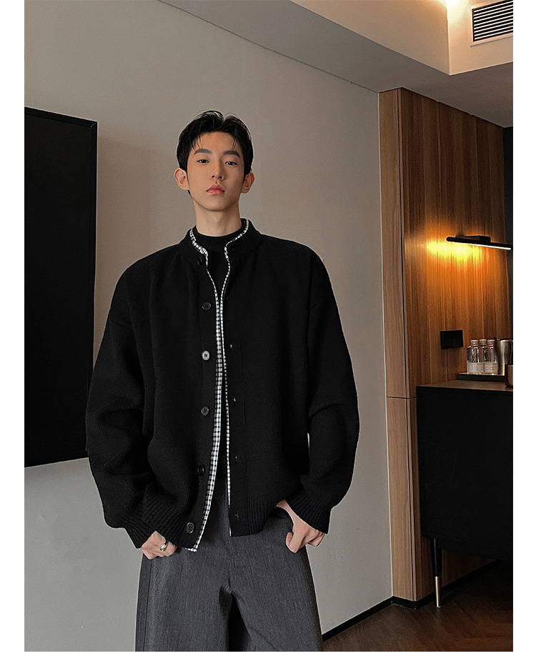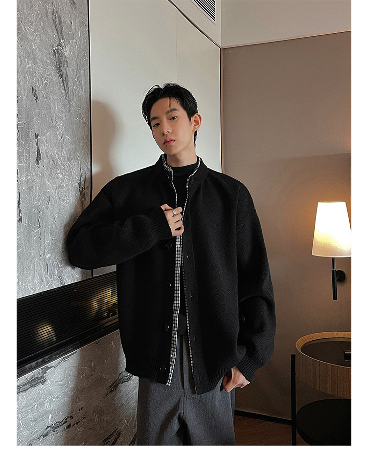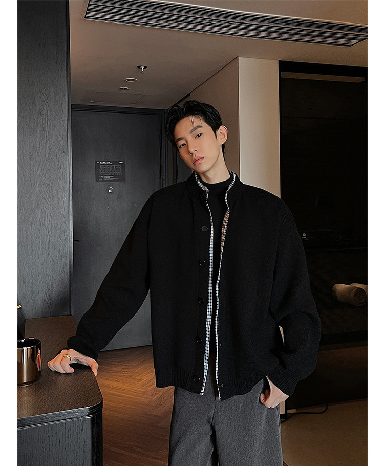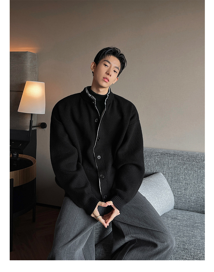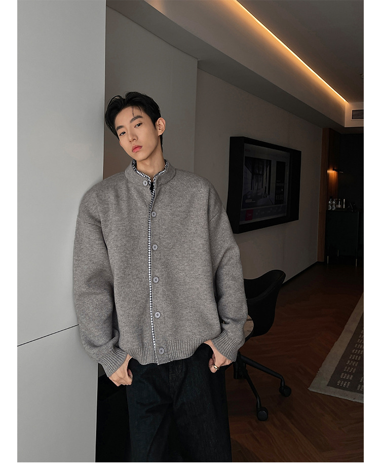 Explosiones transfronterizas camisas a cuadros de tamaño grande europeo falsas dos piezas camisas de punto suéter cardigan chaqueta de moda fábrica al por mayor