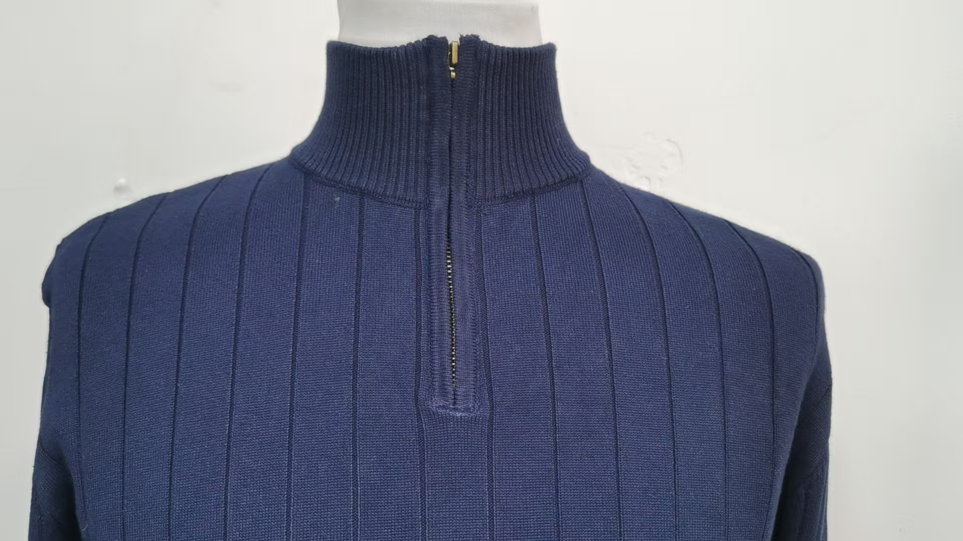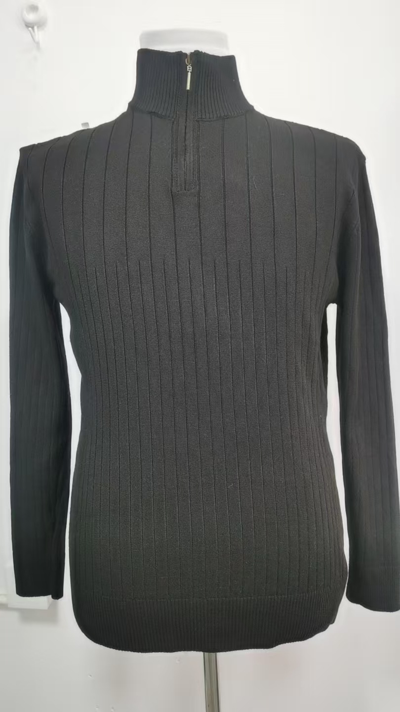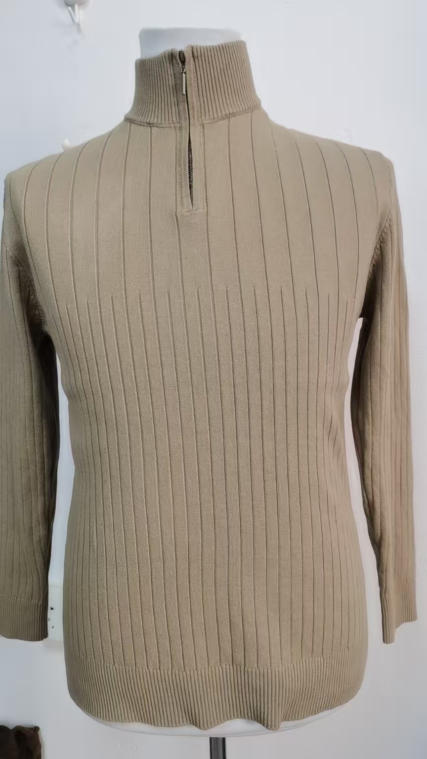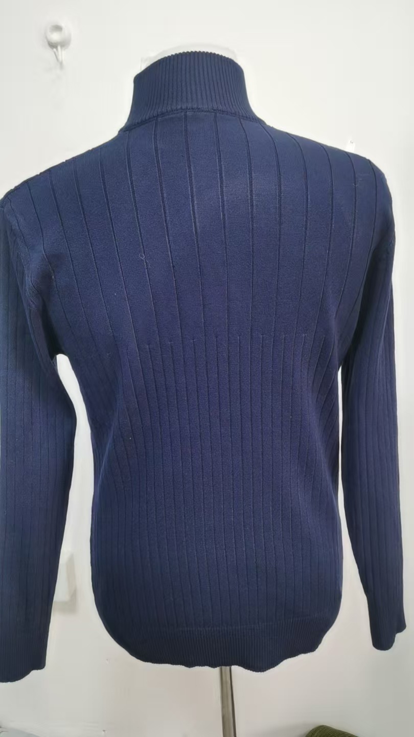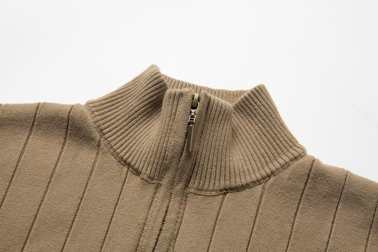 Suéter masculino primavera / otoño / invierno de manga larga cuello sólido hombre medio cremallera comercio exterior simple camisa de punto de color sólido casual