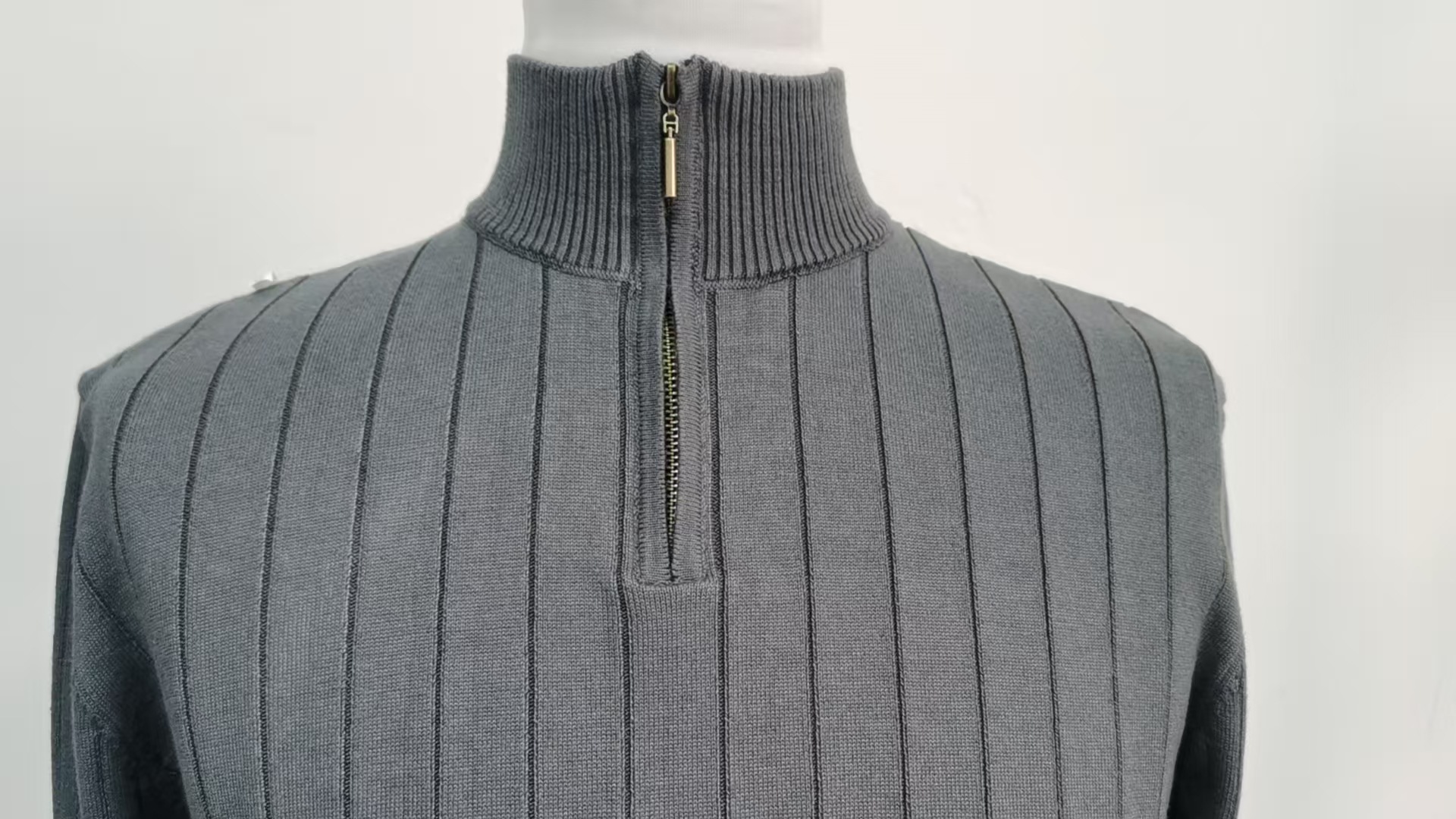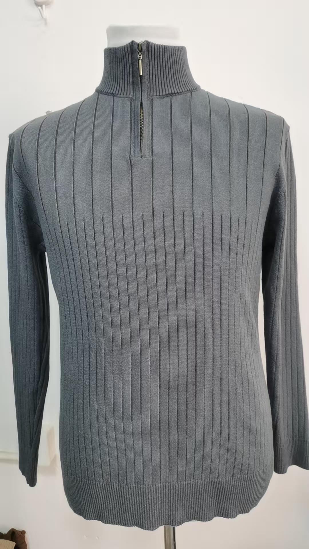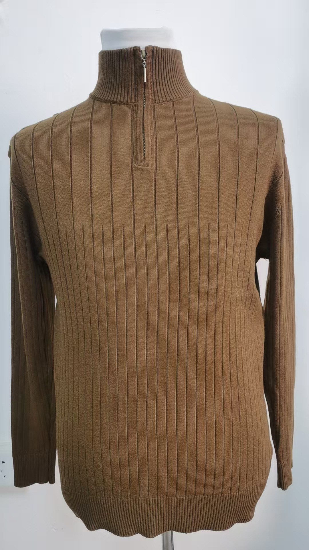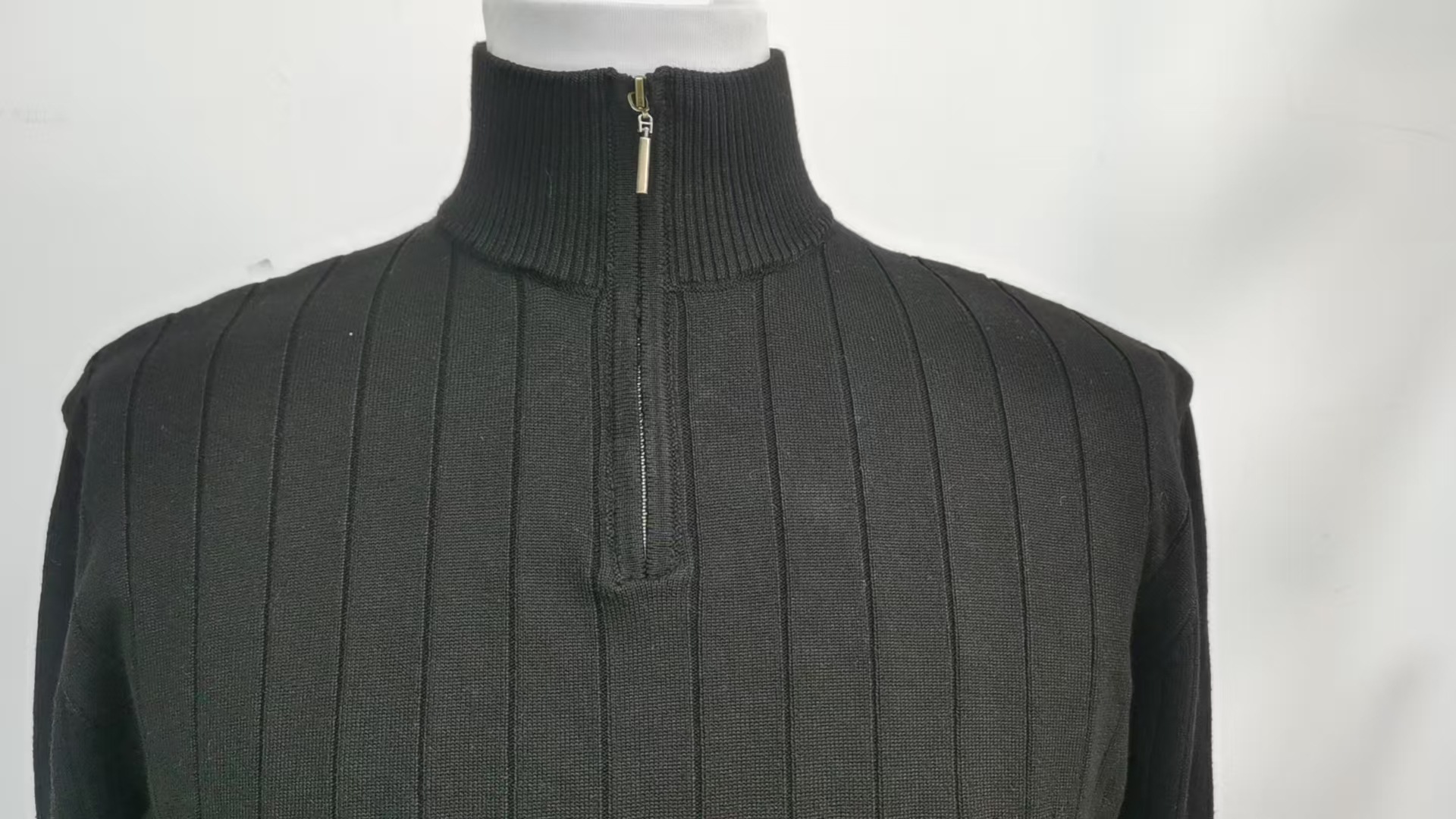 Suéter masculino primavera / otoño / invierno de manga larga cuello sólido hombre medio cremallera comercio exterior simple camisa de punto de color sólido casual