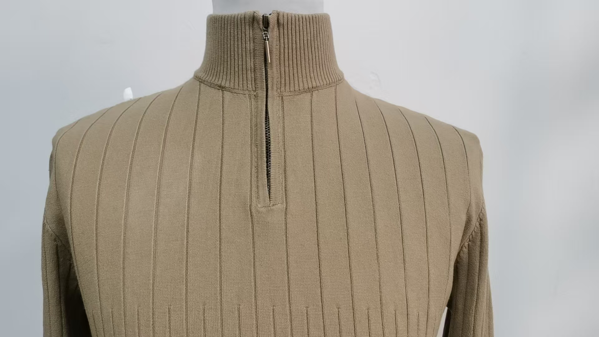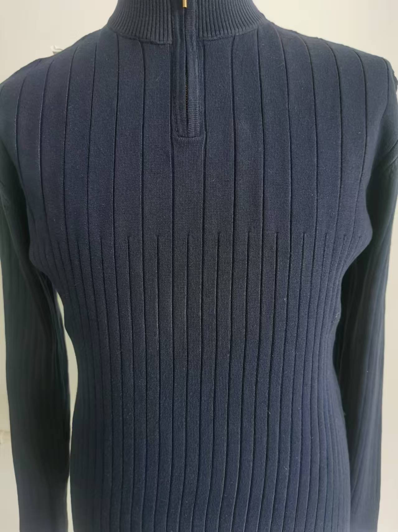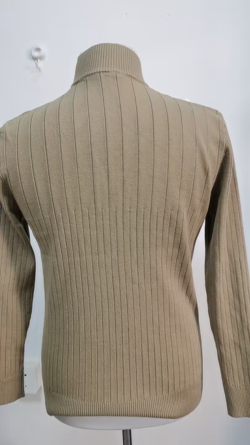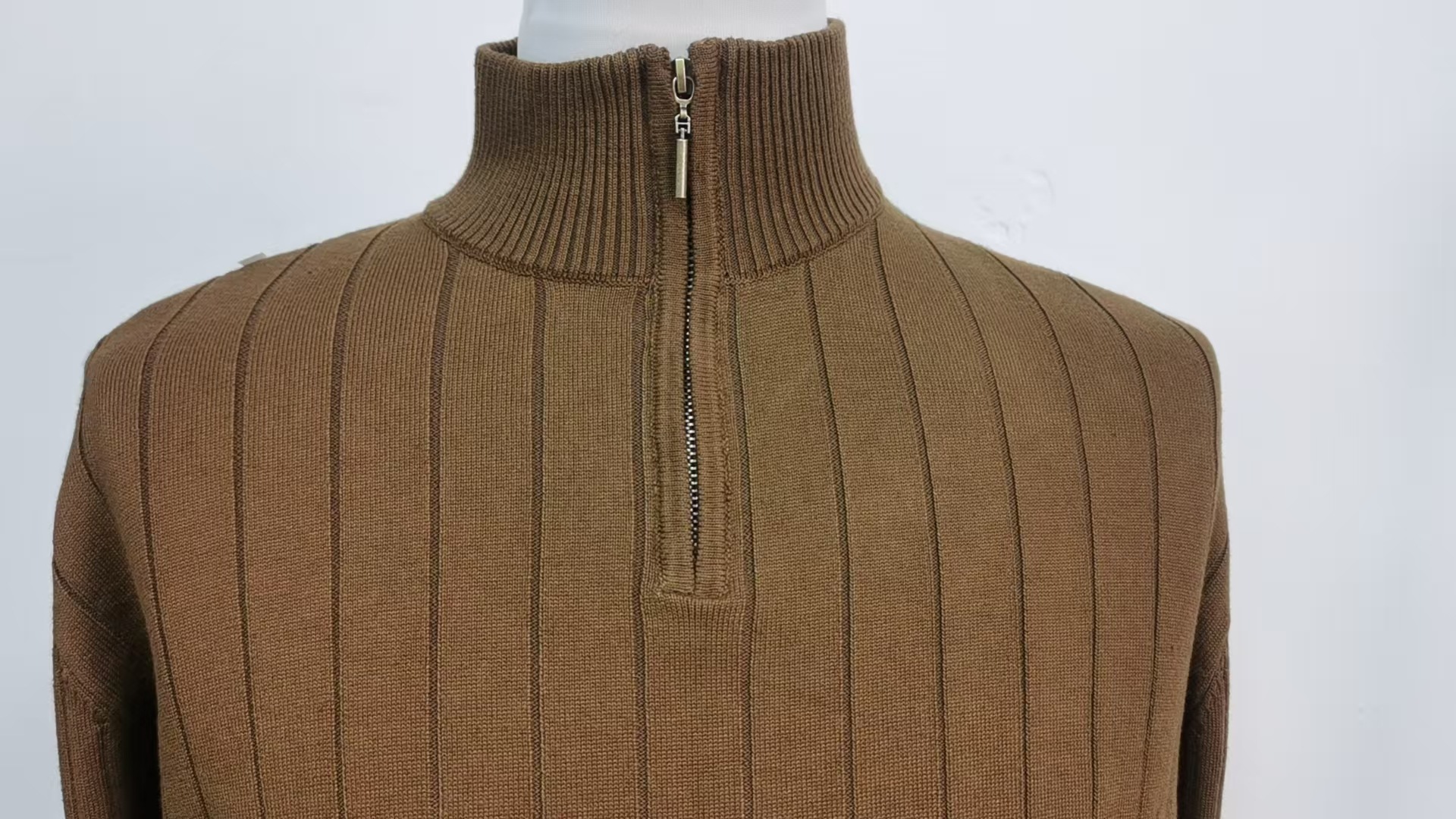 Suéter masculino primavera / otoño / invierno de manga larga cuello sólido hombre medio cremallera comercio exterior simple camisa de punto de color sólido casual