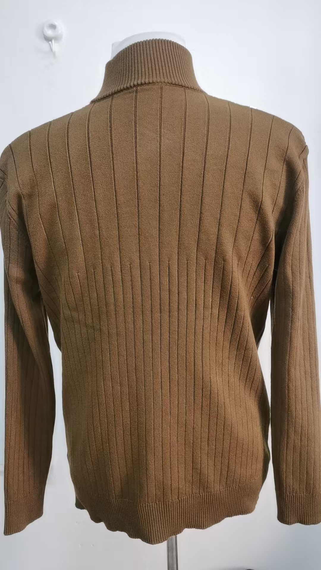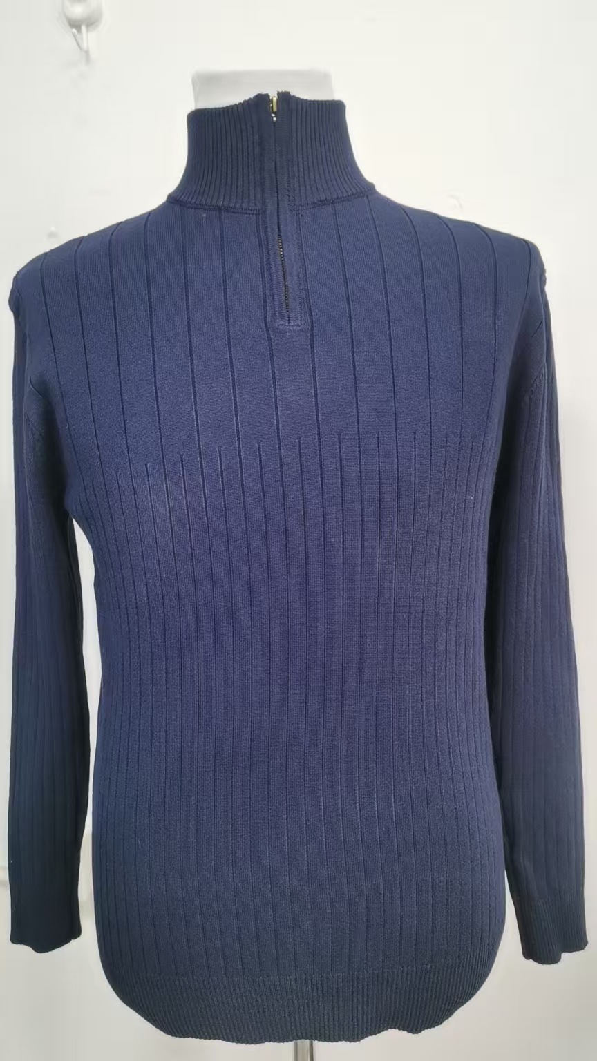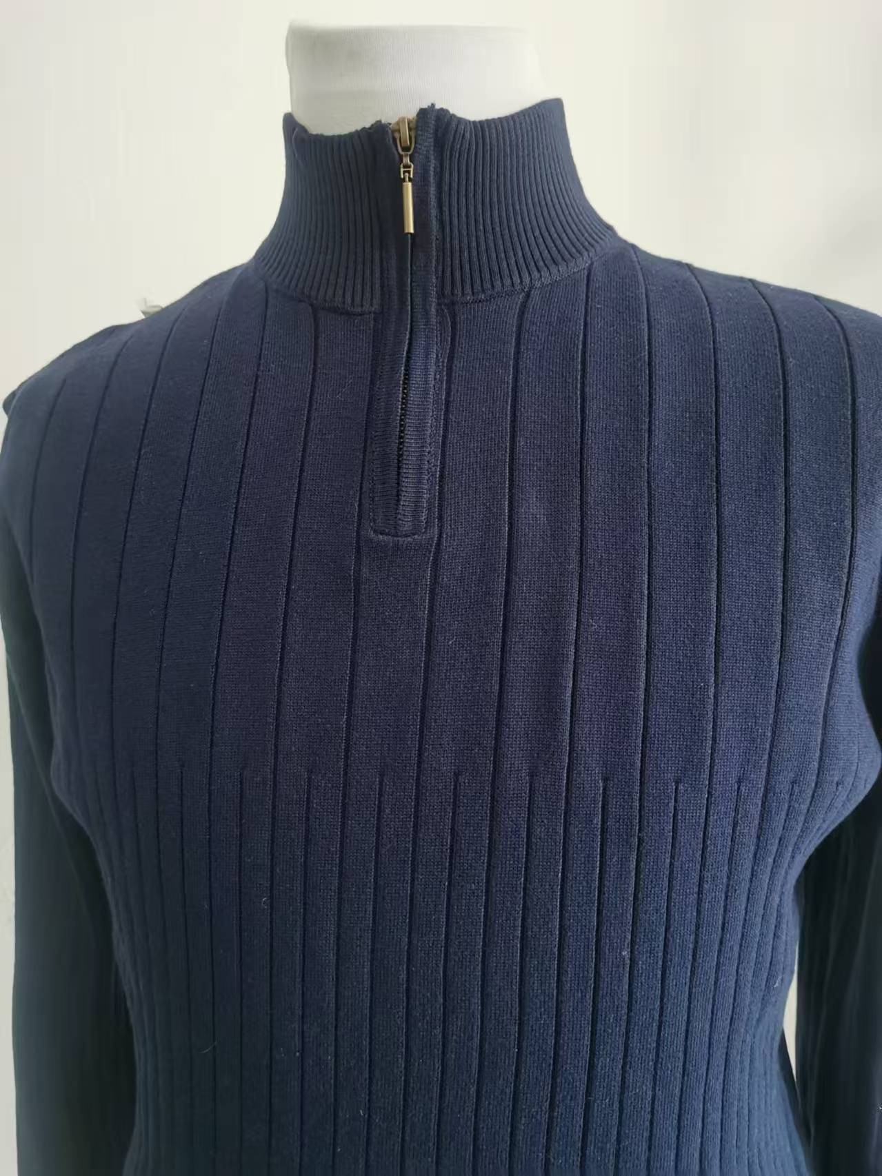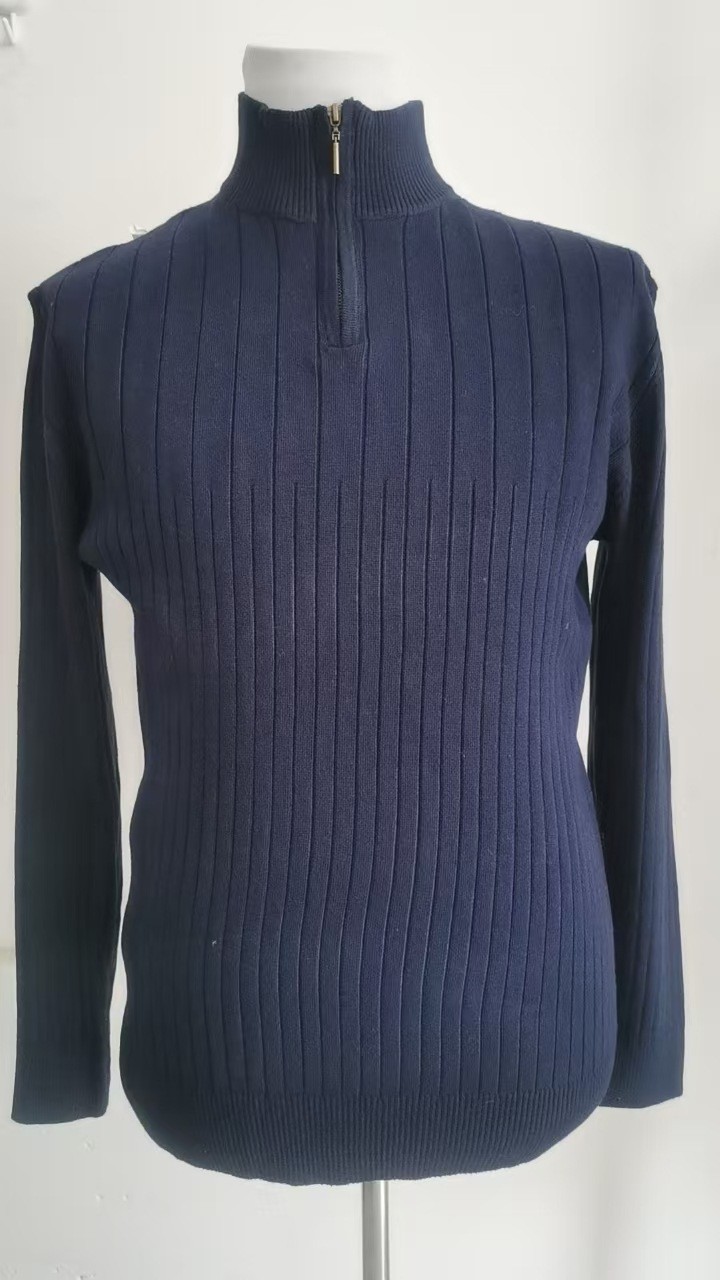 Suéter masculino primavera / otoño / invierno de manga larga cuello sólido hombre medio cremallera comercio exterior simple camisa de punto de color sólido casual