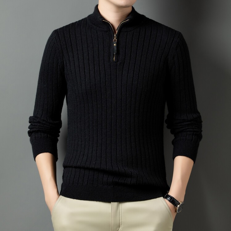 Camisas de punto transfronterizas con cremallera de cuello medio alto primavera y otoño nuevas moda masculina plumper casual suéter para hombres