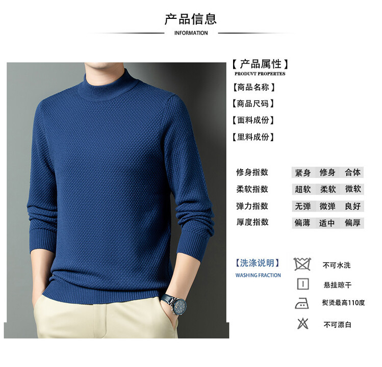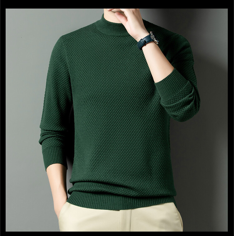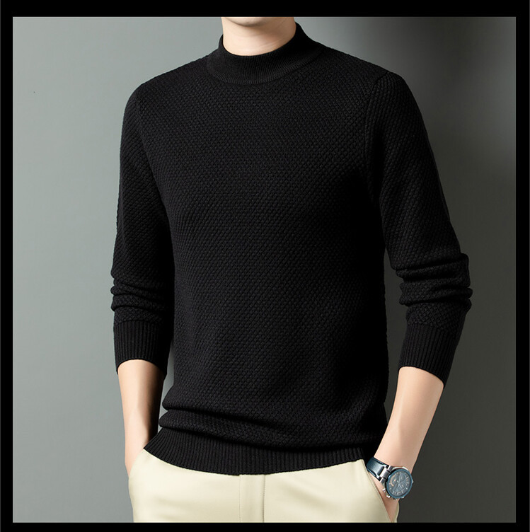 Suéter para hombre Suéter de base juvenil de invierno Suéter de manga larga de cuello medio alto cálido Suéter de todo fósforo nuevo para hombre