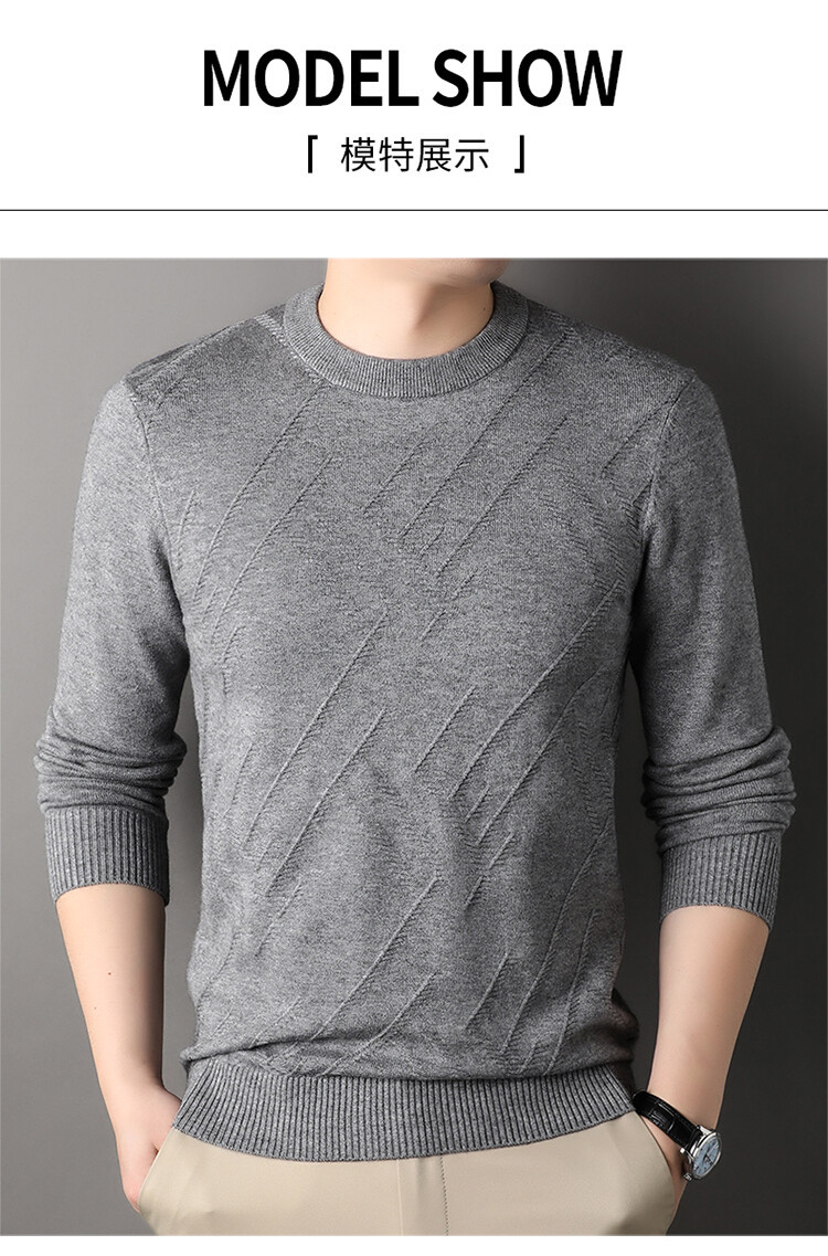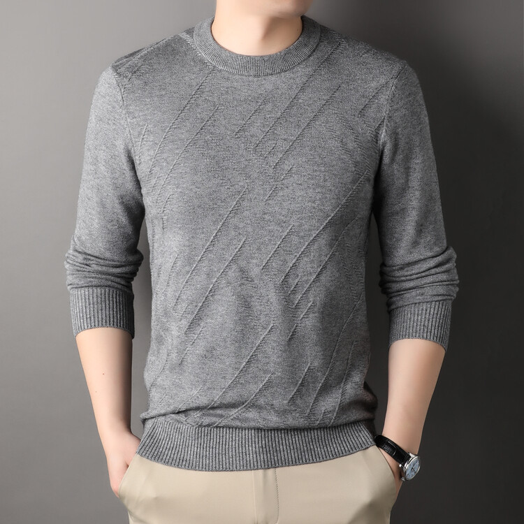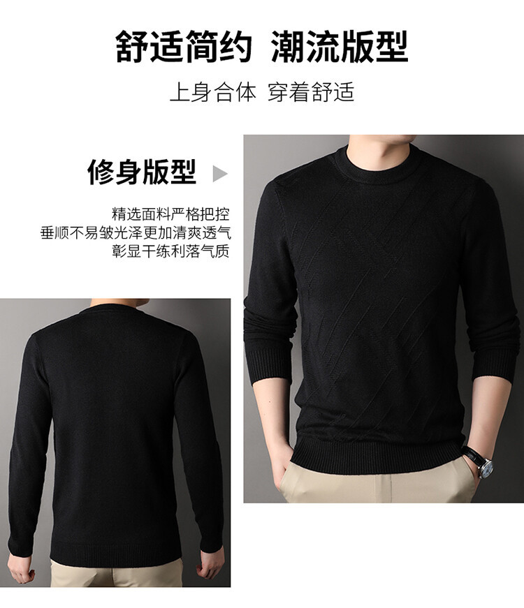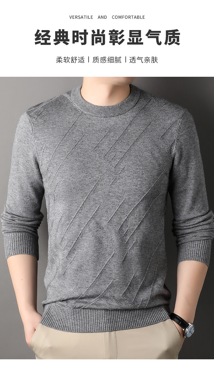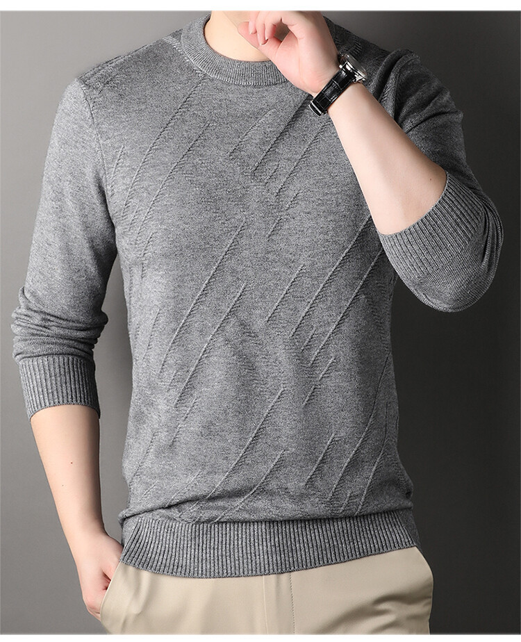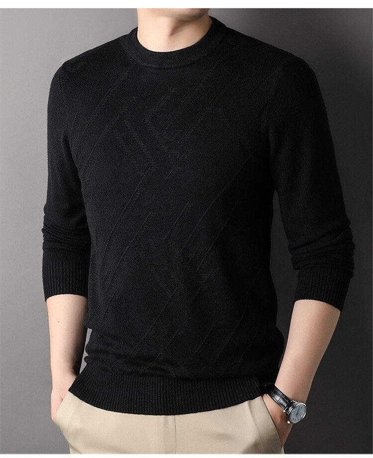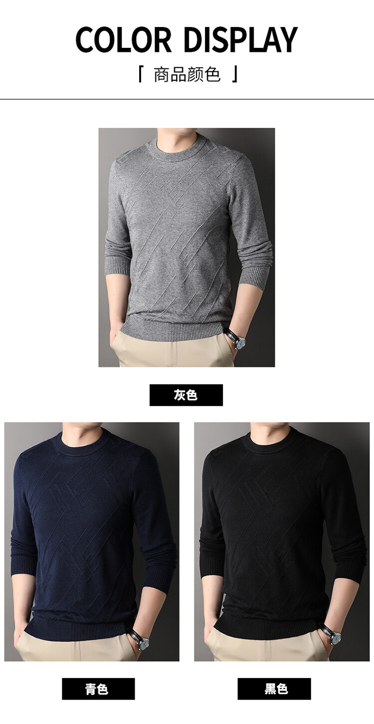 Suéter de hombre, camiseta de fondo, jersey Jacquard de color sólido, camiseta casual de mediana edad, cuello redondo, suéter casual de moda para hombres
