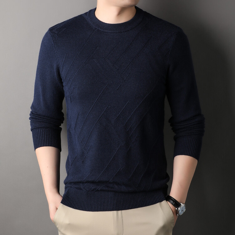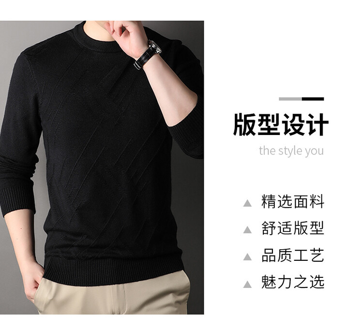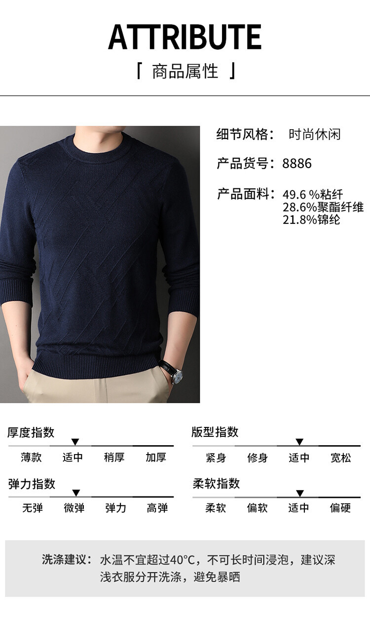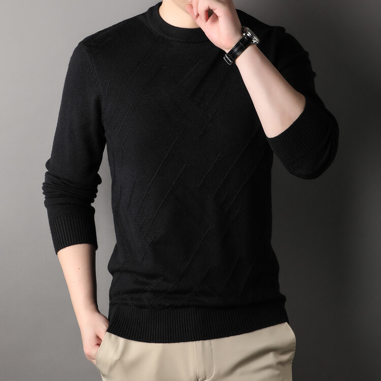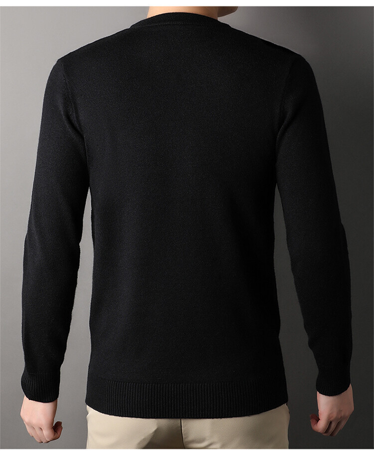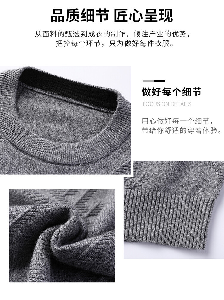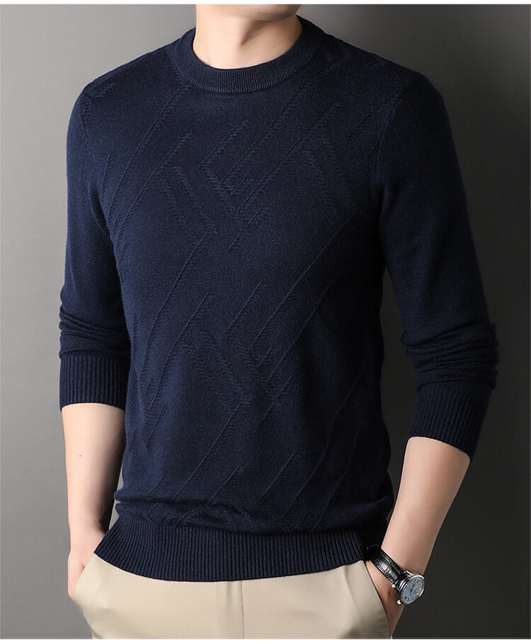 Suéter de hombre, camiseta de fondo, jersey Jacquard de color sólido, camiseta casual de mediana edad, cuello redondo, suéter casual de moda para hombres