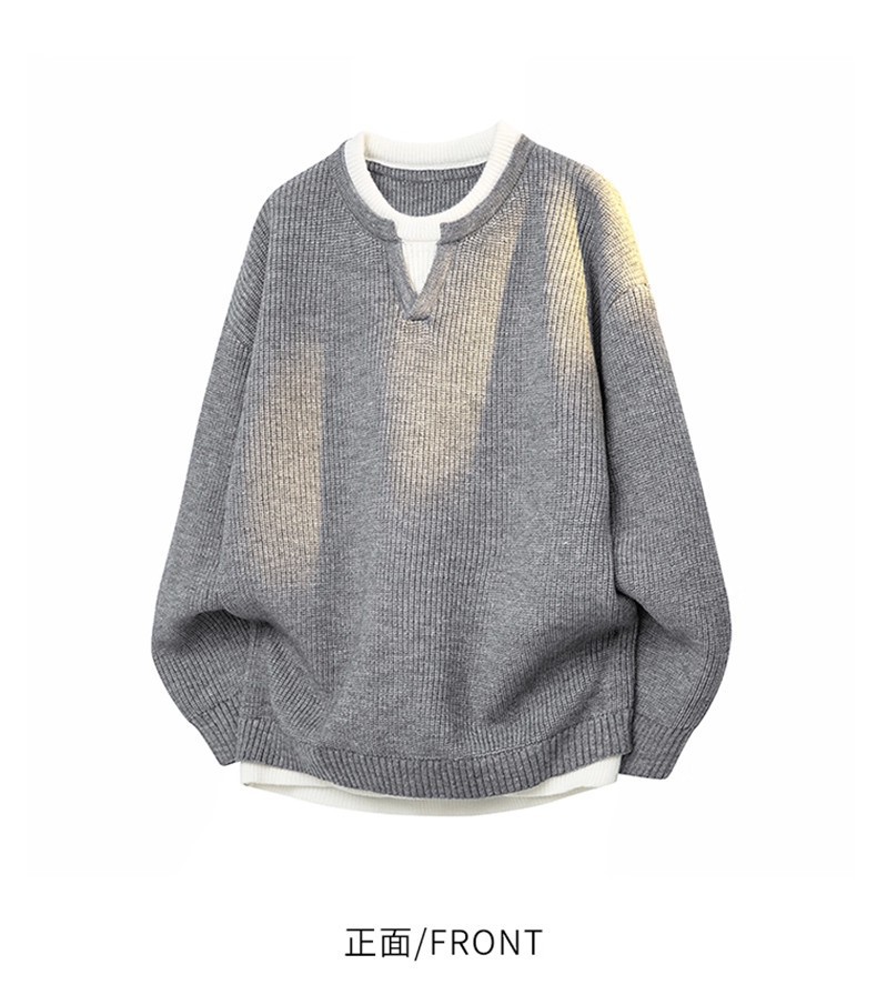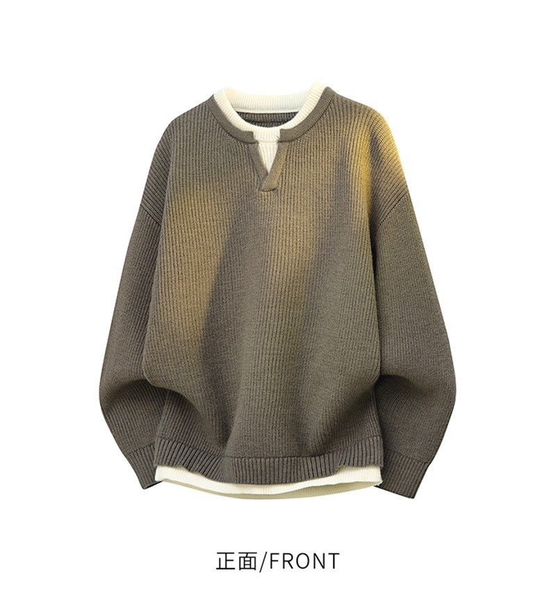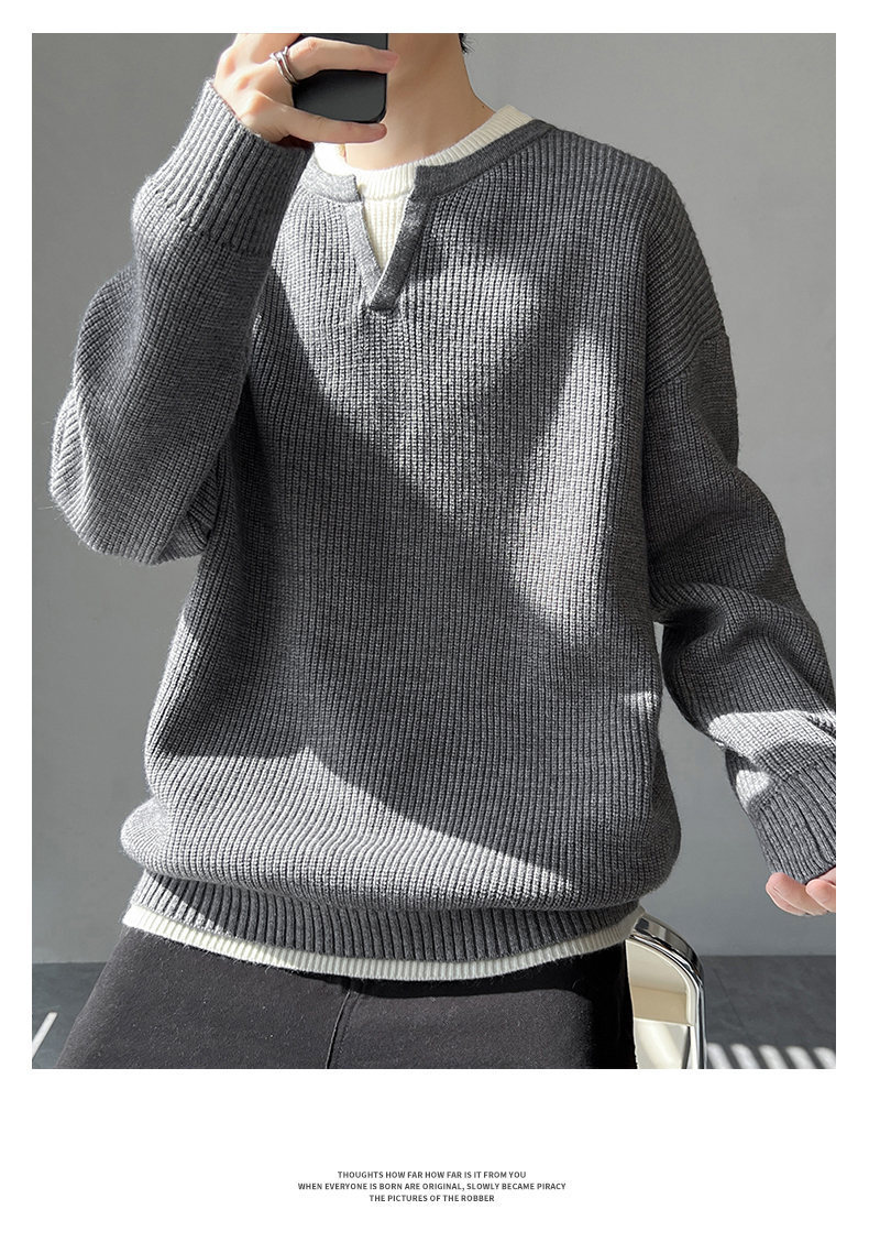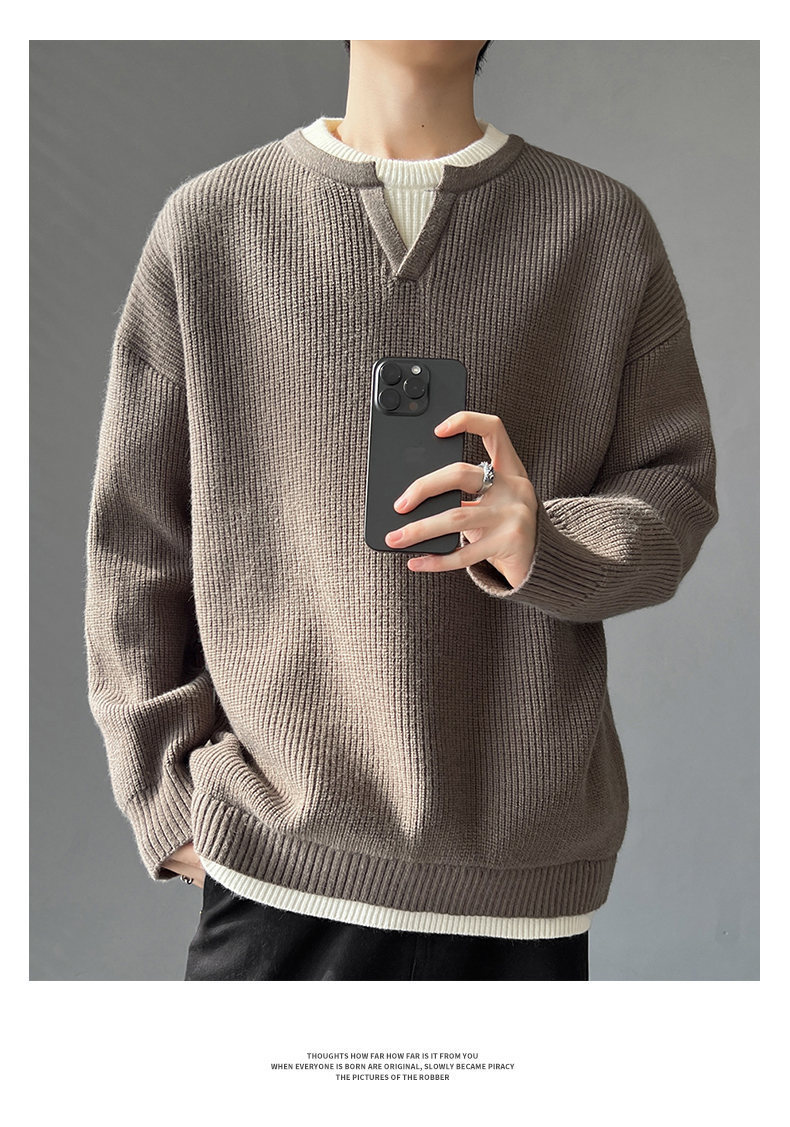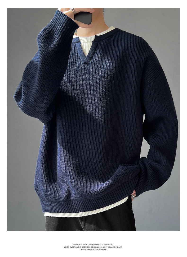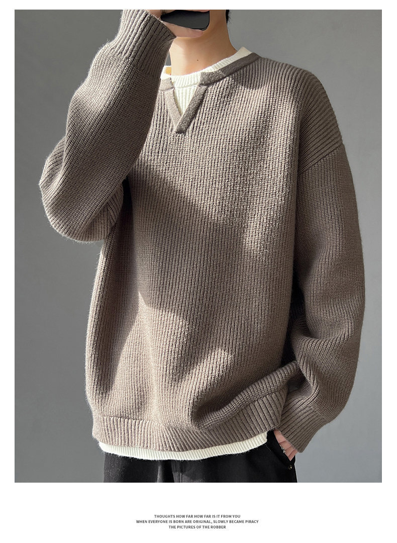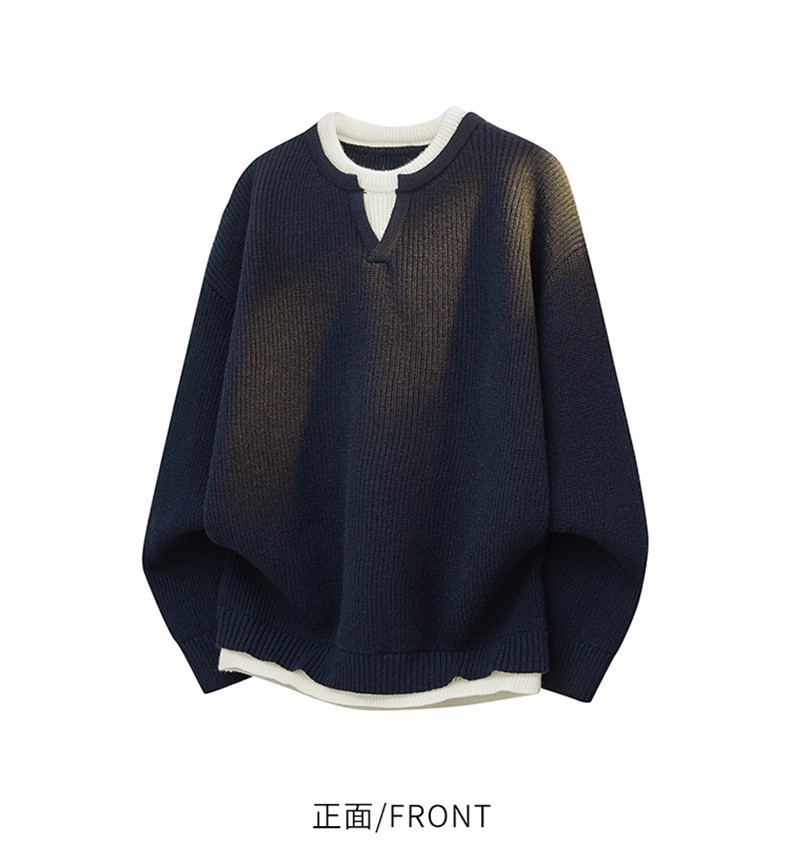 Explosiones transfronterizas de tamaño grande europeo falso dos piezas de costura camiseta de punto suéter hombre cuello V viejo viento otoño invierno fábrica al por mayor