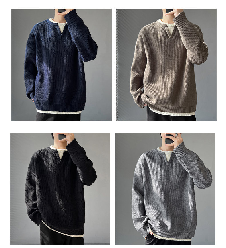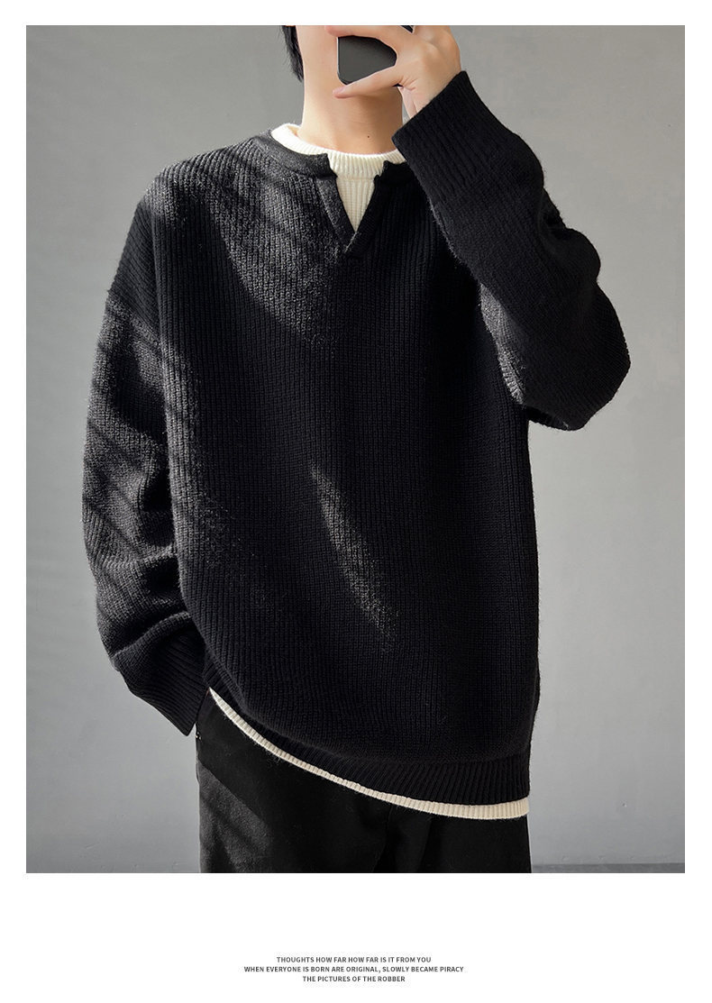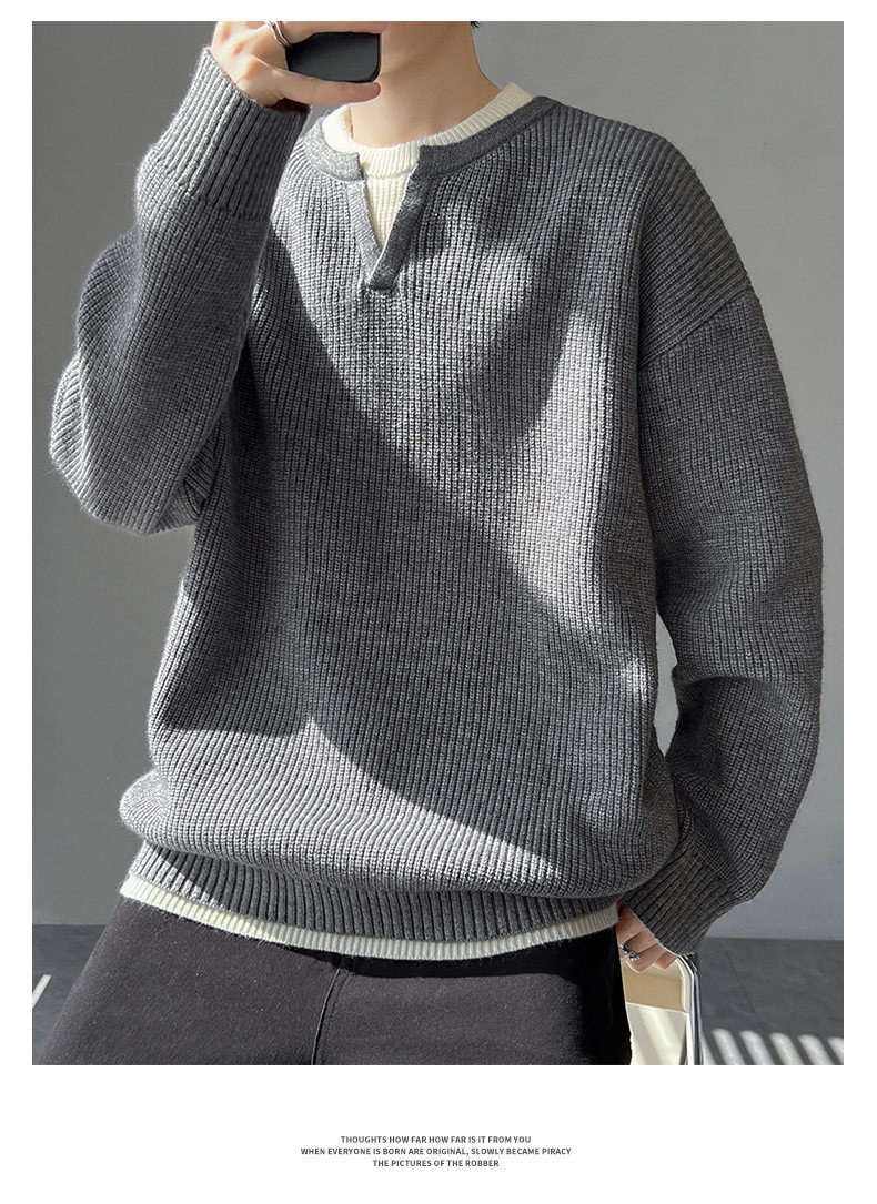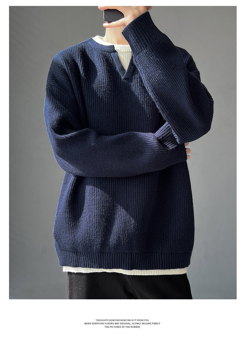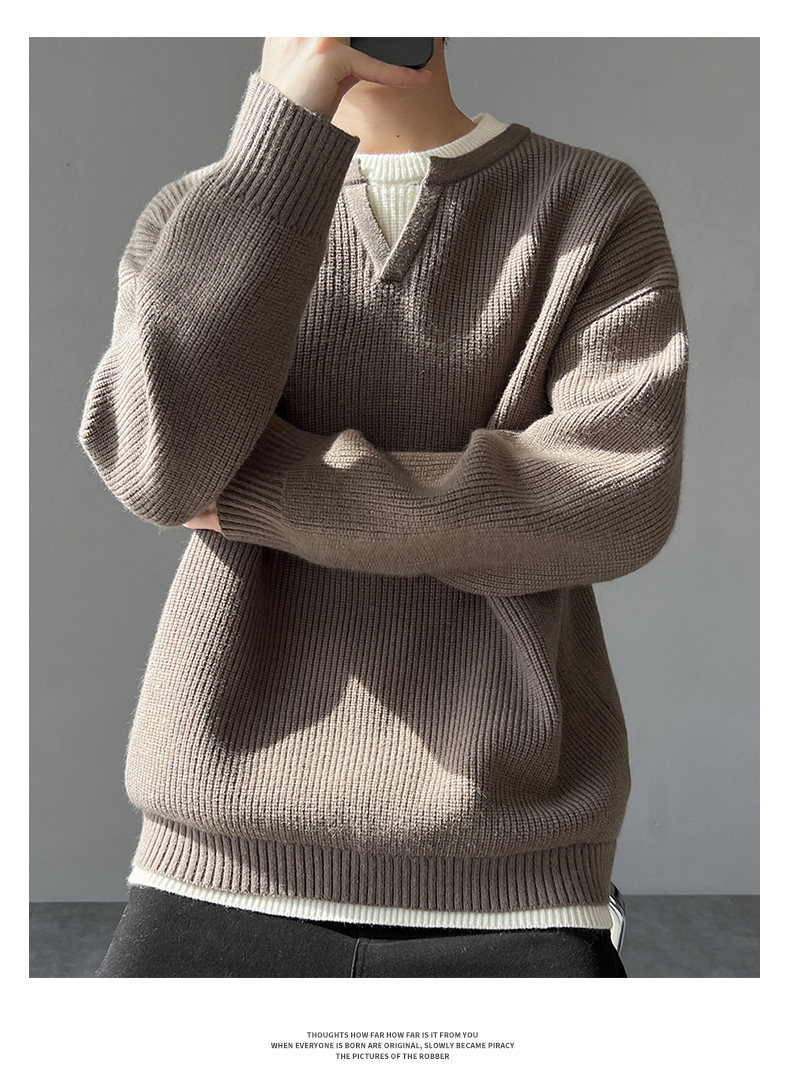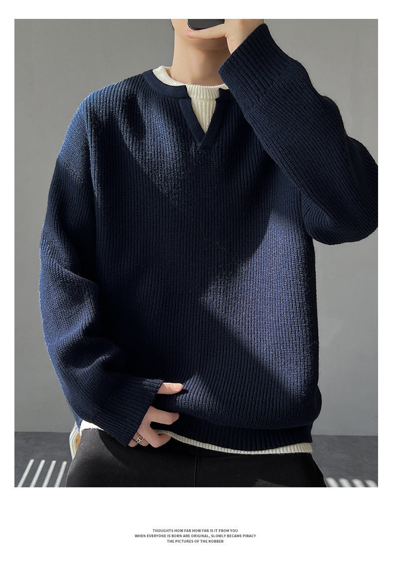 Explosiones transfronterizas de tamaño grande europeo falso dos piezas de costura camiseta de punto suéter hombre cuello V viejo viento otoño invierno fábrica al por mayor