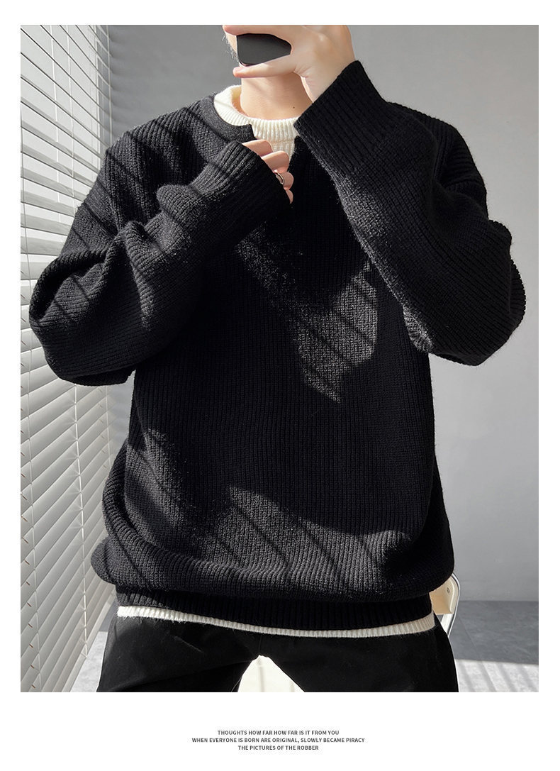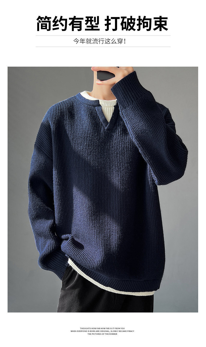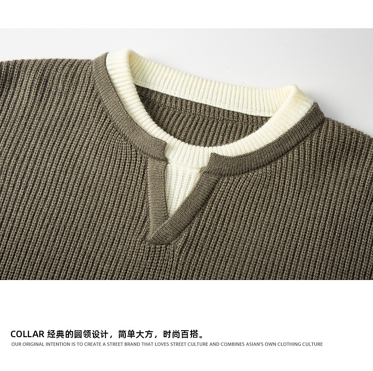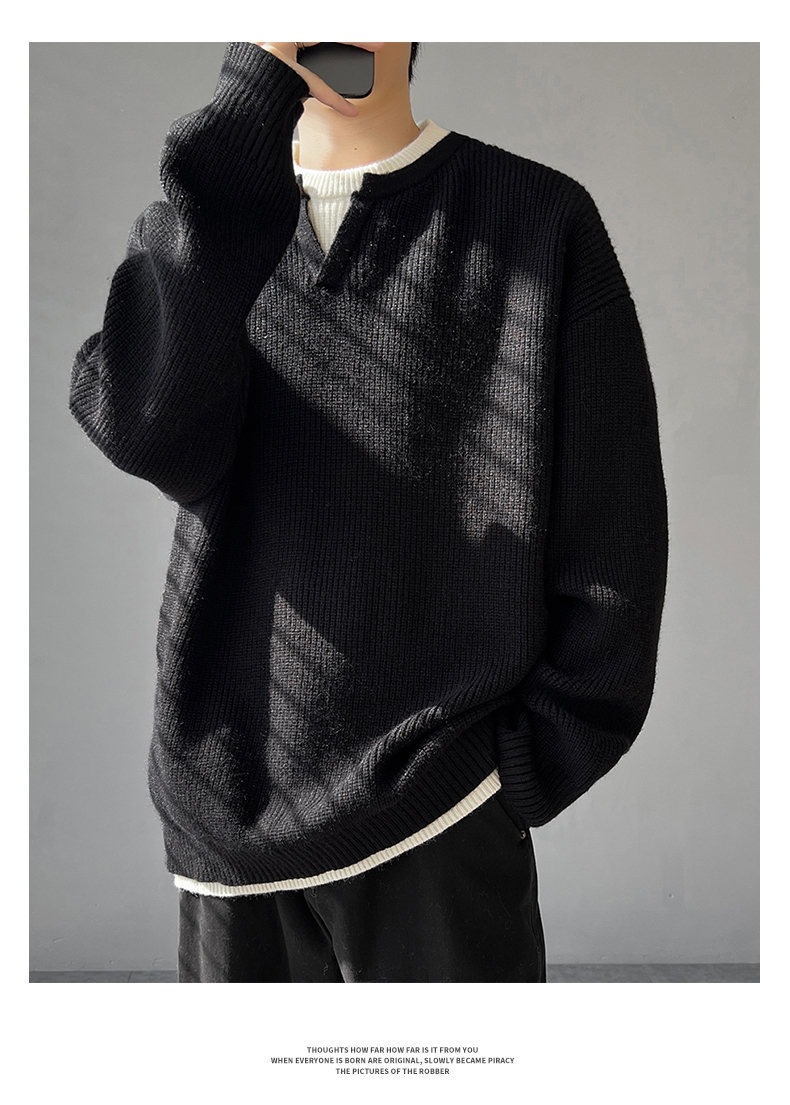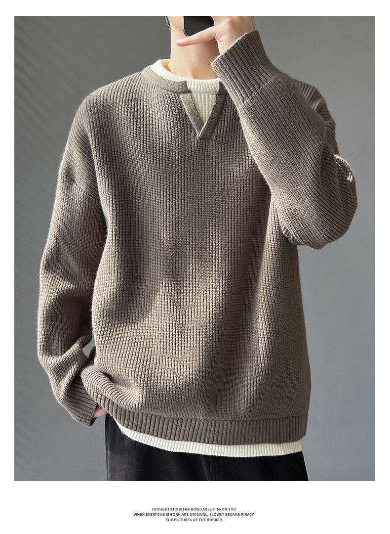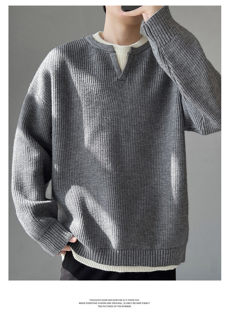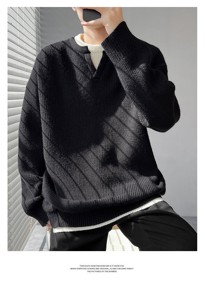 Explosiones transfronterizas de tamaño grande europeo falso dos piezas de costura camiseta de punto suéter hombre cuello V viejo viento otoño invierno fábrica al por mayor