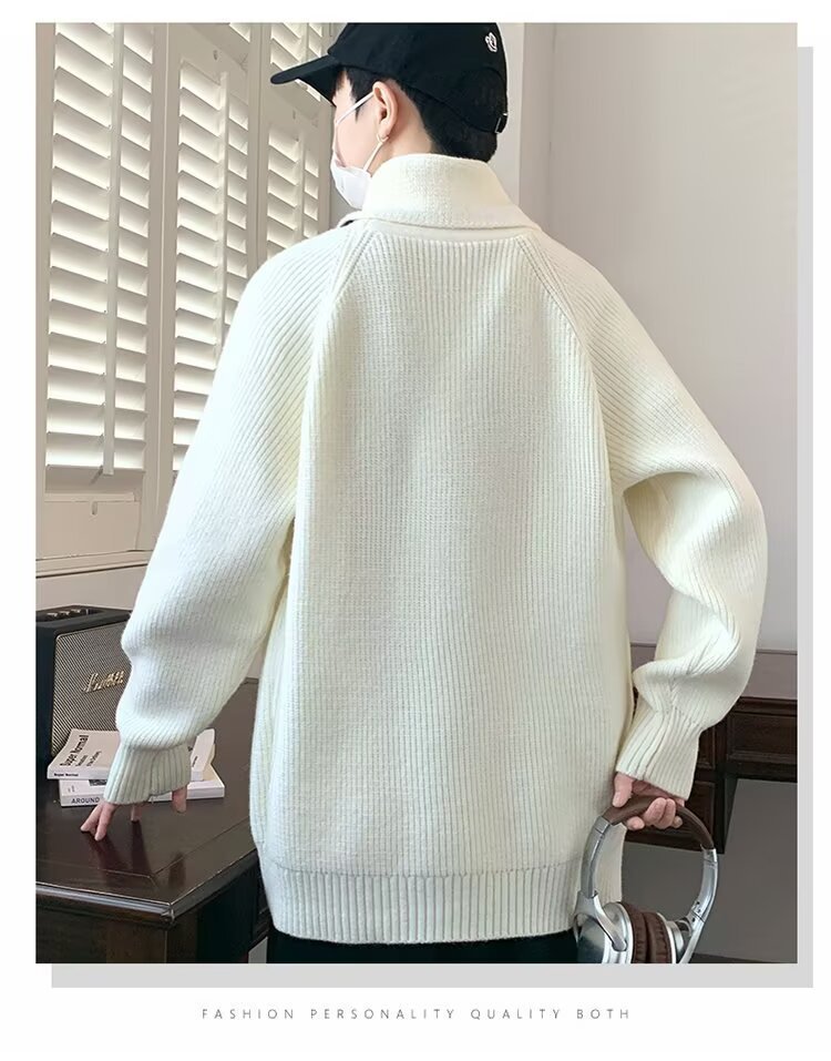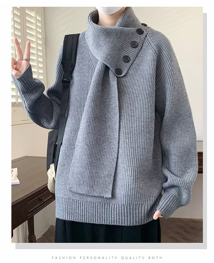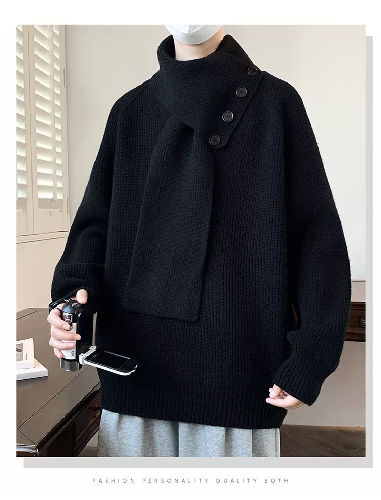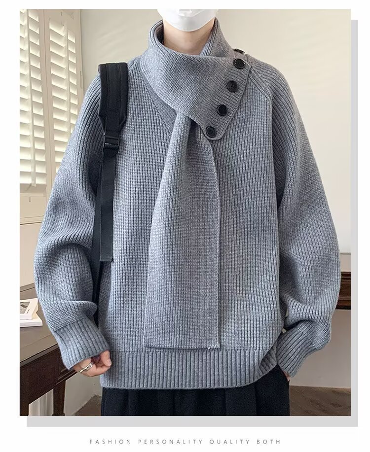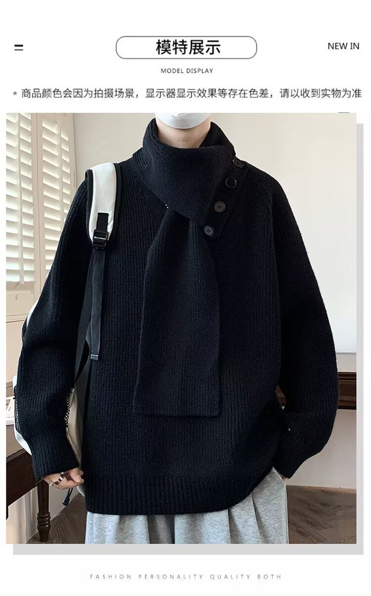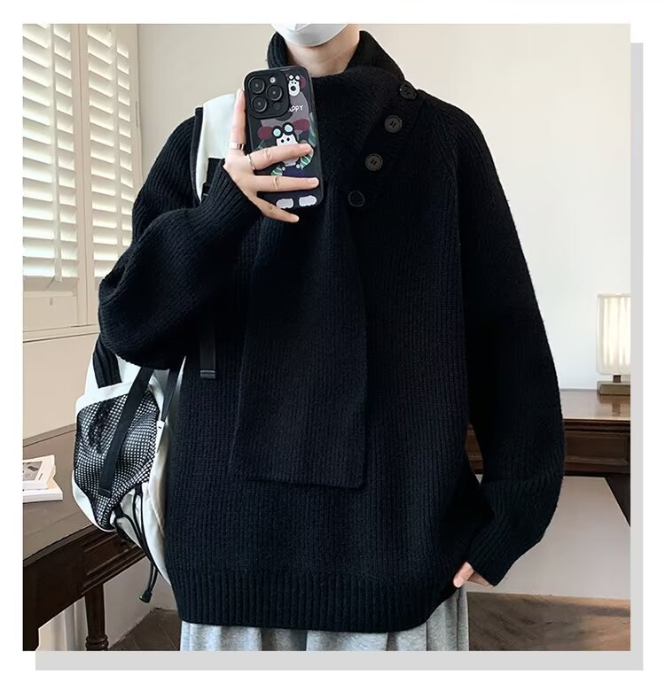 Explosiones transfronterizas de tamaño europeo de diseño de turbillo de tamaño grande sensación de camisa de punto suéter masculino botón de alta sensación otoño invierno fábrica al por mayor