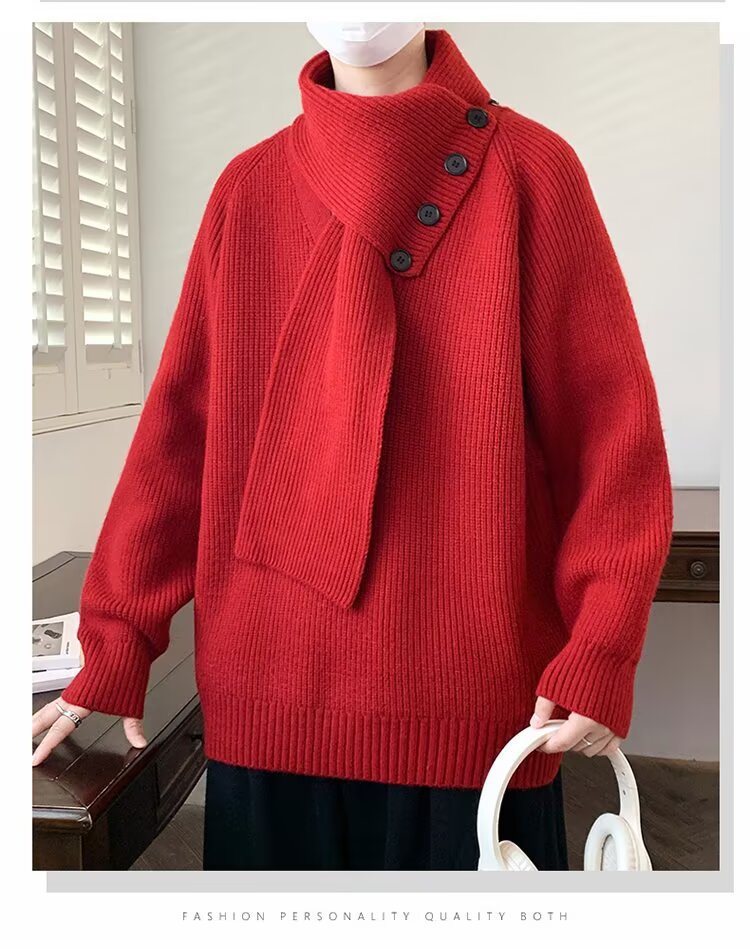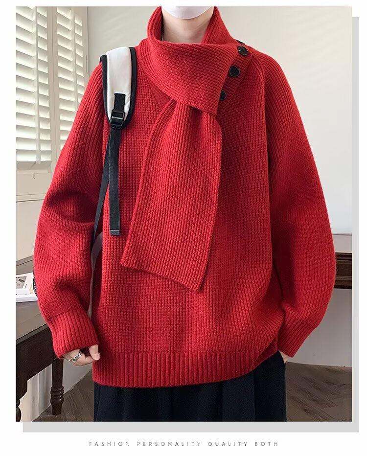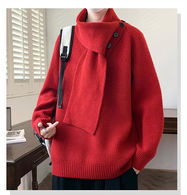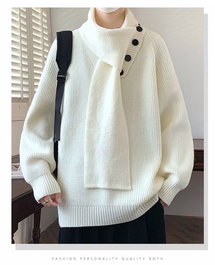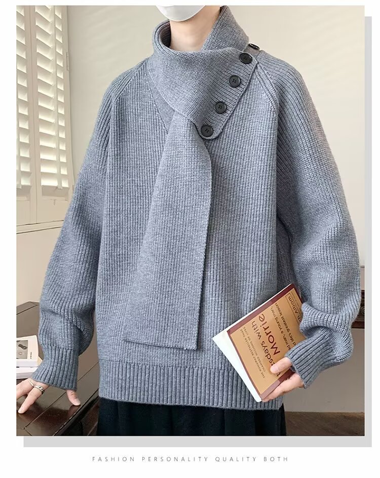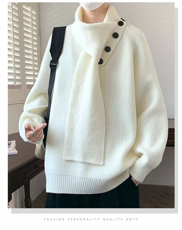 Explosiones transfronterizas de tamaño europeo de diseño de turbillo de tamaño grande sensación de camisa de punto suéter masculino botón de alta sensación otoño invierno fábrica al por mayor