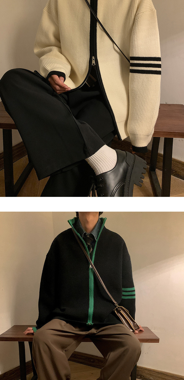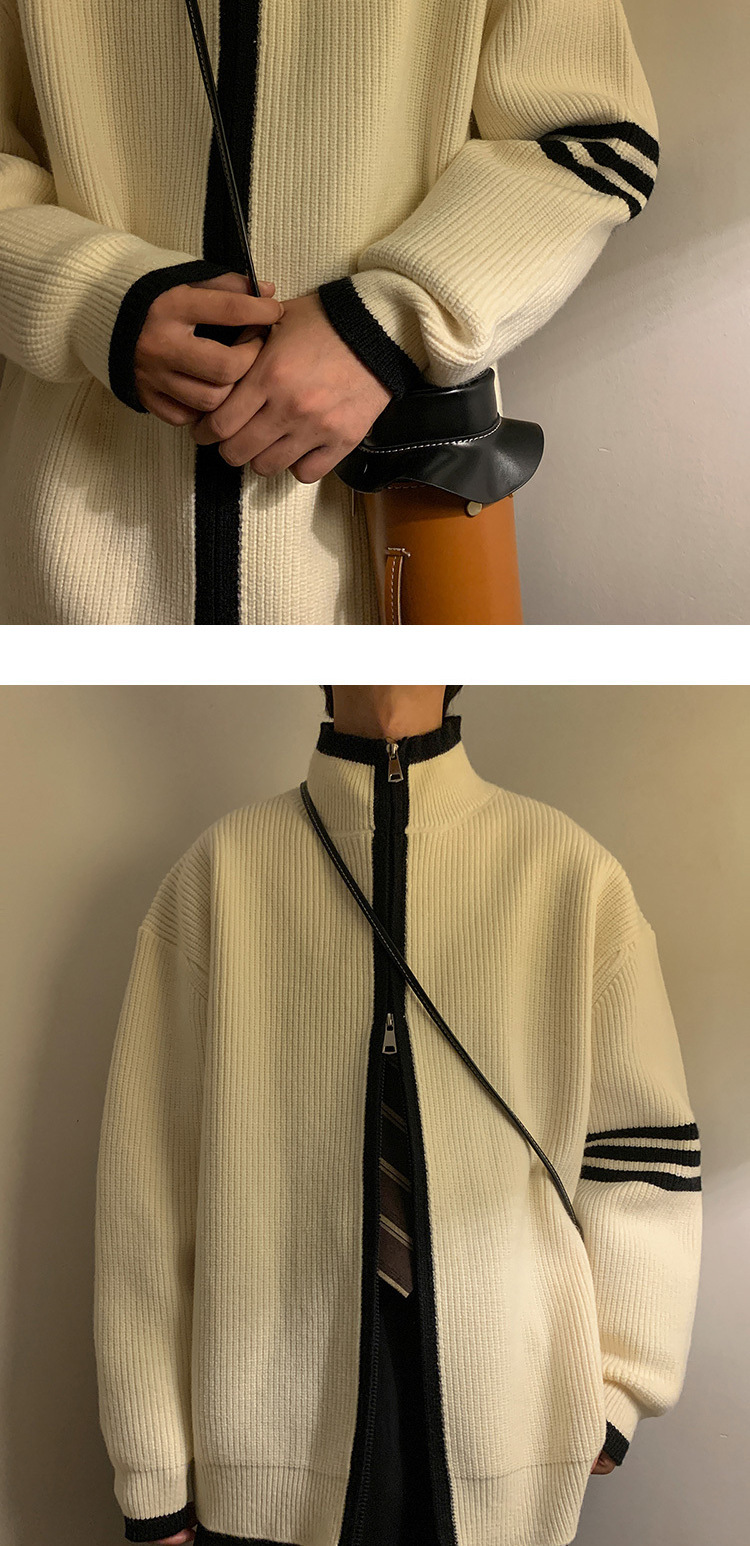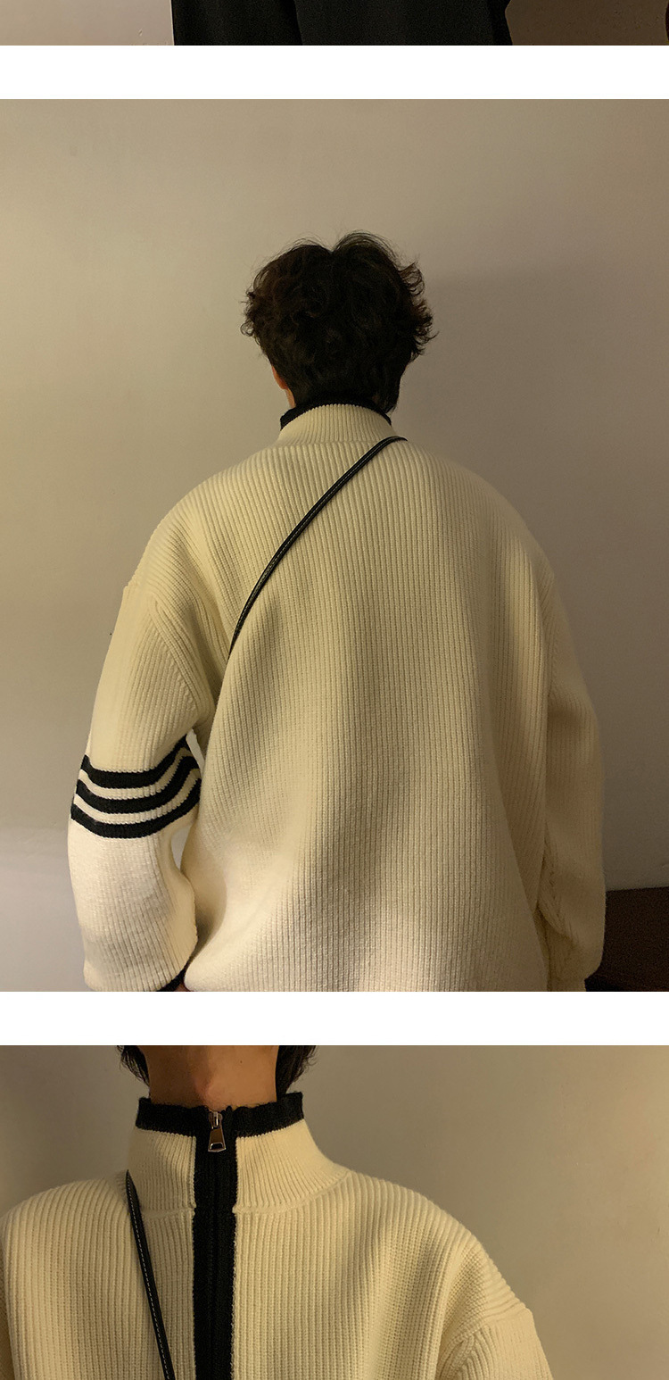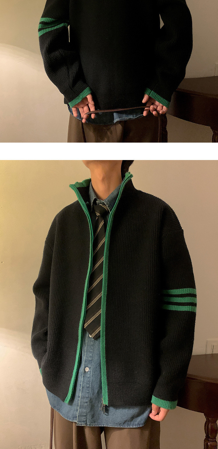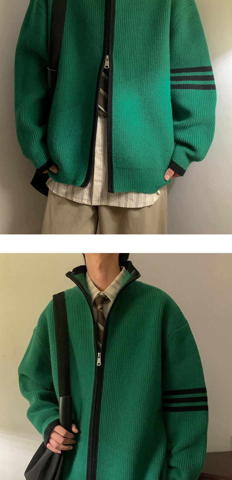 Explosiones transfronterizas de tamaño europeo de tamaño grande suéter a rayas de tres varillas de cuello masculino Cardigan chaqueta fábrica de jersey al por mayor
