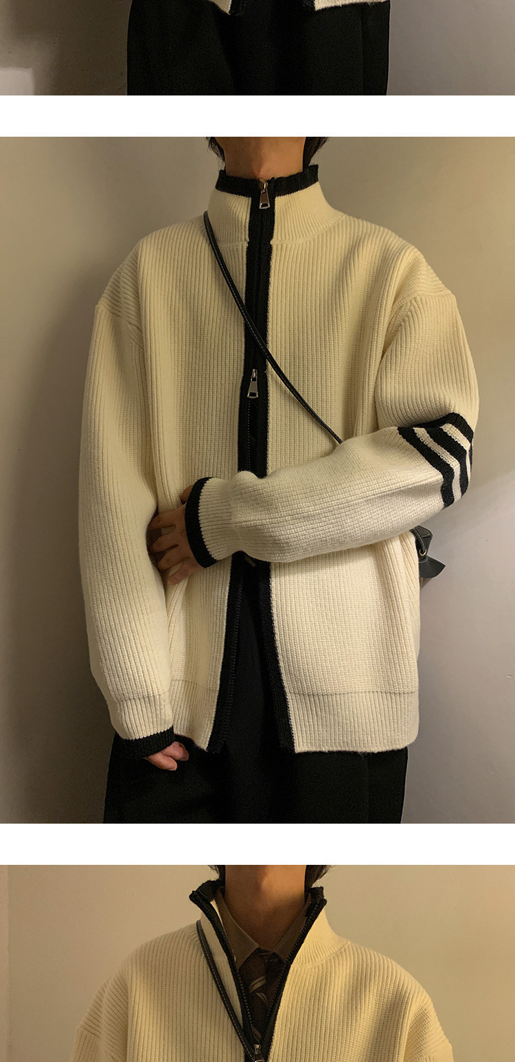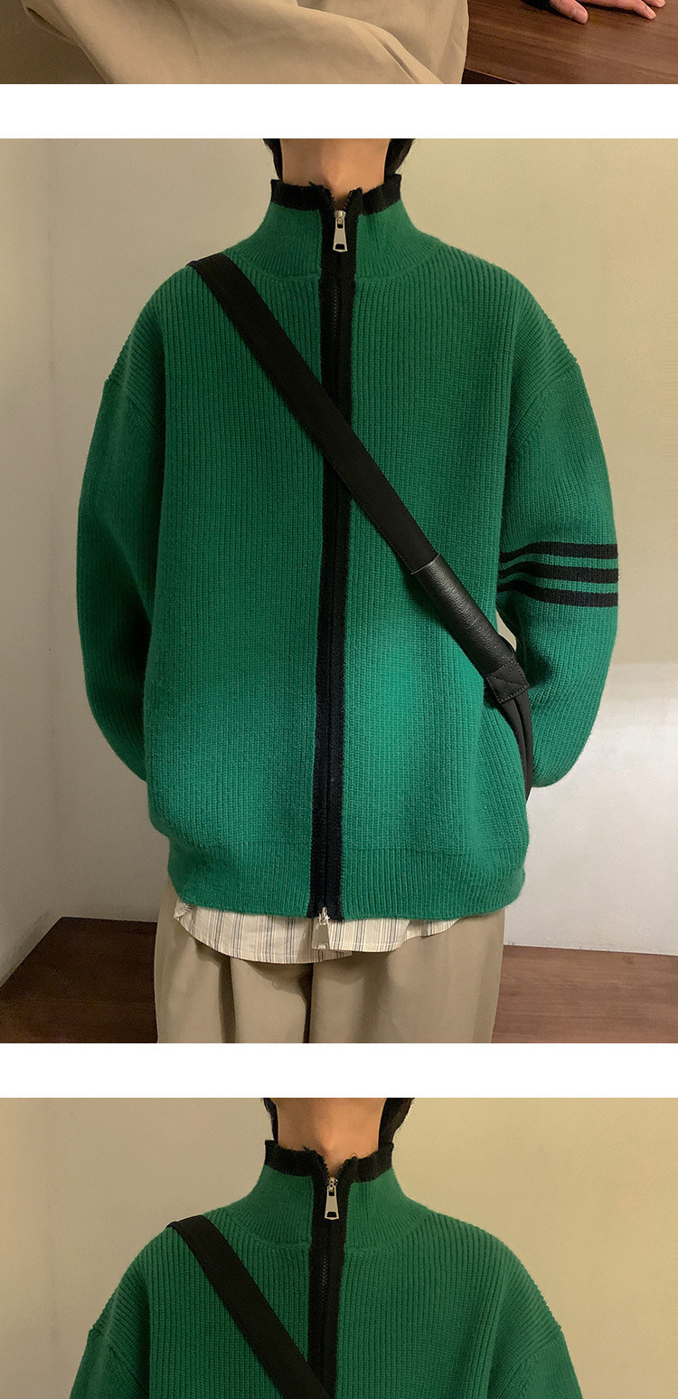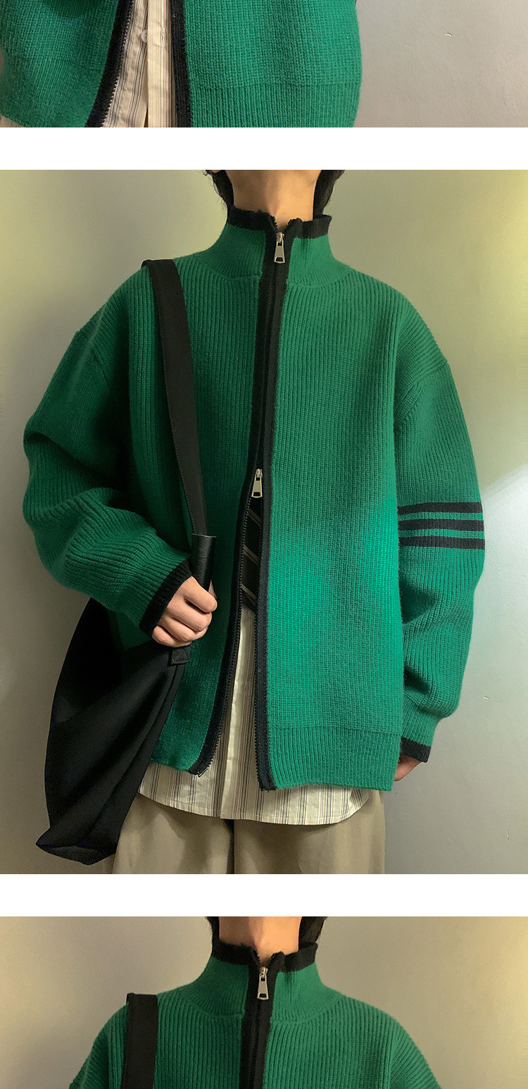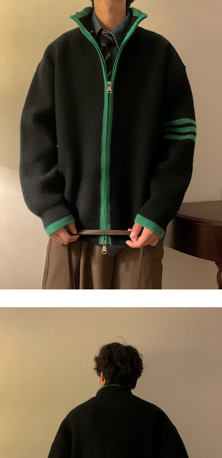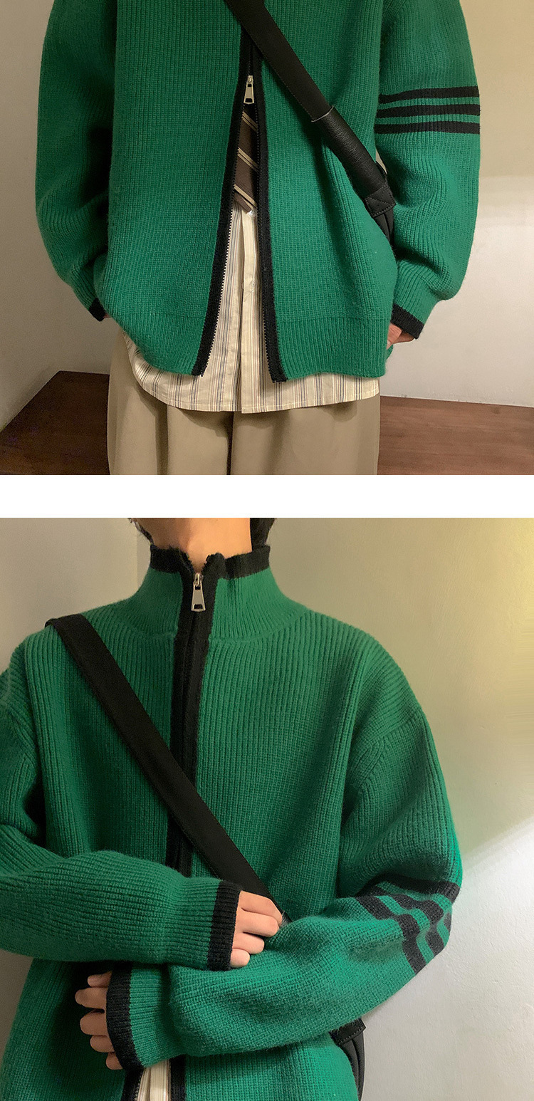 Explosiones transfronterizas de tamaño europeo de tamaño grande suéter a rayas de tres varillas de cuello masculino Cardigan chaqueta fábrica de jersey al por mayor