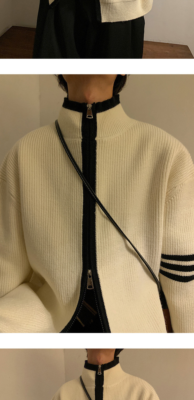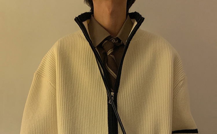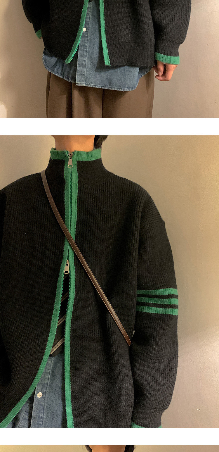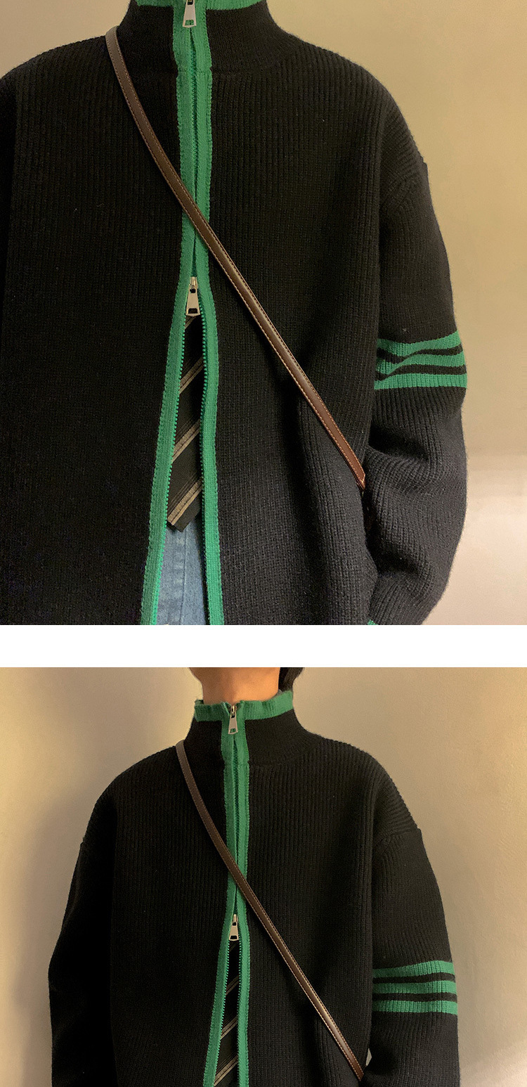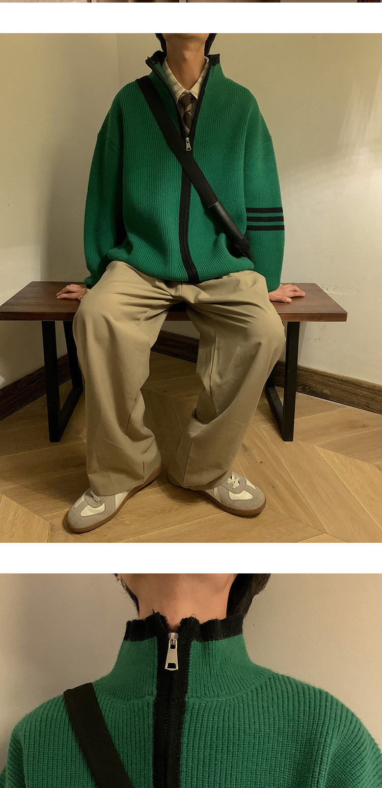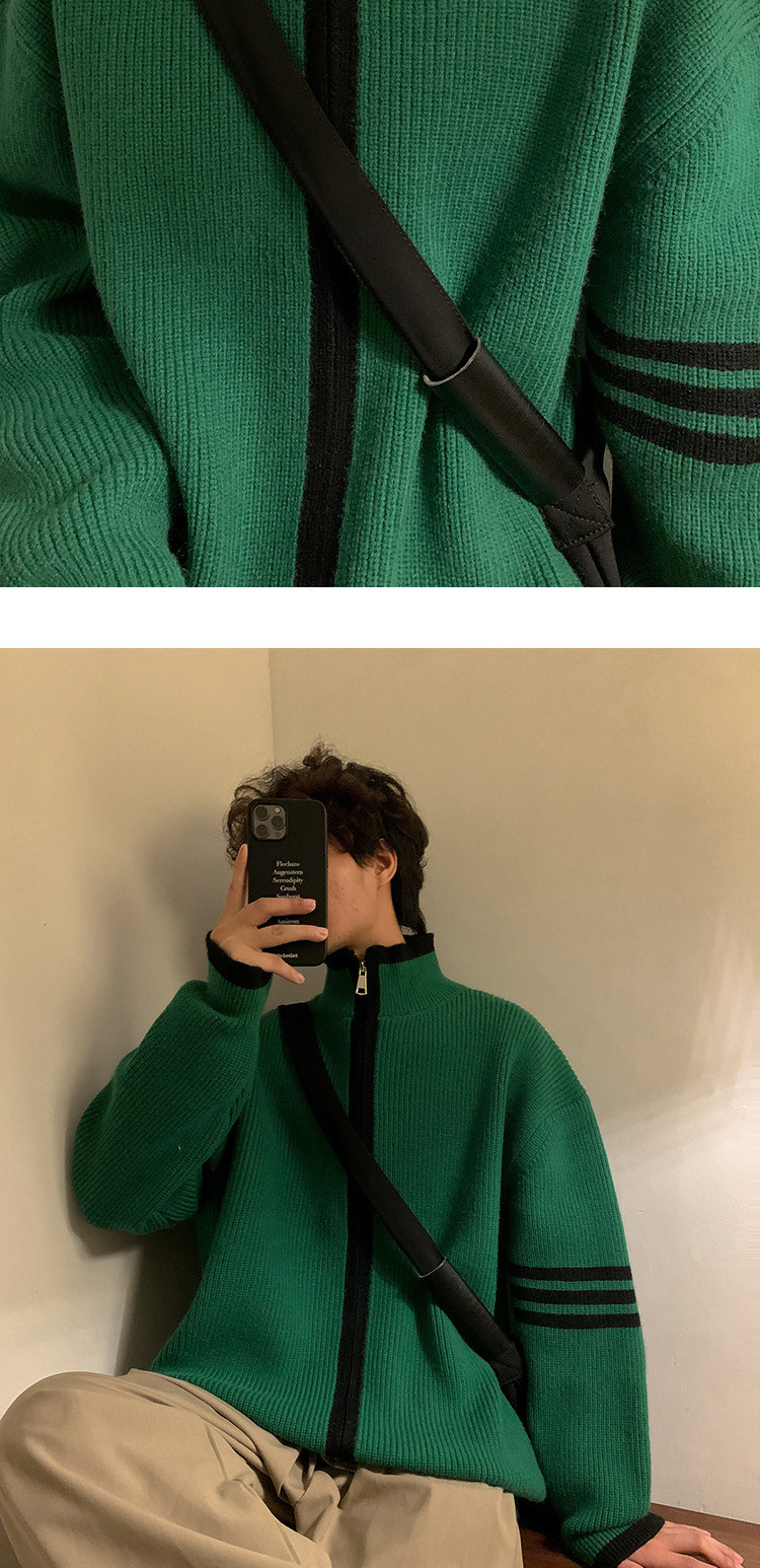 Explosiones transfronterizas de tamaño europeo de tamaño grande suéter a rayas de tres varillas de cuello masculino Cardigan chaqueta fábrica de jersey al por mayor