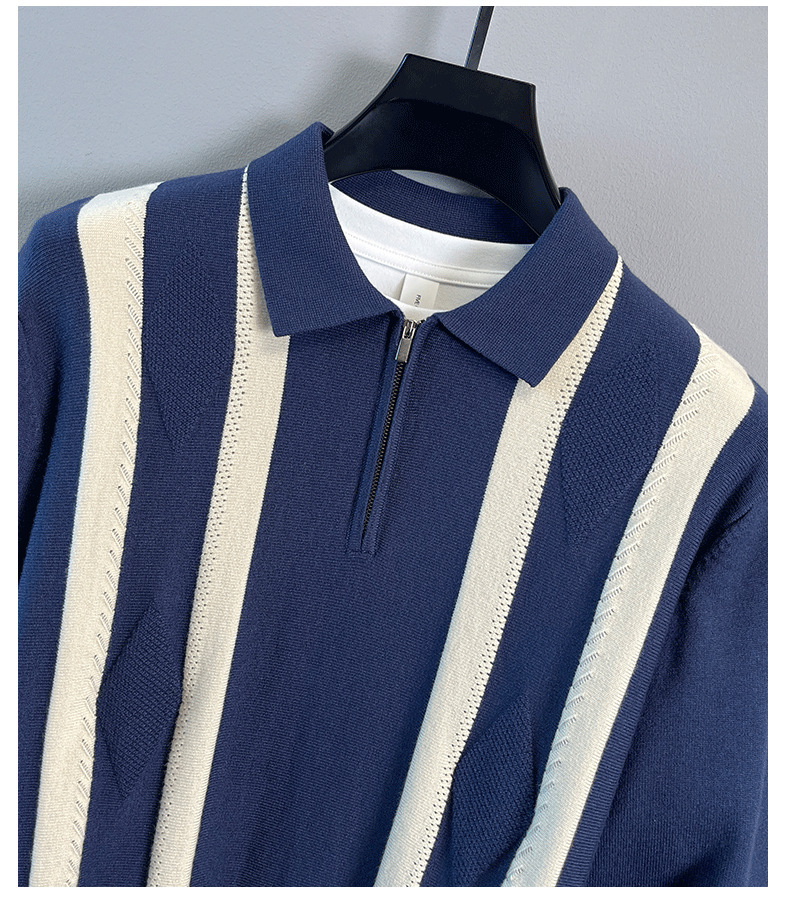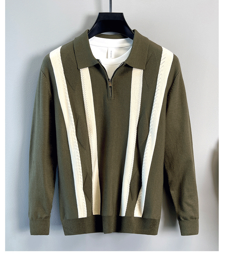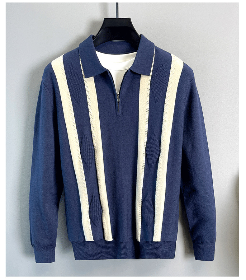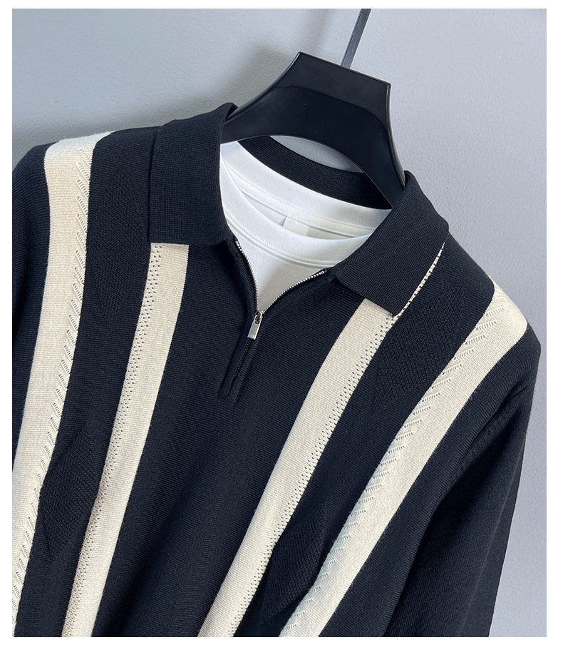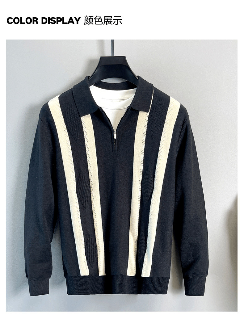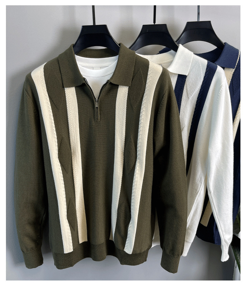 Explosiones transfronterizas de tamaño grande europeo polo camiseta con solapa camiseta de punto suéter hombre medio cremallera rayas otoño y invierno fábrica al por mayor