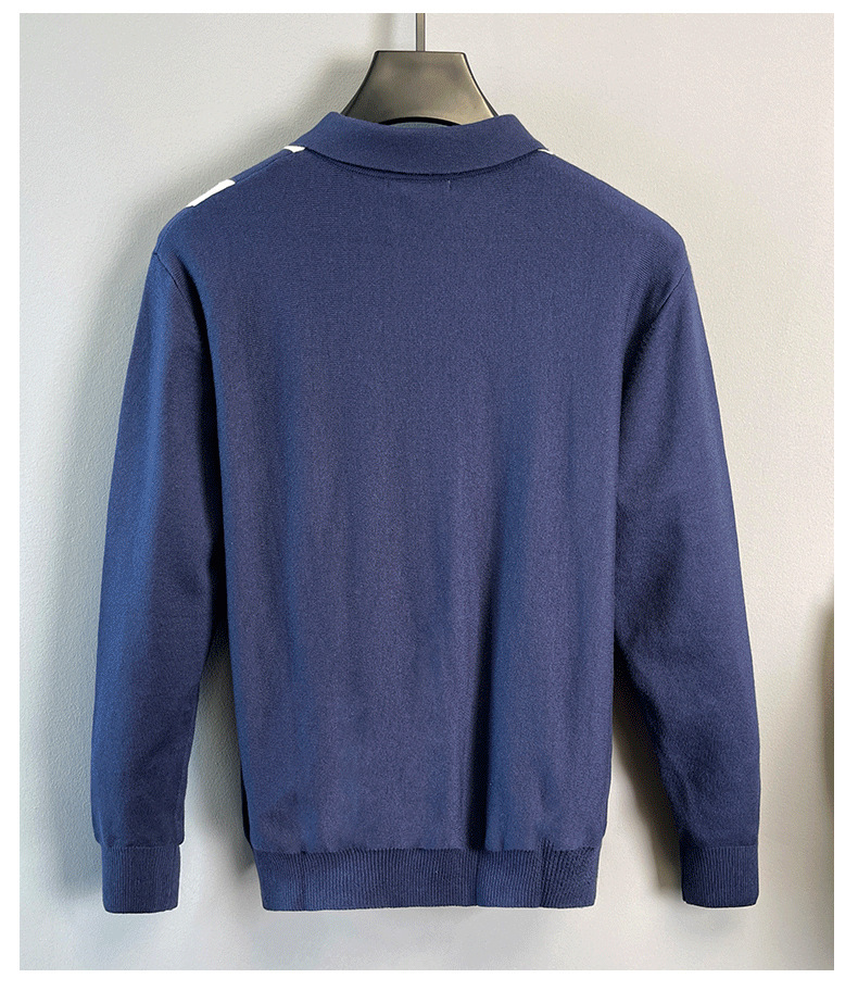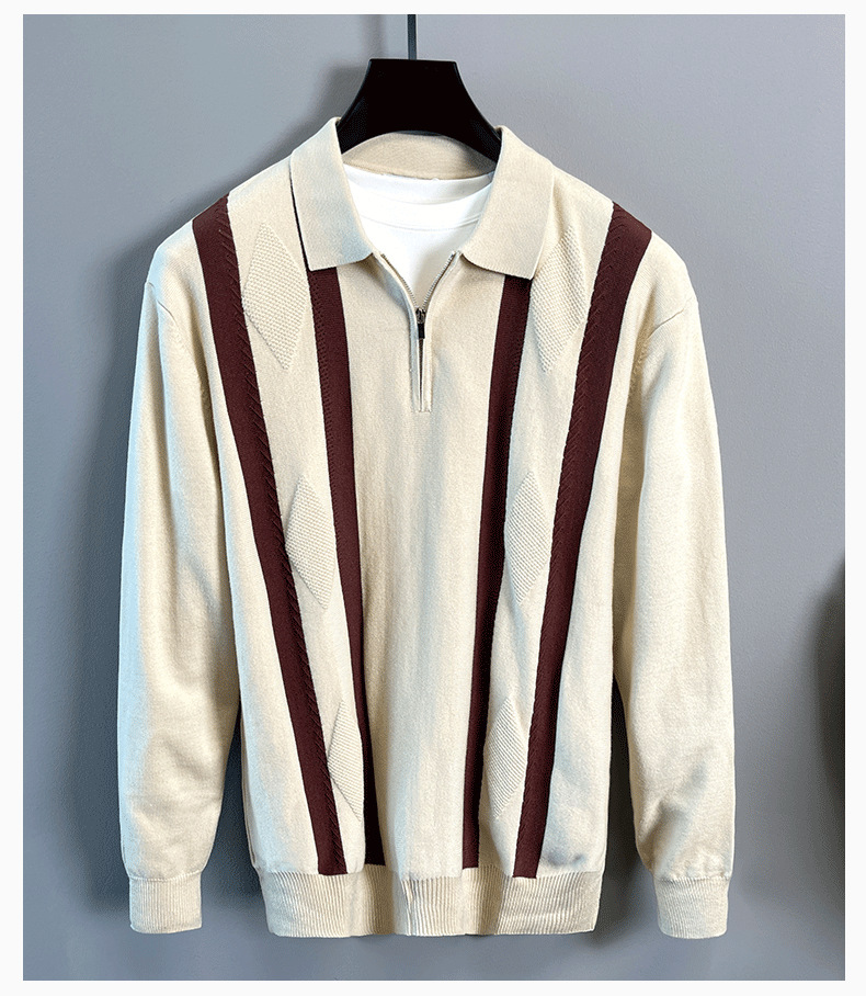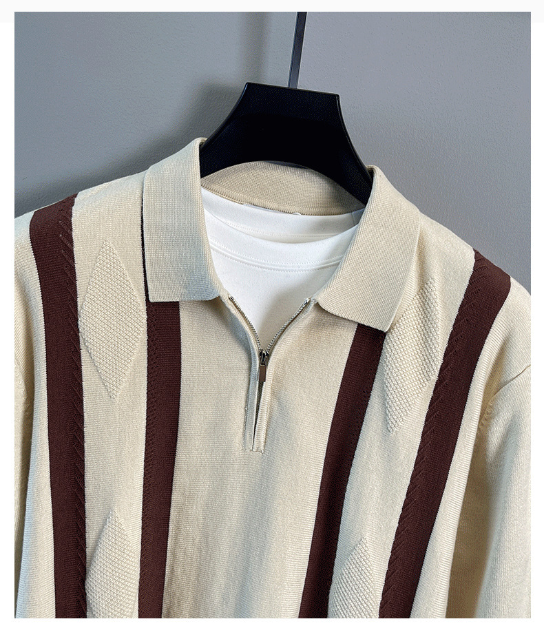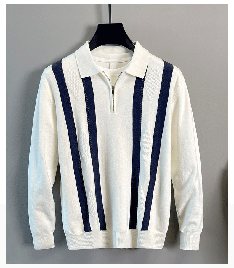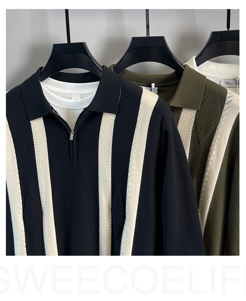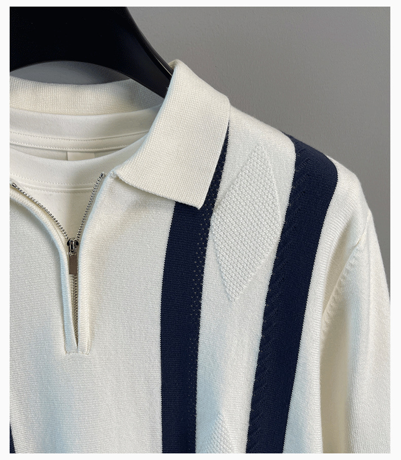 Explosiones transfronterizas de tamaño grande europeo polo camiseta con solapa camiseta de punto suéter hombre medio cremallera rayas otoño y invierno fábrica al por mayor