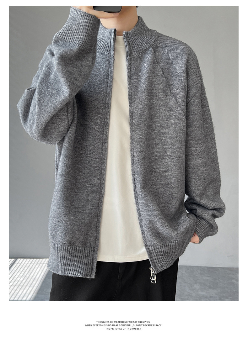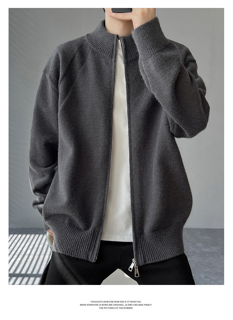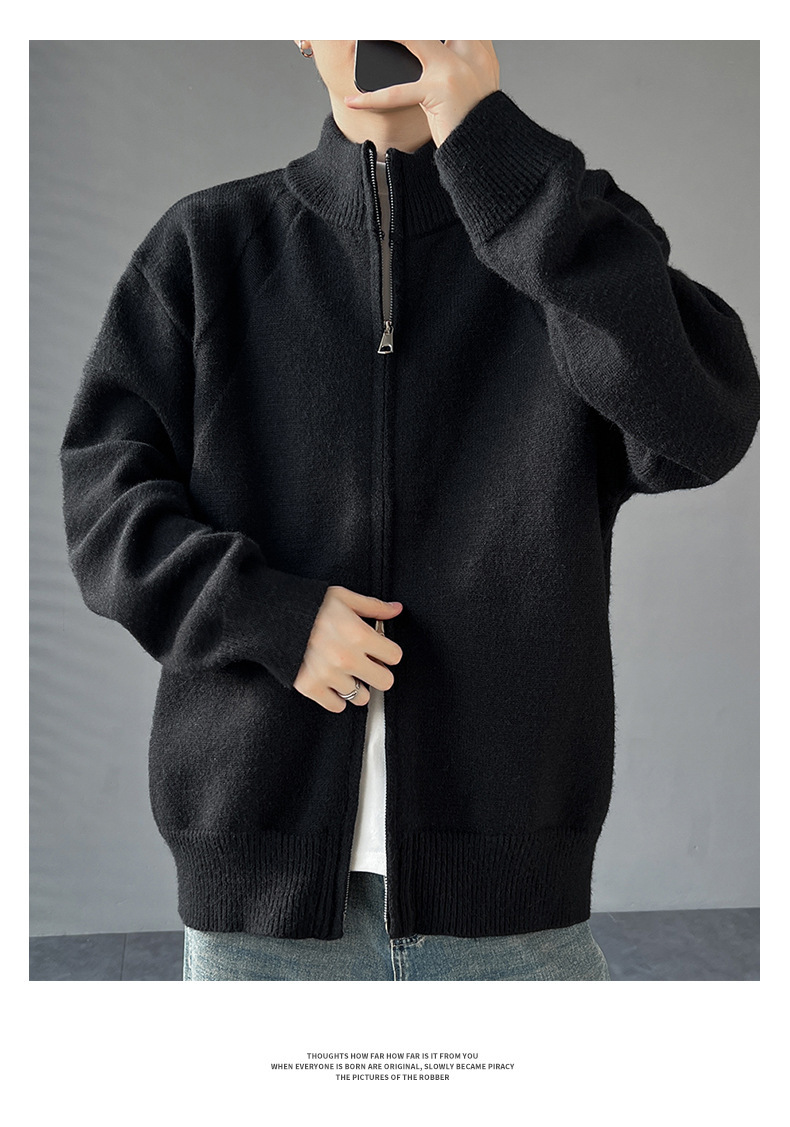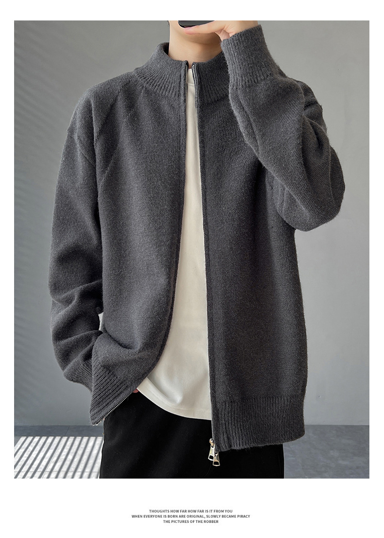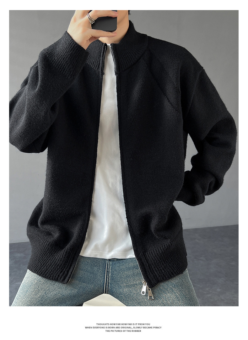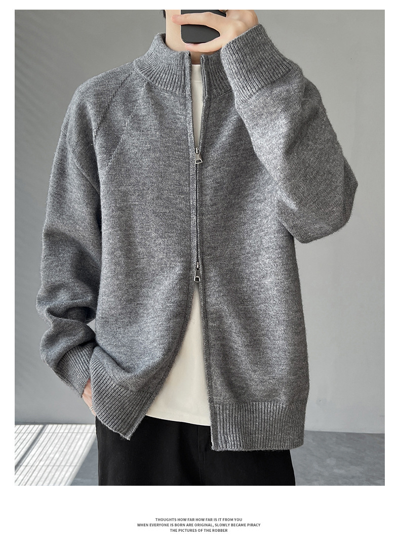 Explosiones transfronterizas de tamaño europeo de gran tamaño de cuello de pie cardigán chaqueta suéter de punto suéter de hombre doble cremallera fábrica al por mayor