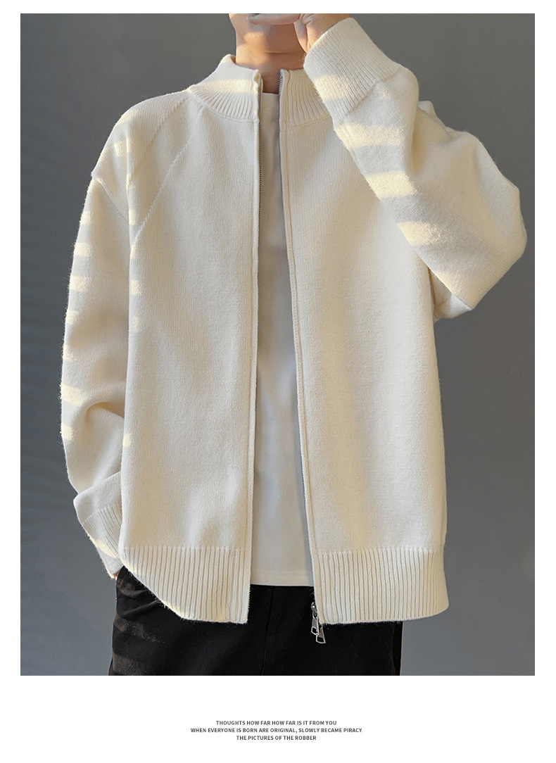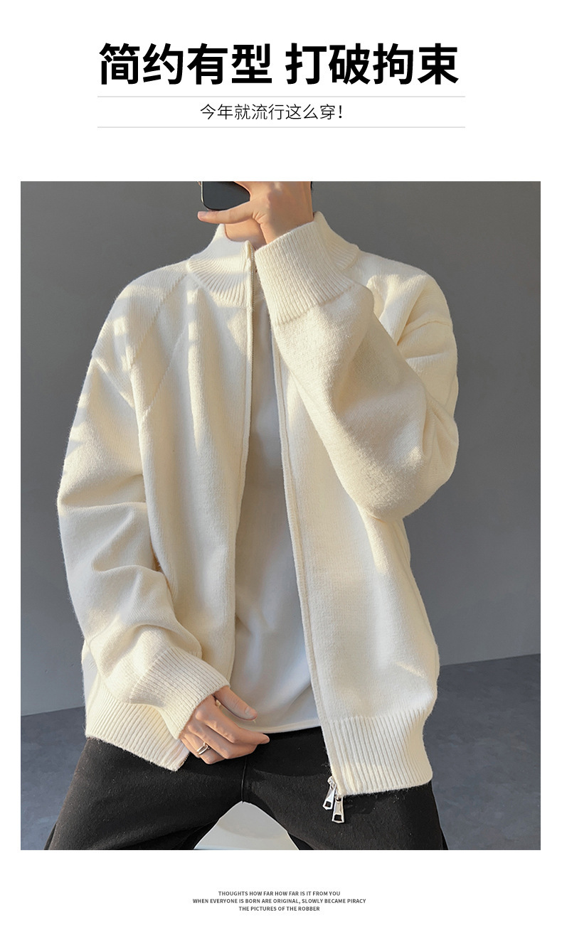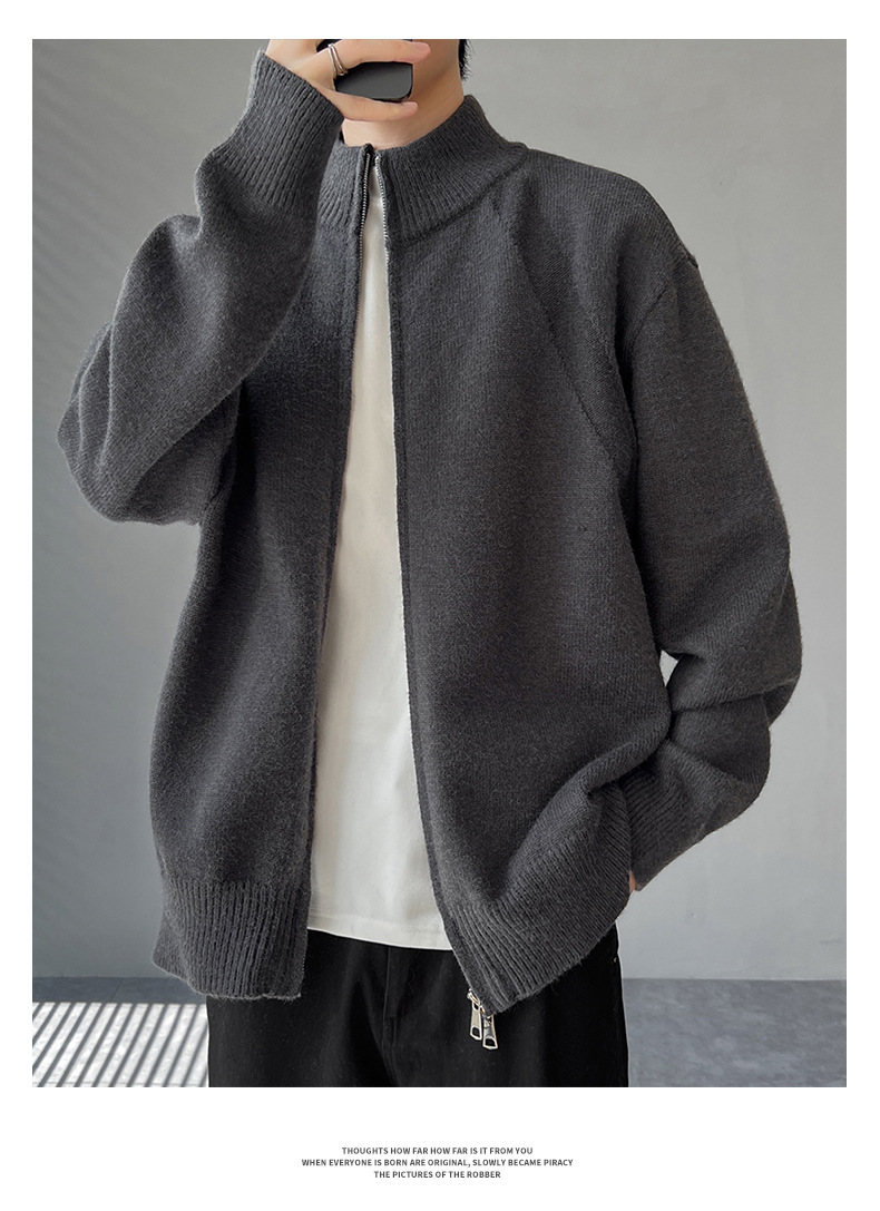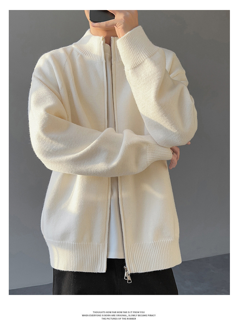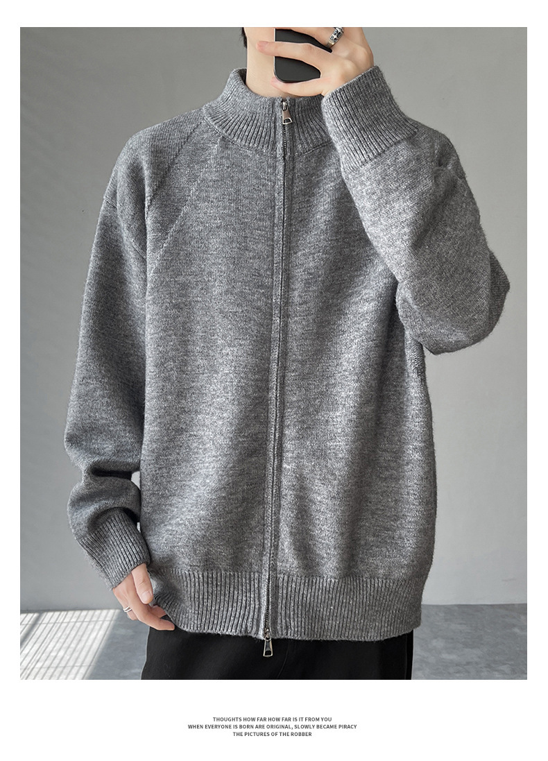 Explosiones transfronterizas de tamaño europeo de gran tamaño de cuello de pie cardigán chaqueta suéter de punto suéter de hombre doble cremallera fábrica al por mayor