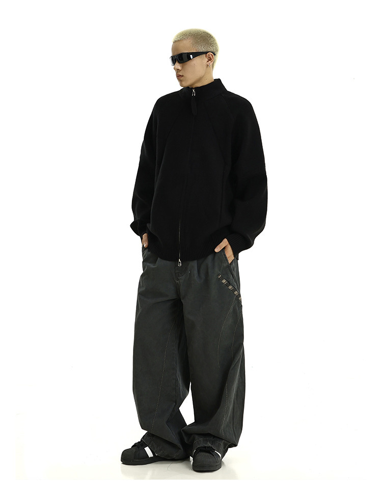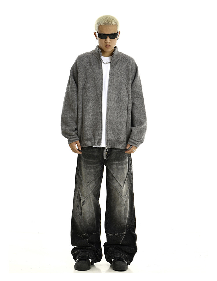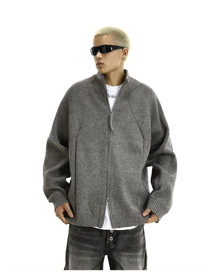Explosiones transfronterizas de tamaño grande europeo cardigán chaqueta suéter de punto hombre lujo ligero negocio collar cremallera fábrica al por mayor