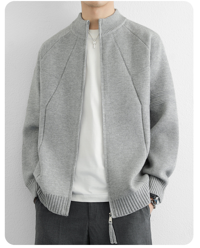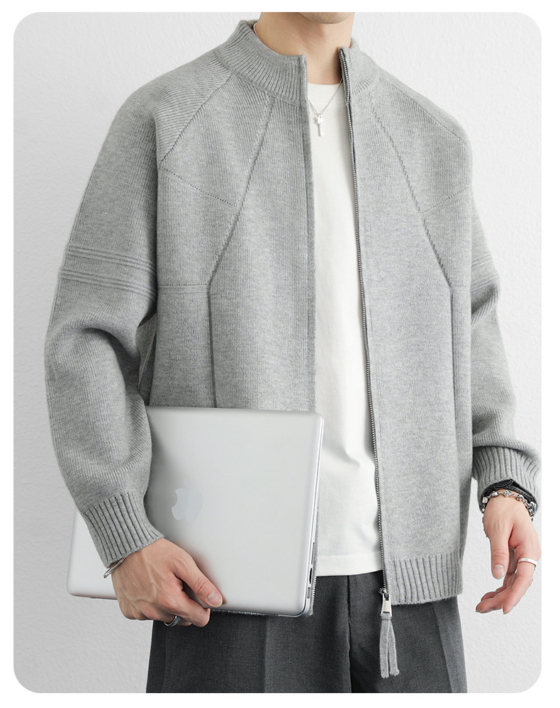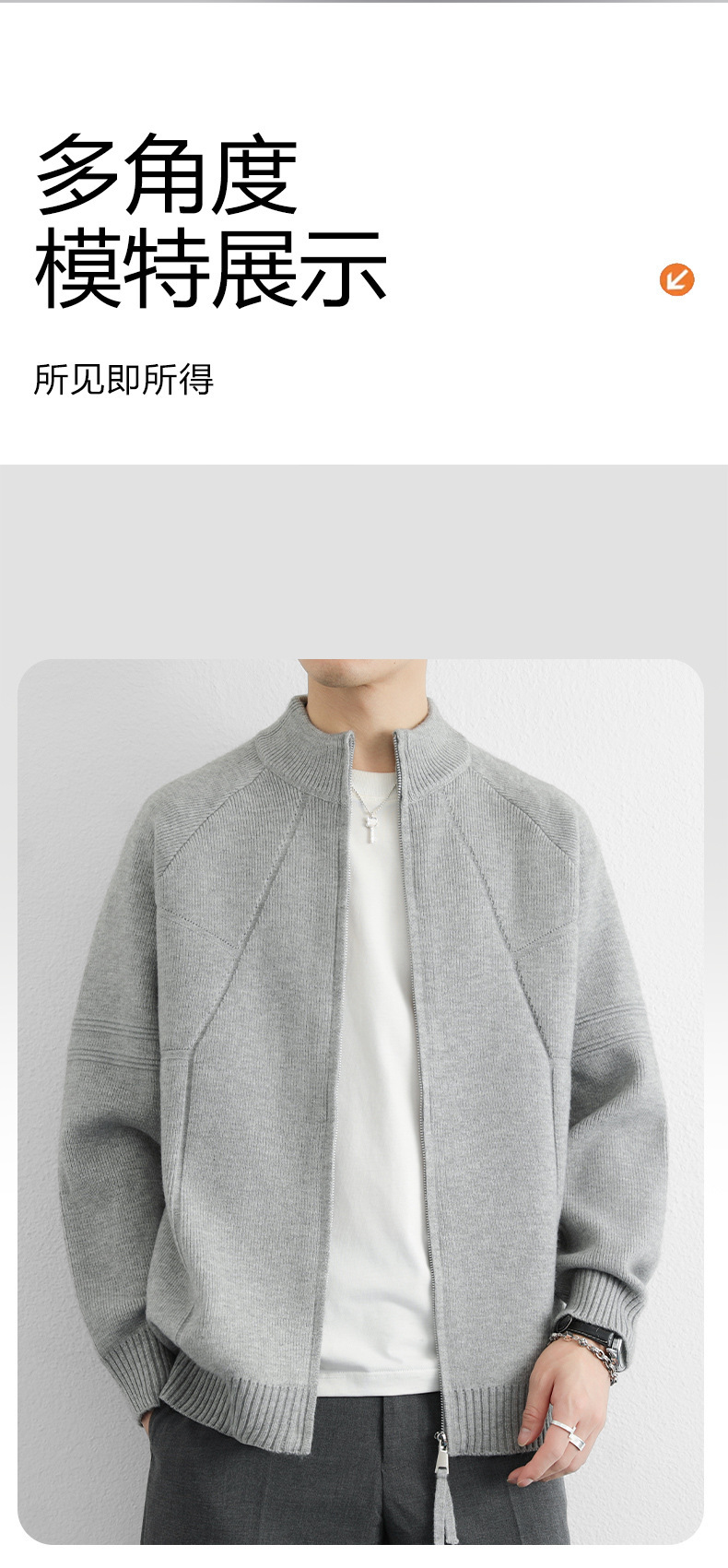 Explosiones transfronterizas de tamaño grande europeo cardigán chaqueta suéter de punto hombre lujo ligero negocio collar cremallera fábrica al por mayor