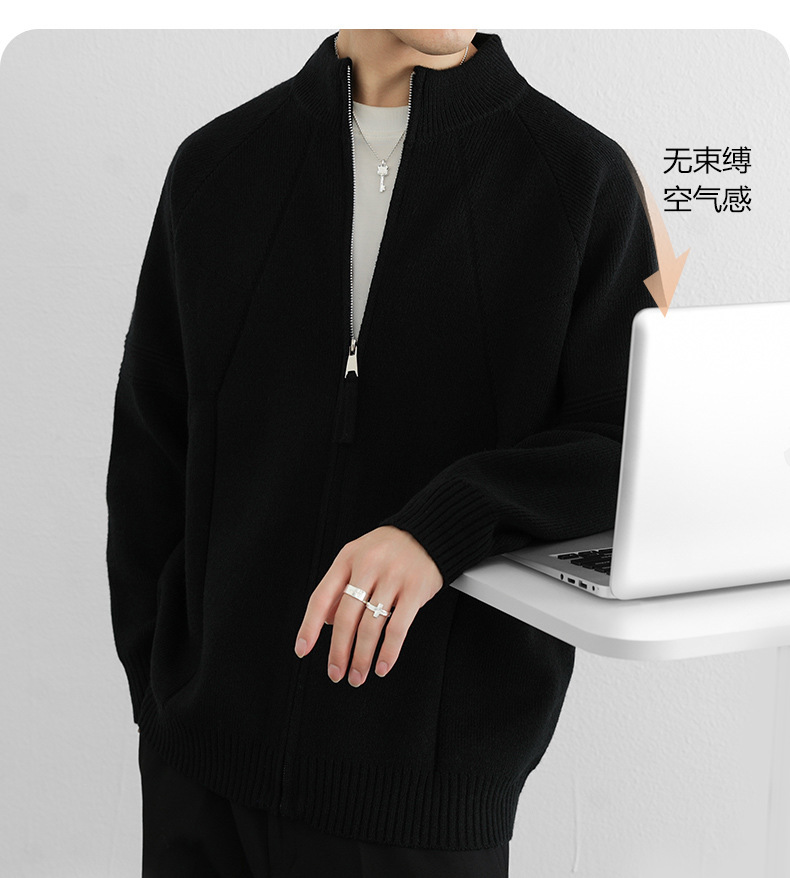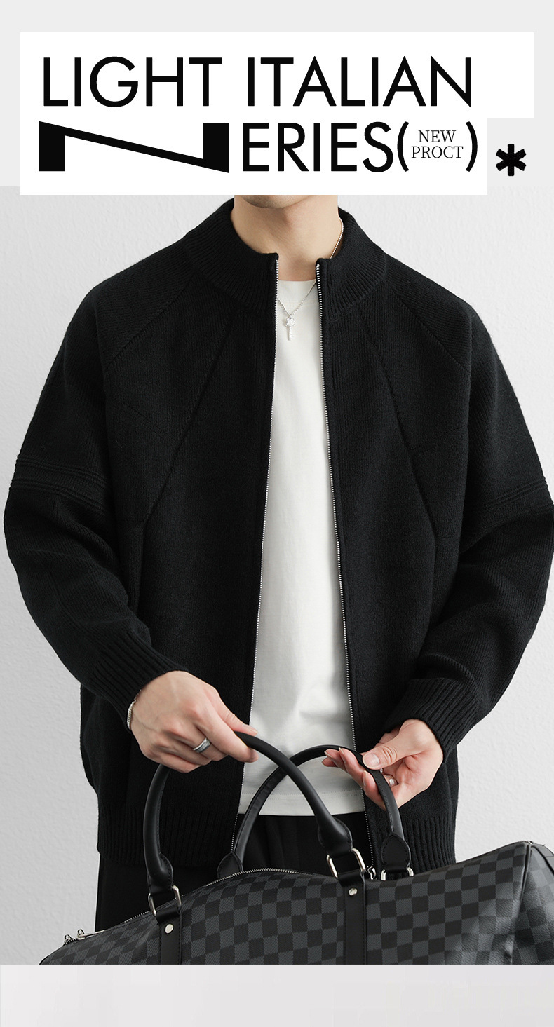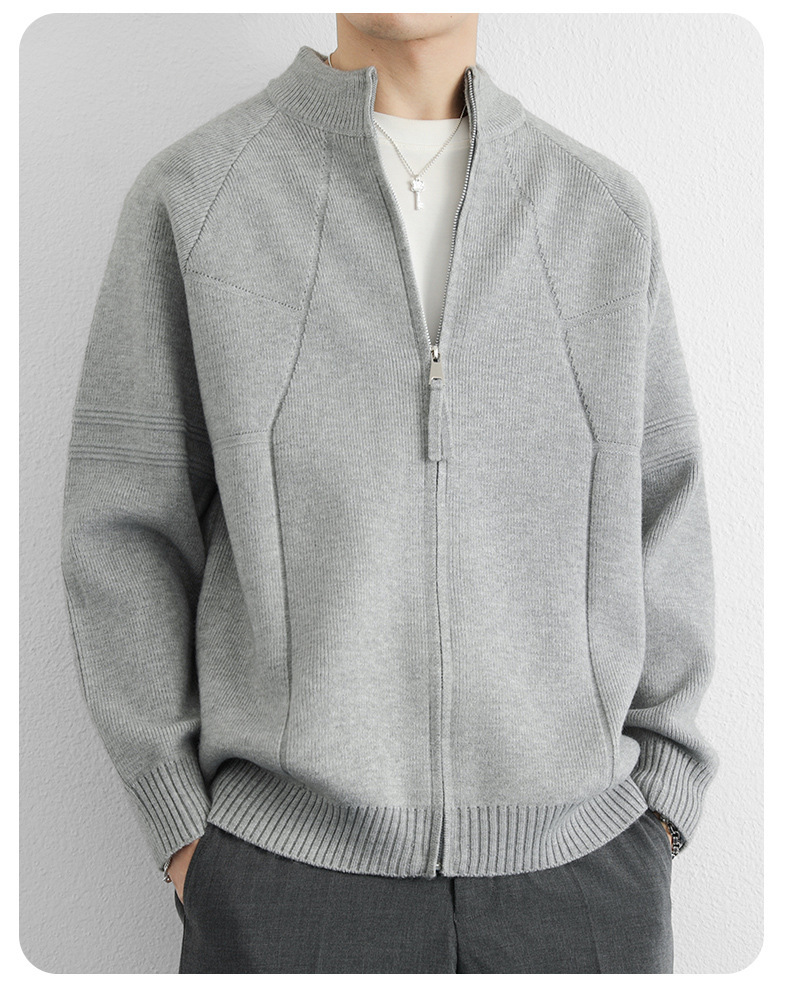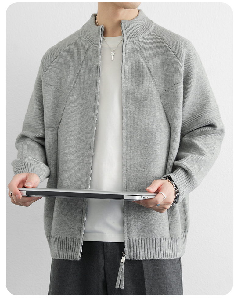 Explosiones transfronterizas de tamaño grande europeo cardigán chaqueta suéter de punto hombre lujo ligero negocio collar cremallera fábrica al por mayor