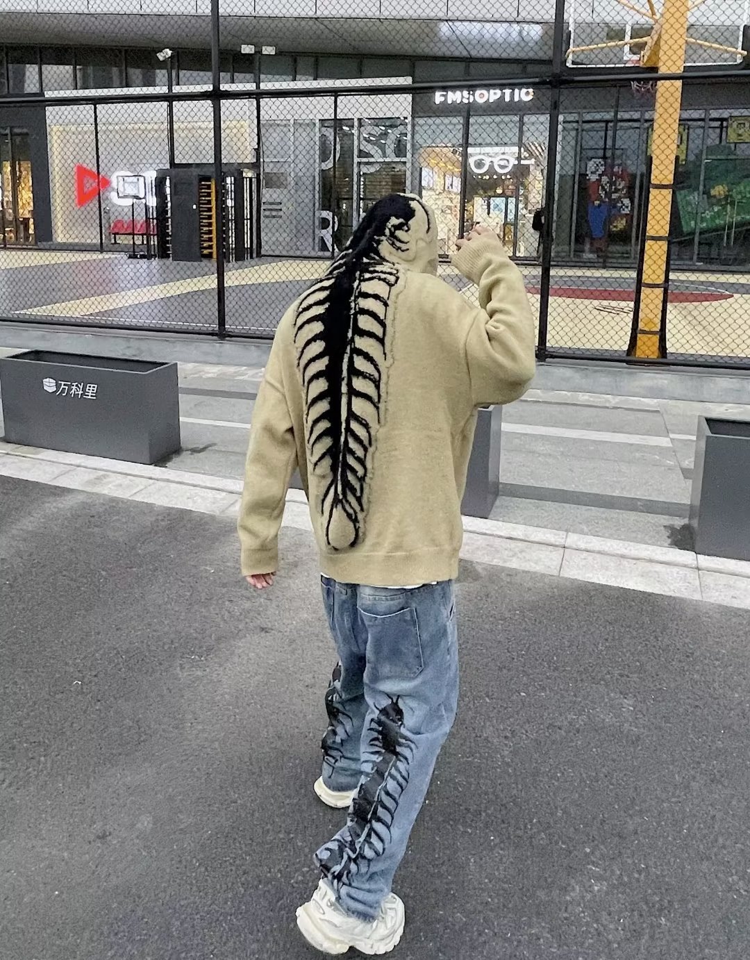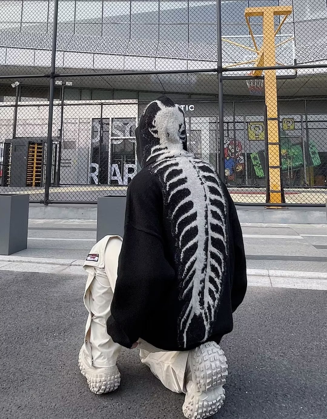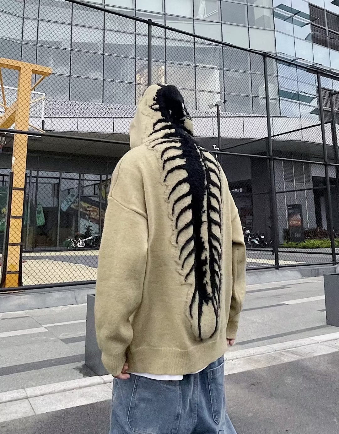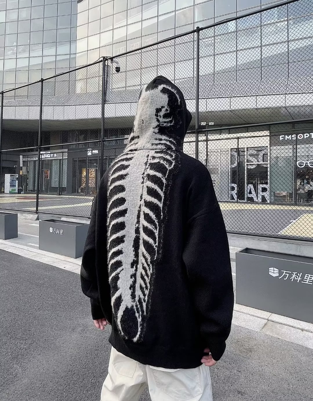 Explosiones transfronterizas de tamaño europeo de tamaño grande esqueleto jersey suéter hombre chaqueta encapuchada alta calle marca de moda fábrica de otoño y invierno al por mayor