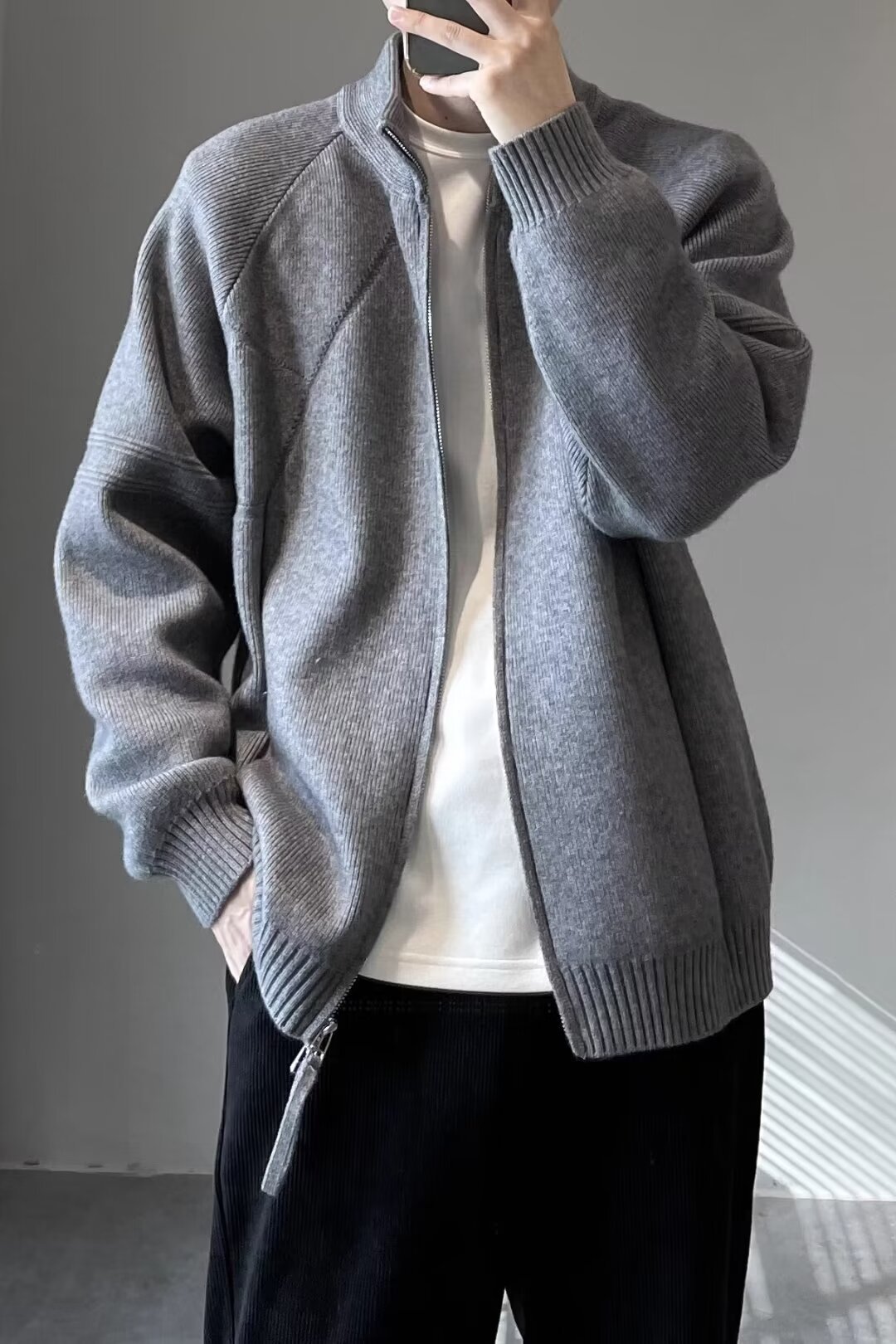 Explosiones transfronterizas de tamaño grande europeo Cardigan jersey suéter hombre abrigos de invierno chaqueta collar de hombro fábrica al por mayor