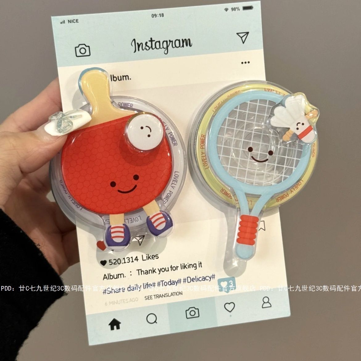 Ins soporte de dibujos animados de succión magnética tenis de mesa lindo soporte de teléfono móvil de bádminton adecuado para perseguir drama hombres y mujeres soporte perezoso